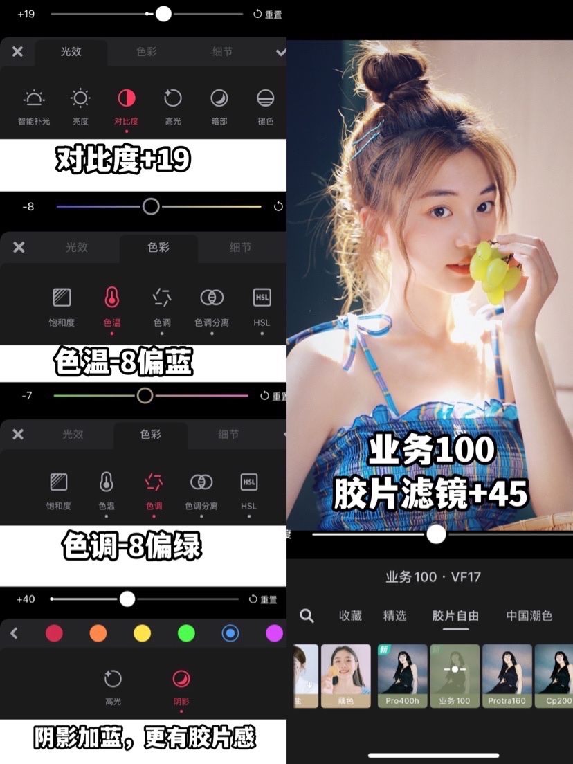 2⃣️正面放一个反光板,给面部补光,就能get高清人像啦