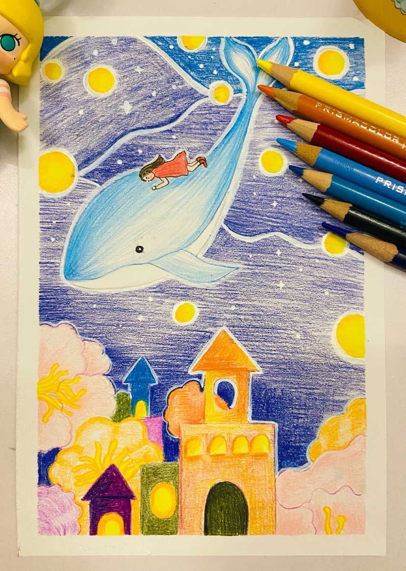 《星空与女孩》超简单的彩铅教程~一起来学吧~有手就会了(⁎⁍̴̛ᴗ⁍̴̛⁎)