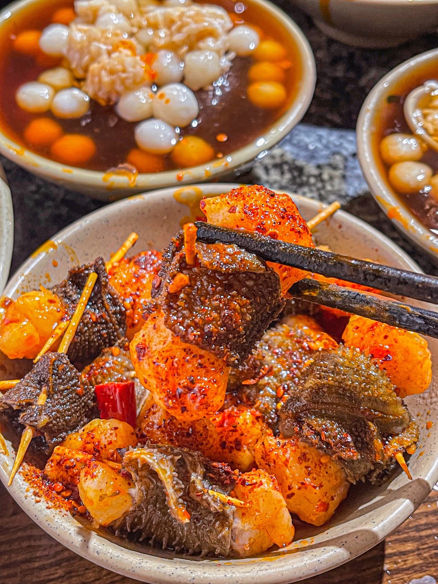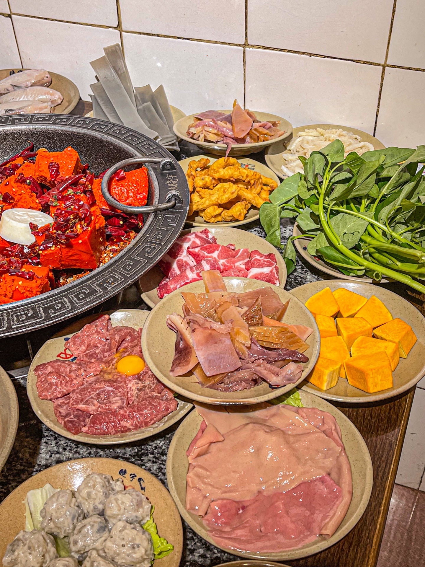 💕打卡完在旁边吃一顿地道老火锅♨️几十年的老店,味道相当不错!醇厚的牛油锅底,再涮上嫩牛肉、老肉片、毛肚、虾滑……安逸惨了!