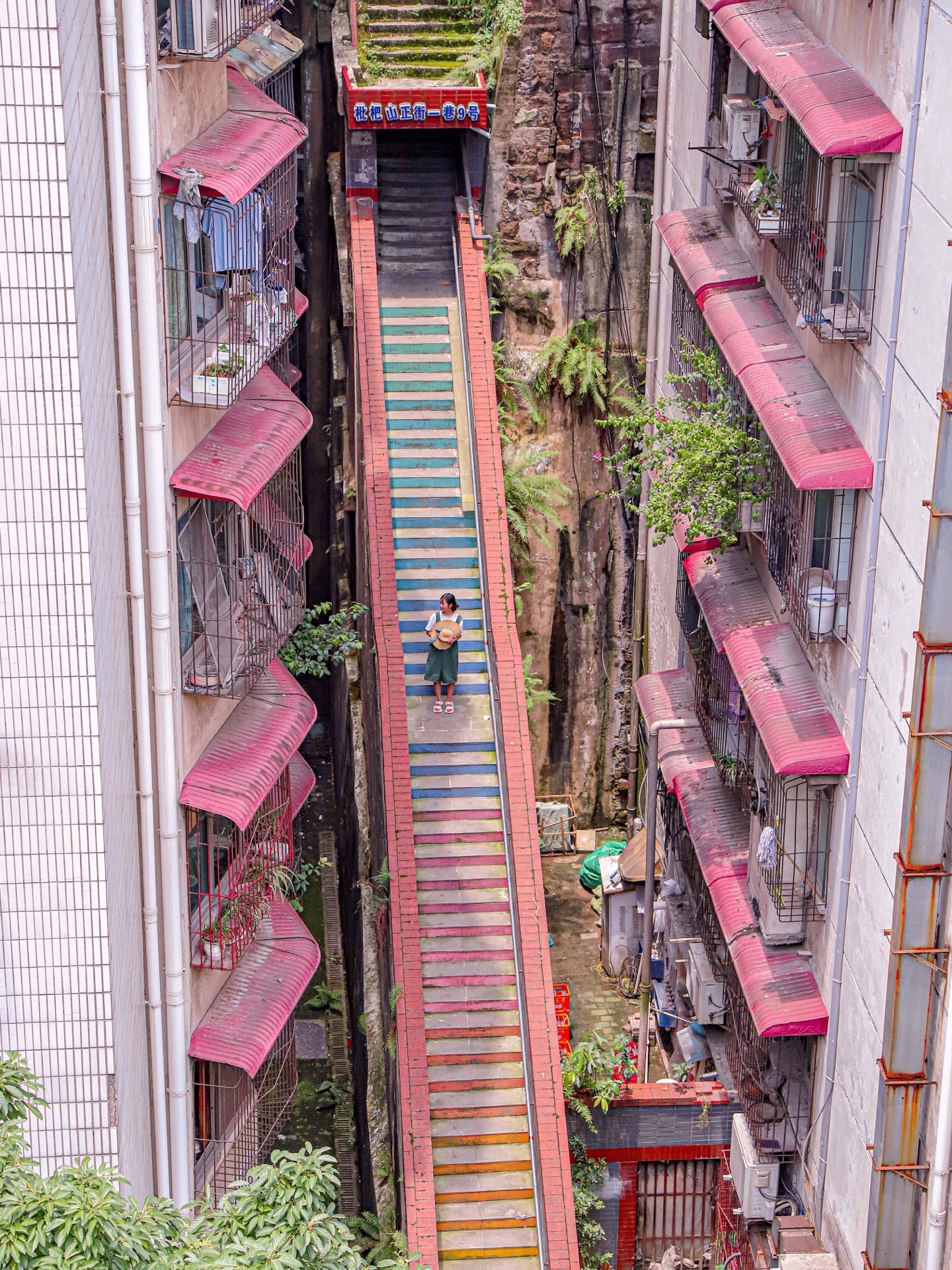 重庆超火的彩虹天梯终于来打卡啦~随手一拍都超级出片,两侧都是居民楼,满满的山城烟火气息✨来重庆游玩一定不要错过这里!