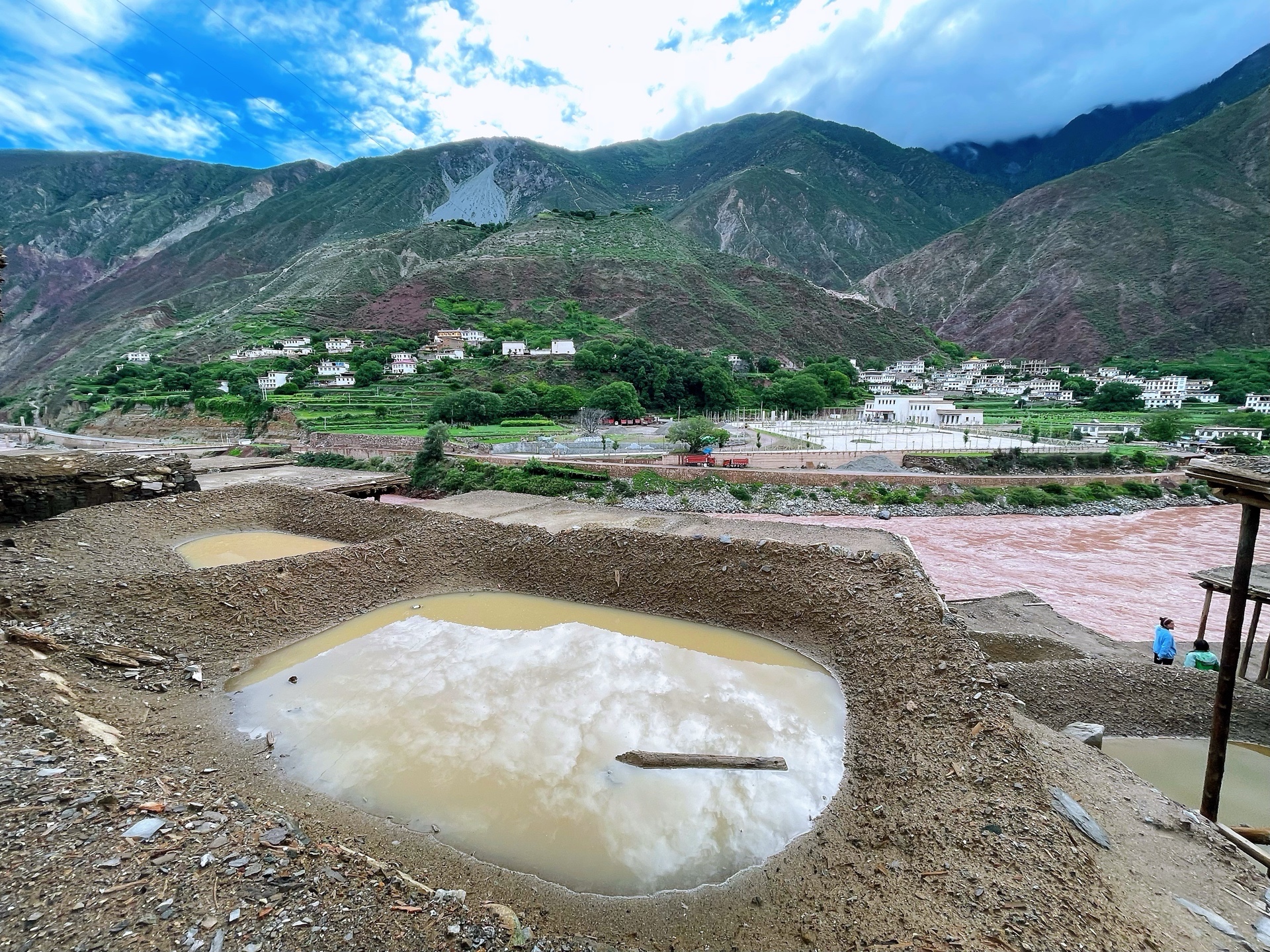 正值雨季,这个季节,由于雨水会使盐流失过多。所以并不是晒盐的最佳季节。