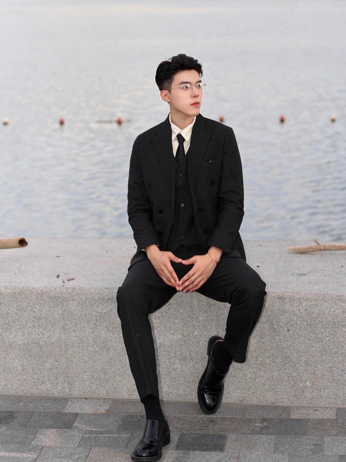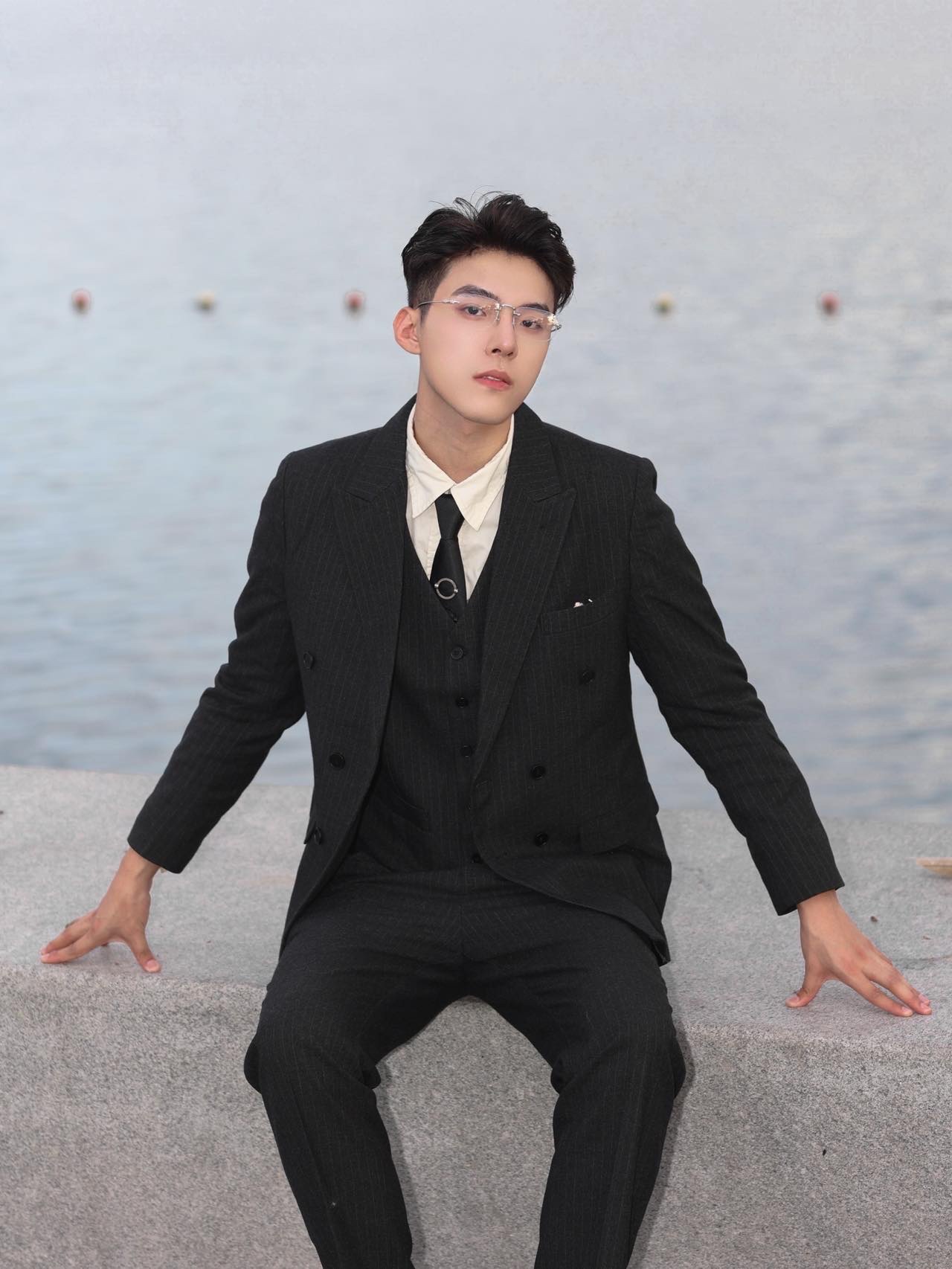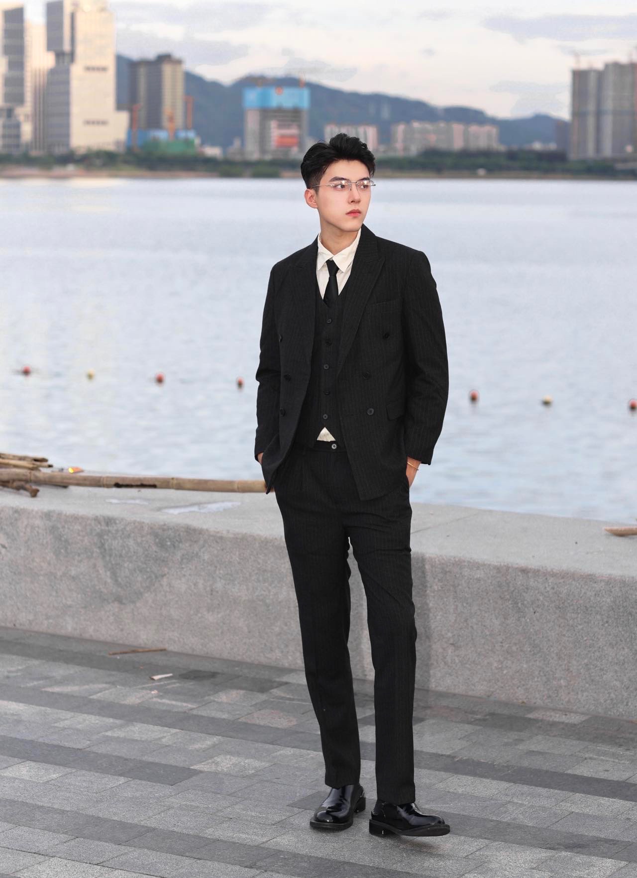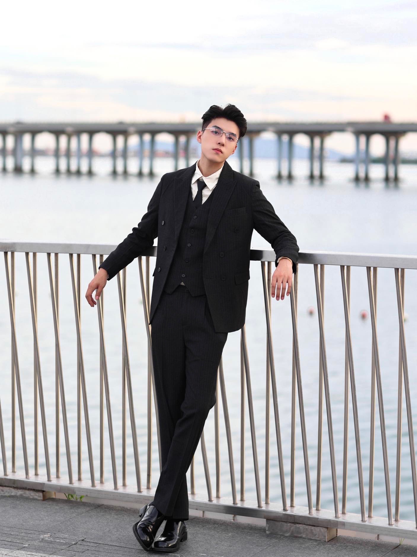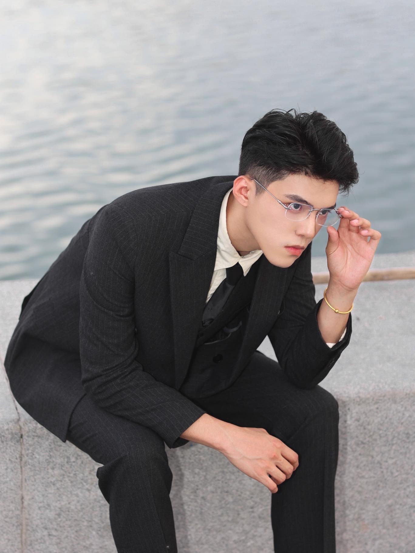 之前怎么都带不好看的无框眼镜,竟然和西装完美匹配。