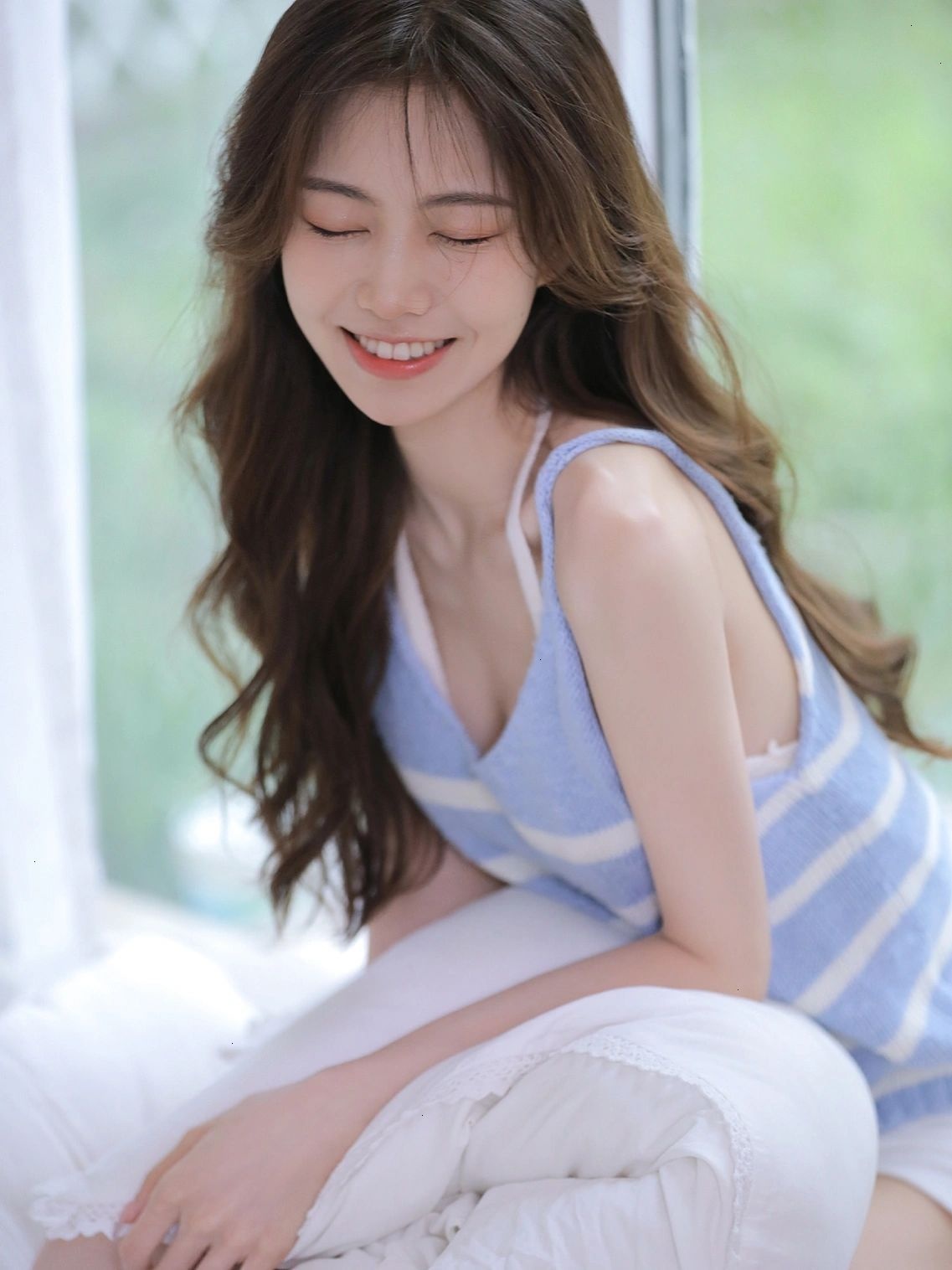 ✔️奶蓝色吊带搭配白色背景真的很和谐