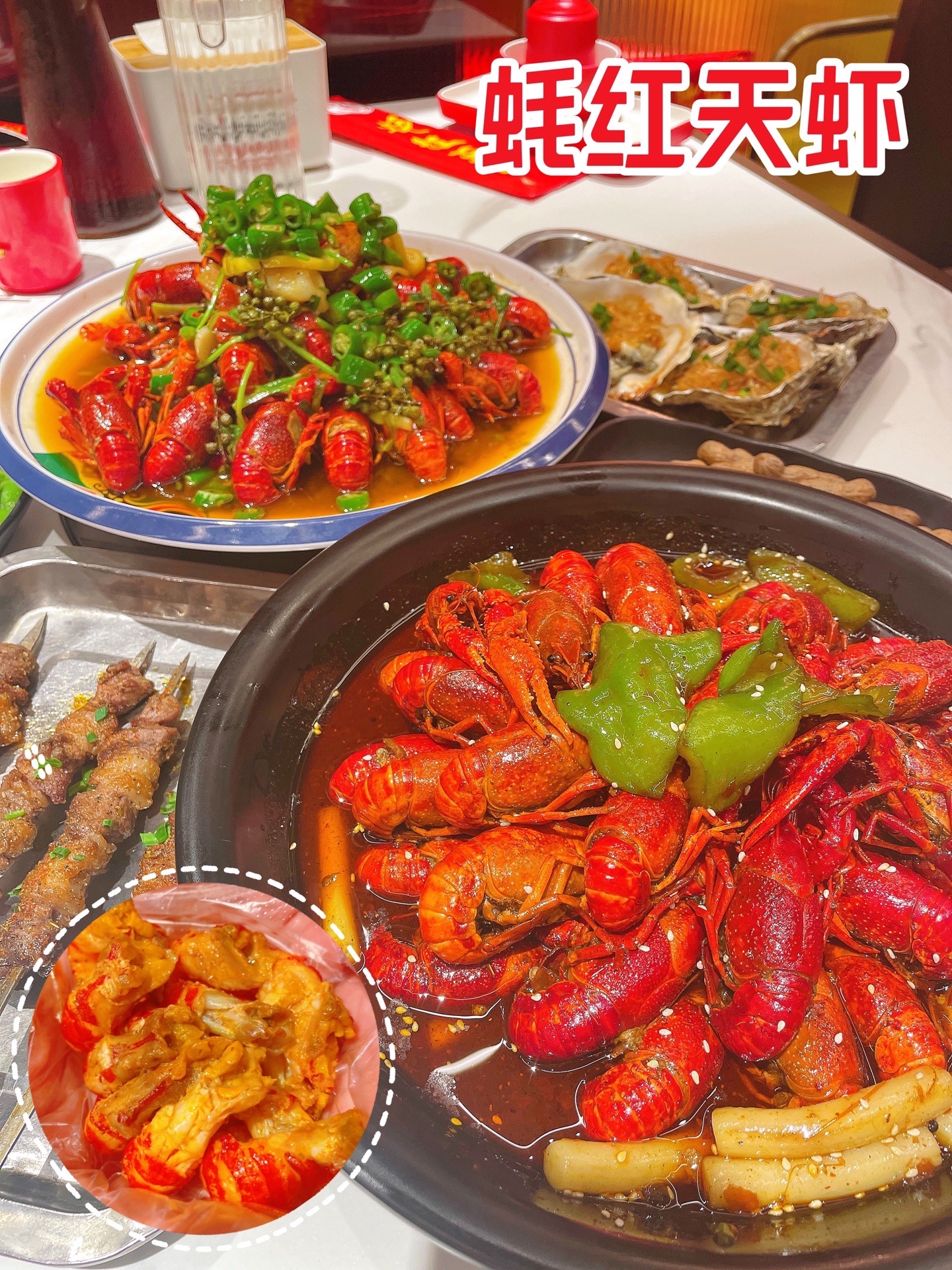 对于吃货来说,夏天的快乐是什么?当然是啤酒烧烤小龙虾啦。夏天朋友约晚饭,那就是到处找小龙虾吃,这次索性到浦东打卡朋友说不戳的蚝红天虾。这里的招牌小龙虾和羊蝎子一年四季都可以做耶!整个店都是温馨的暖色系,干干净净挺宽敞的,跟着店员的推荐点了好多好吃的,心情大好吖~