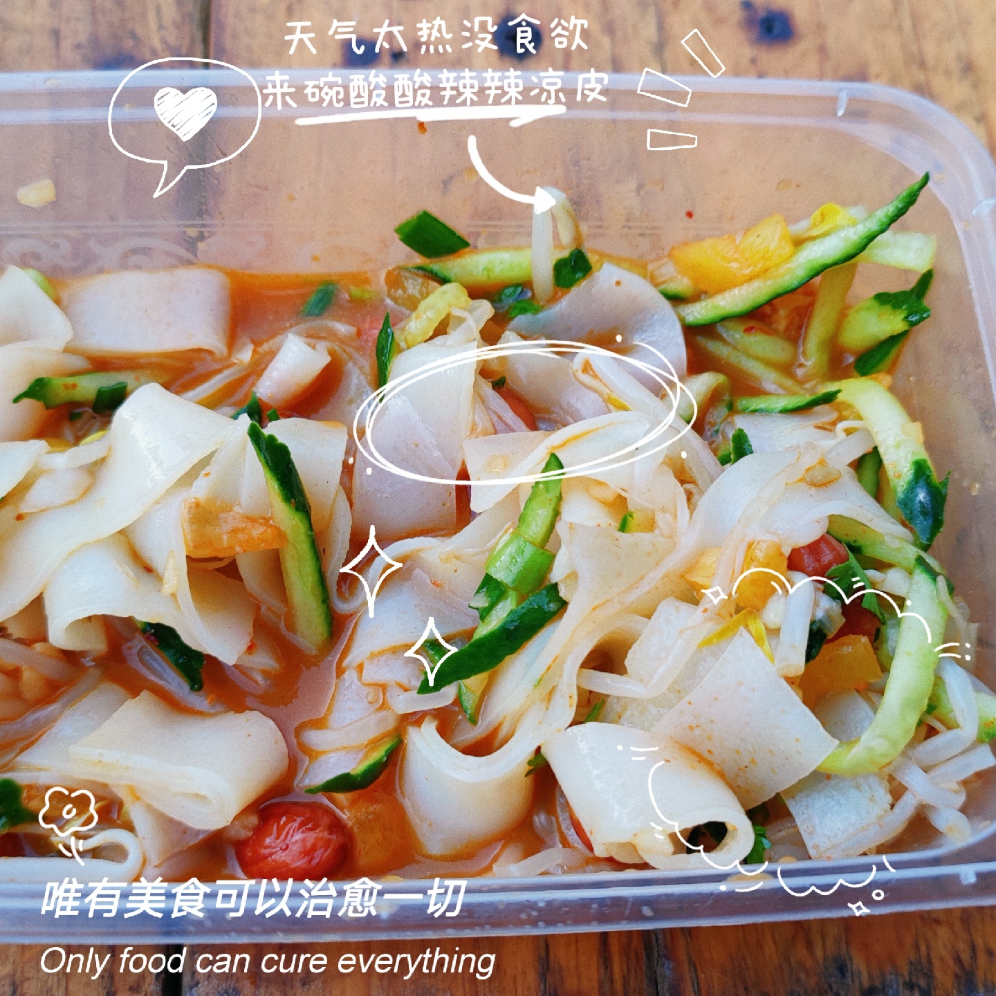 凉皮够酸够辣,凉拌黄瓜,面筋我好爱,忘记拍照了快吃完才想起来😂