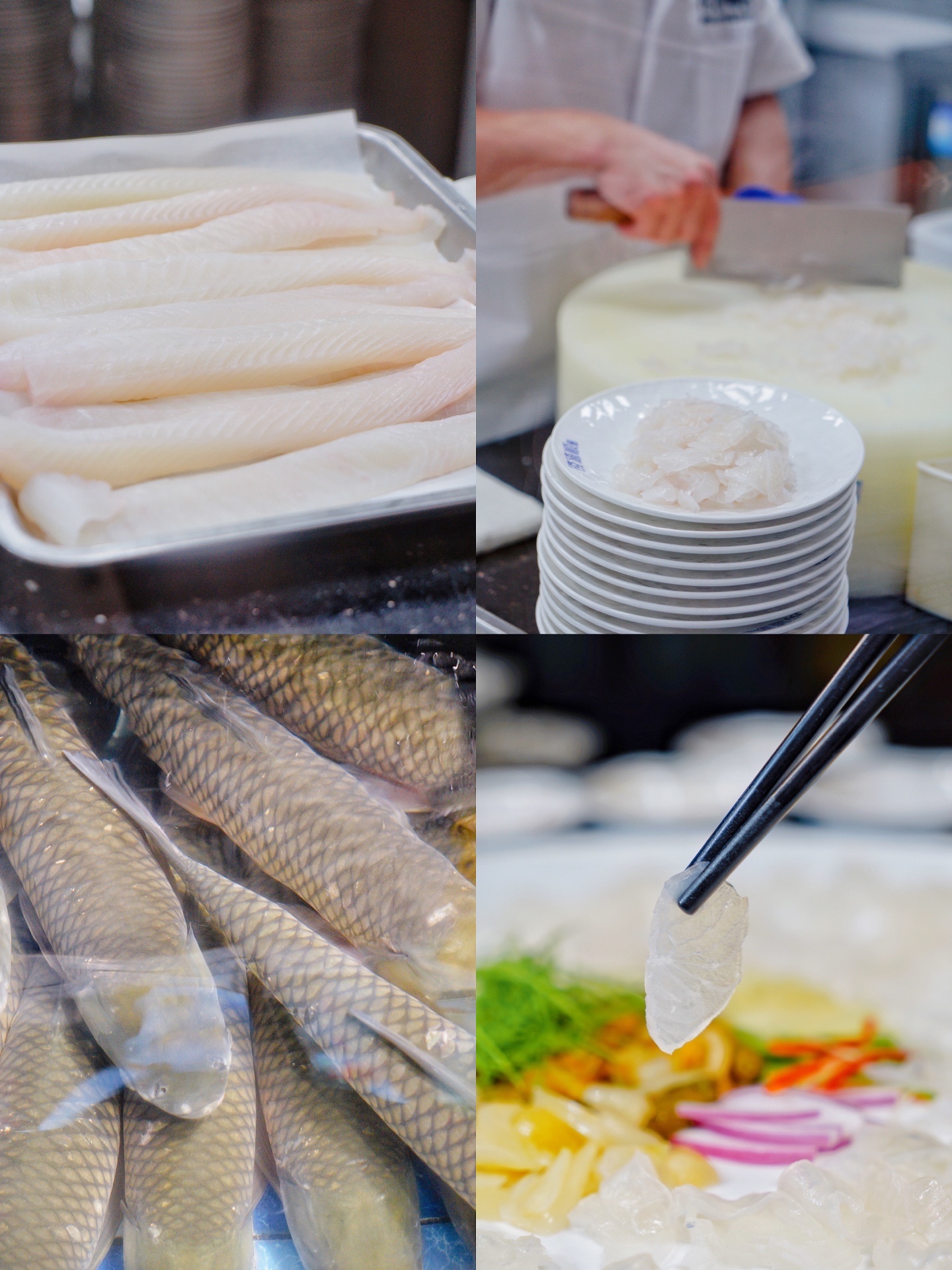 在这里,每一条鲩鱼都是有身份证的,来自顺德鱼生标准养殖基地-生生农业集团,吊水净养之后,鲩鱼能去掉泥味和腥味。足够的运动量也使得鱼生口甜中带爽,鲜美到没有盆友。