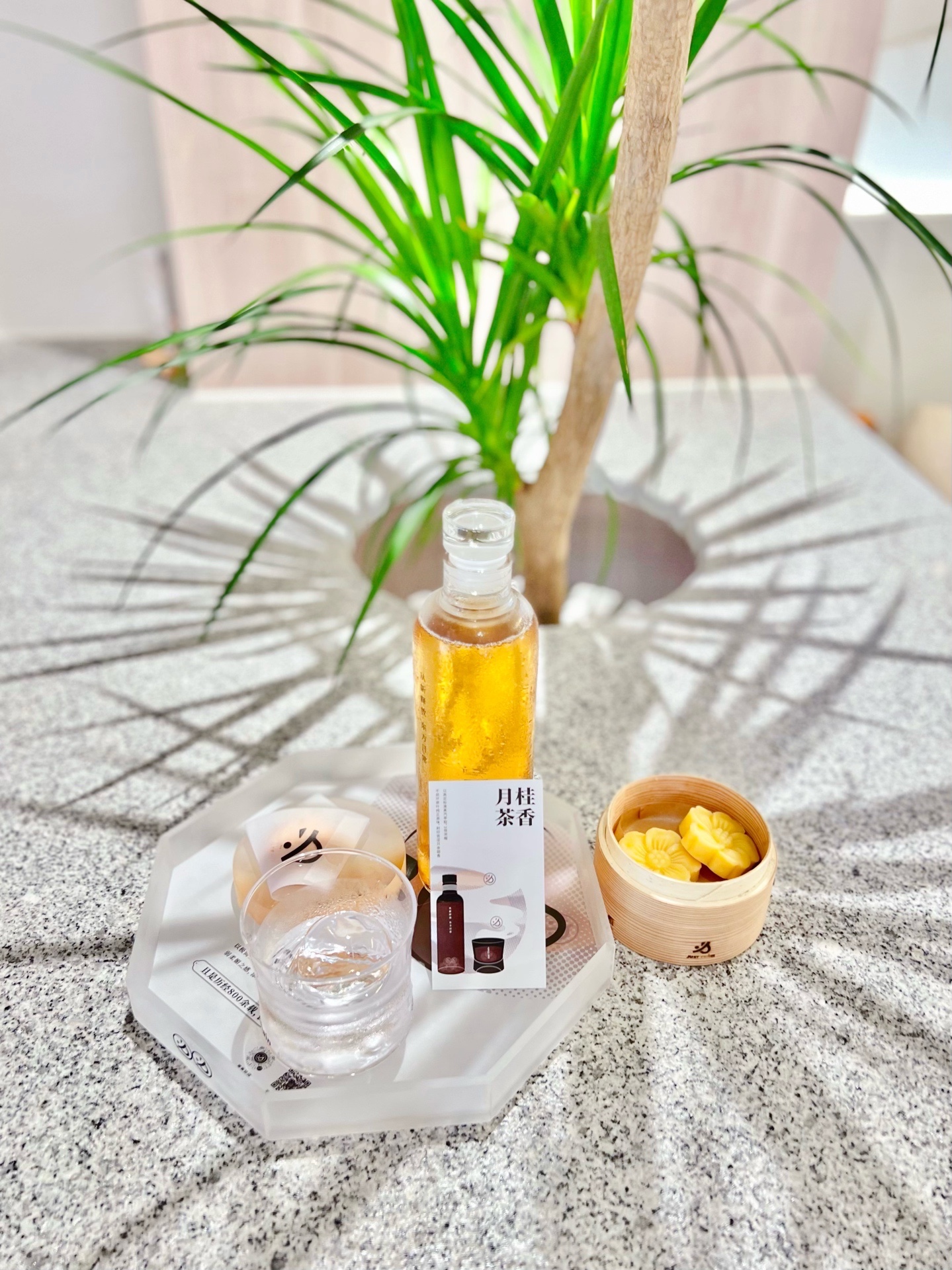 ❤️月桂茶香:瓶身修长纤细,茶汤清澈,口感清雅,搭配了加上冰球的饮用杯,让喝茶也变得如此情调有仪式感👍 轻啜一口,桂香微甘,冰爽清凉。