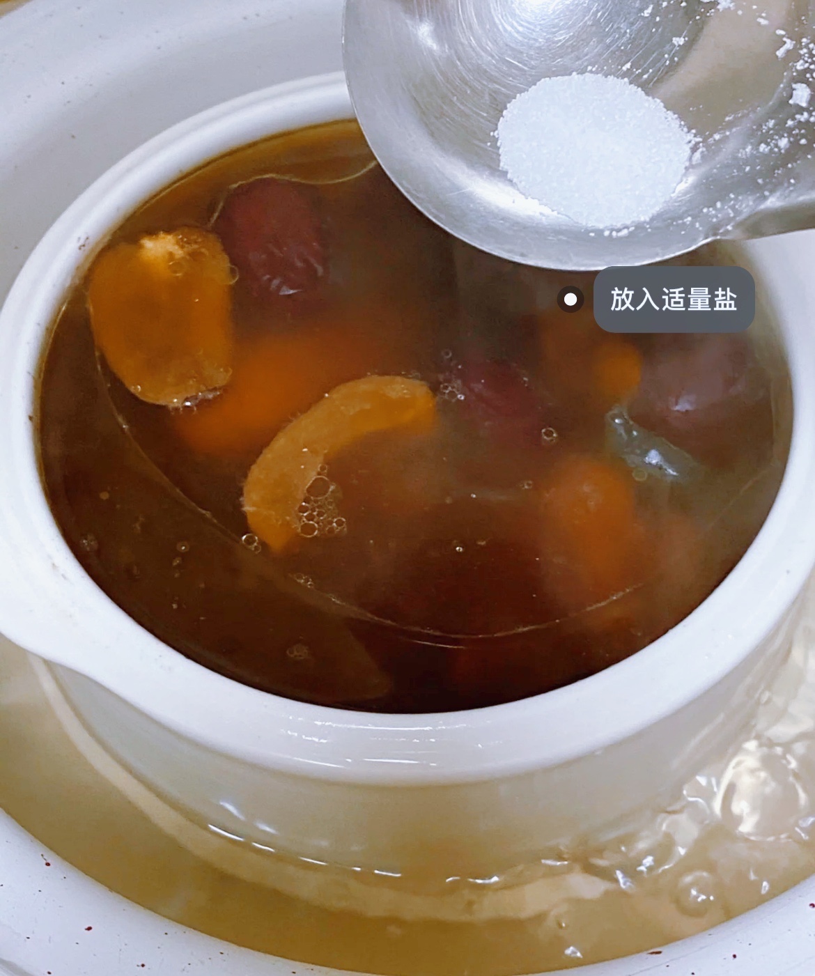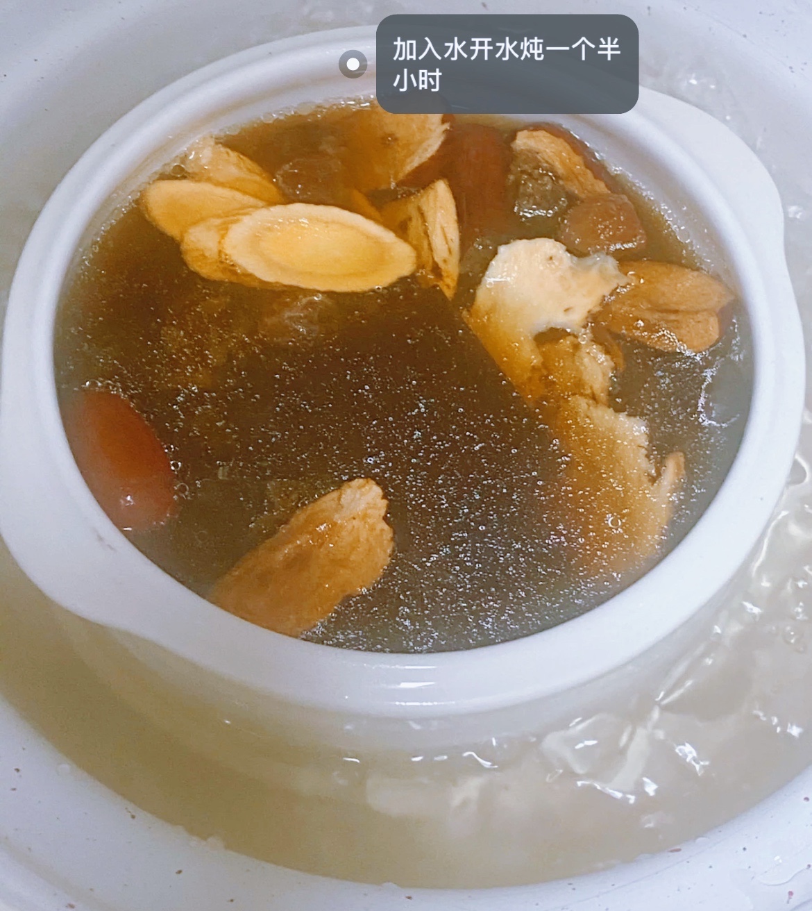 有材料放入炖盅加入开水,炖1.5小时左右,放盐喝汤。