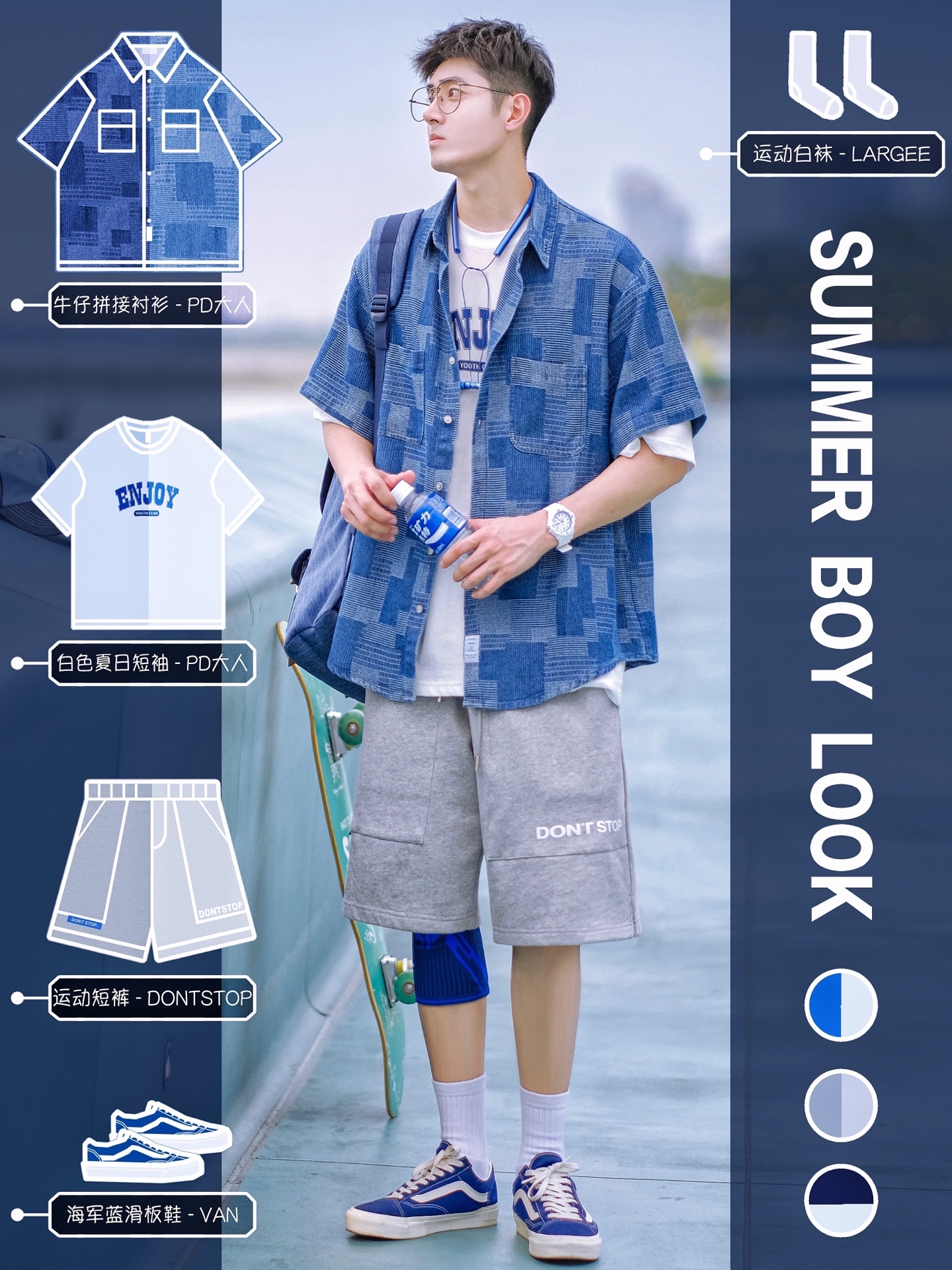🔹真的太喜欢这件“牛仔花衬衫”了!好适合男孩子暑假出游穿搭-美图社区-美图秀秀