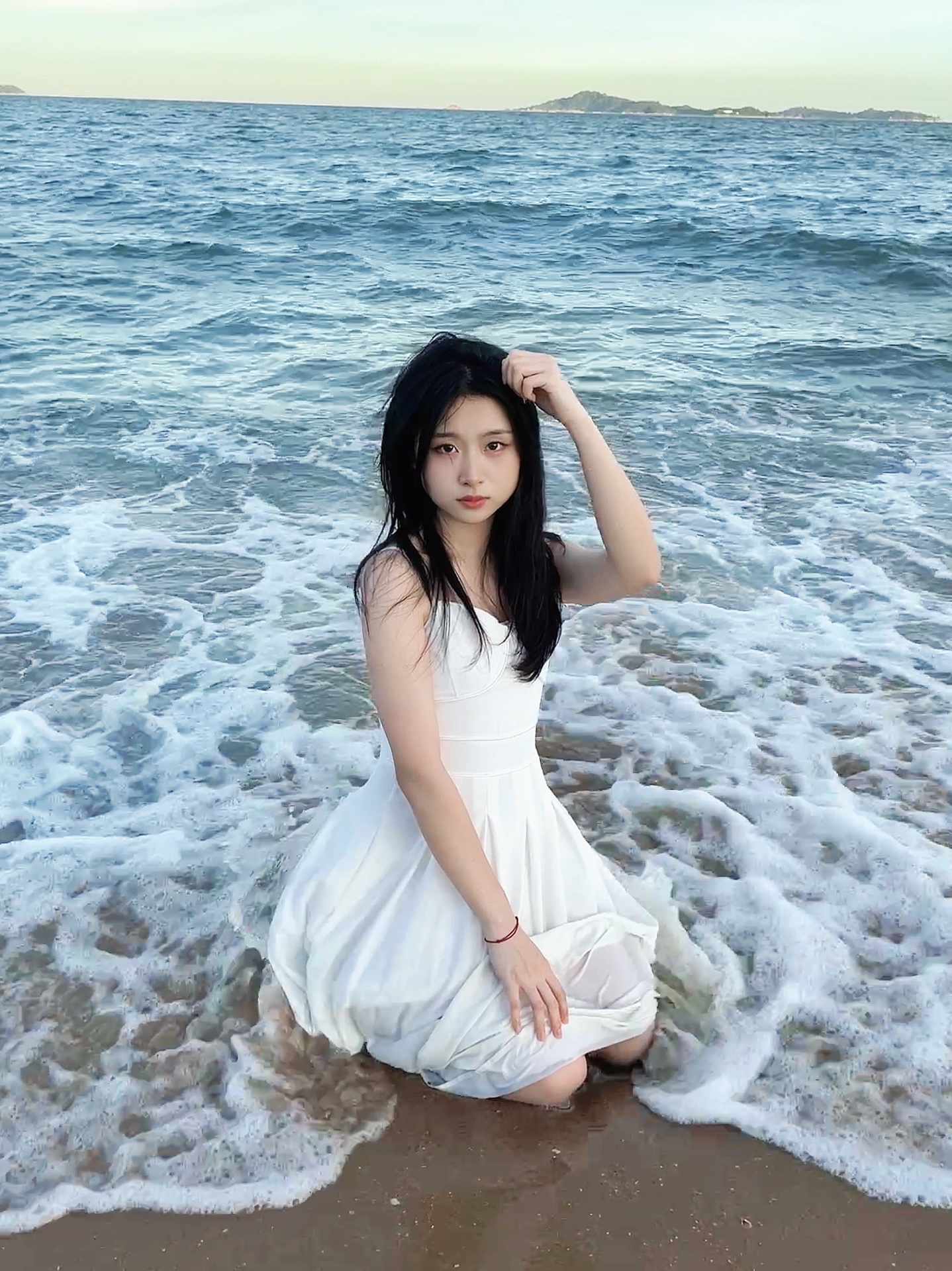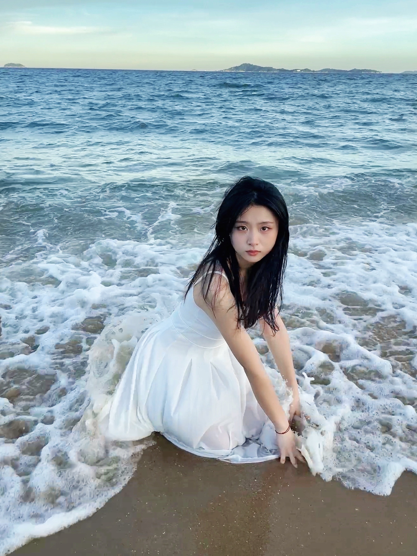 一个接着一个的浪花有规律的拍在脚上