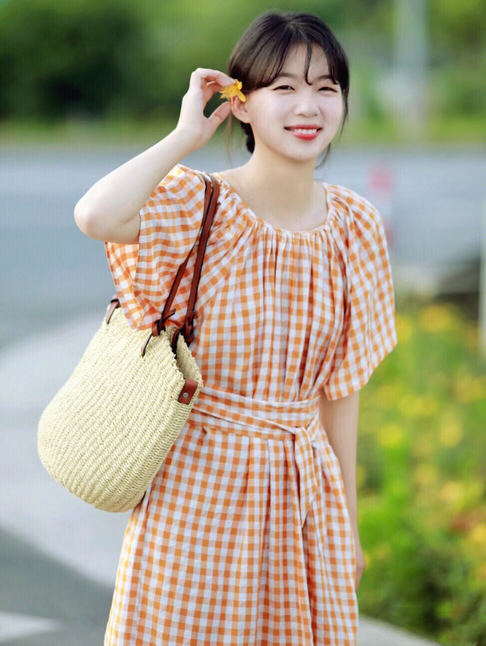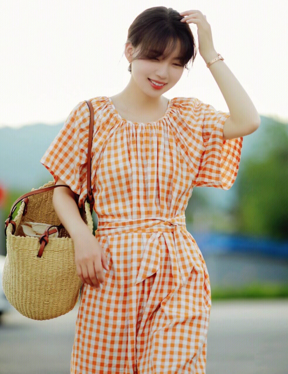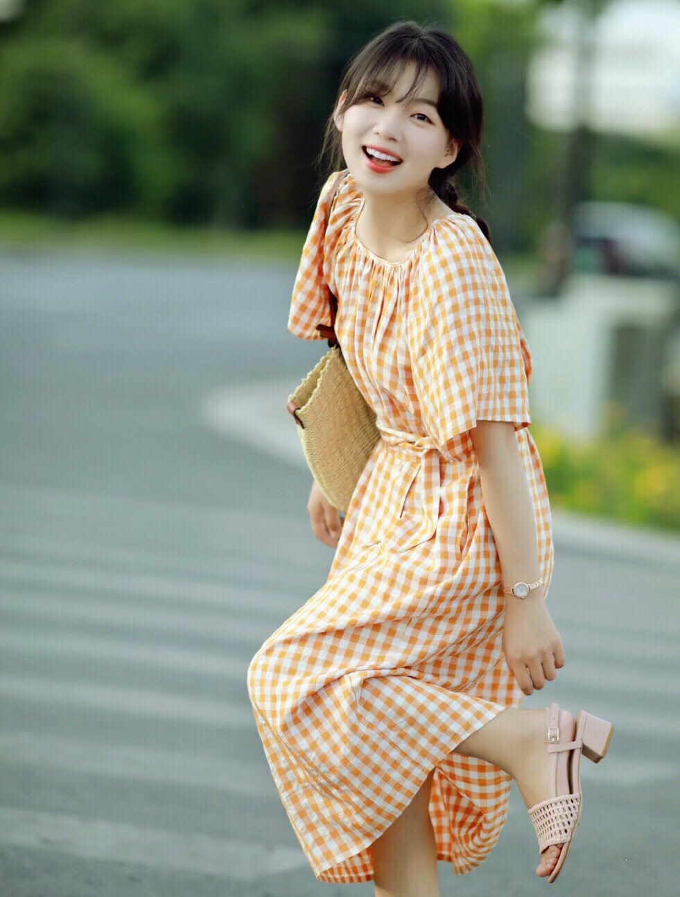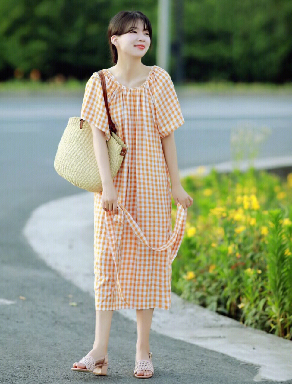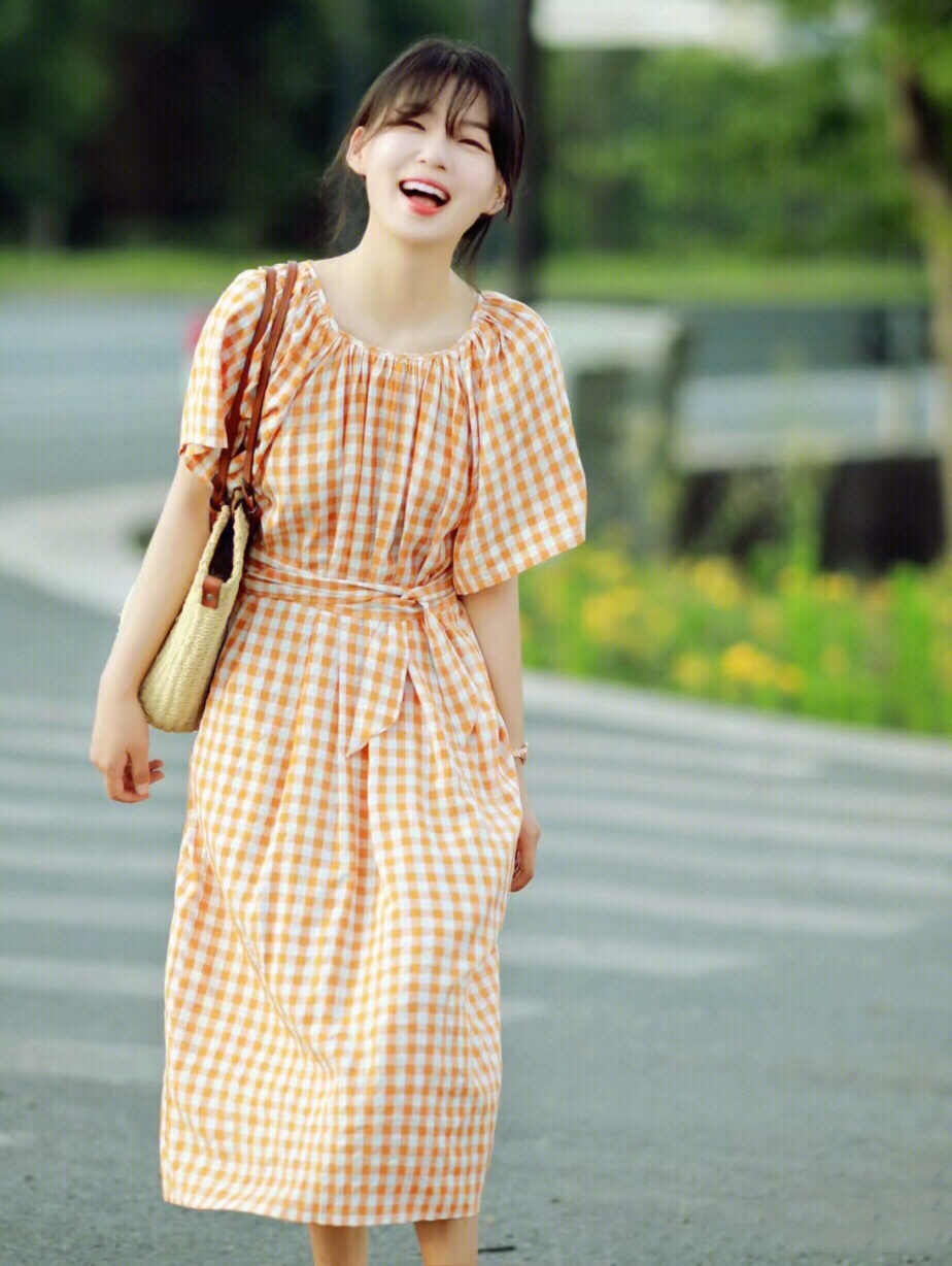 橙色系的衣服青春靓丽,特别的有活力感,这种格纹设计,更有了一份复古精致的魅力,俏皮活泼,可爱减龄又时髦。