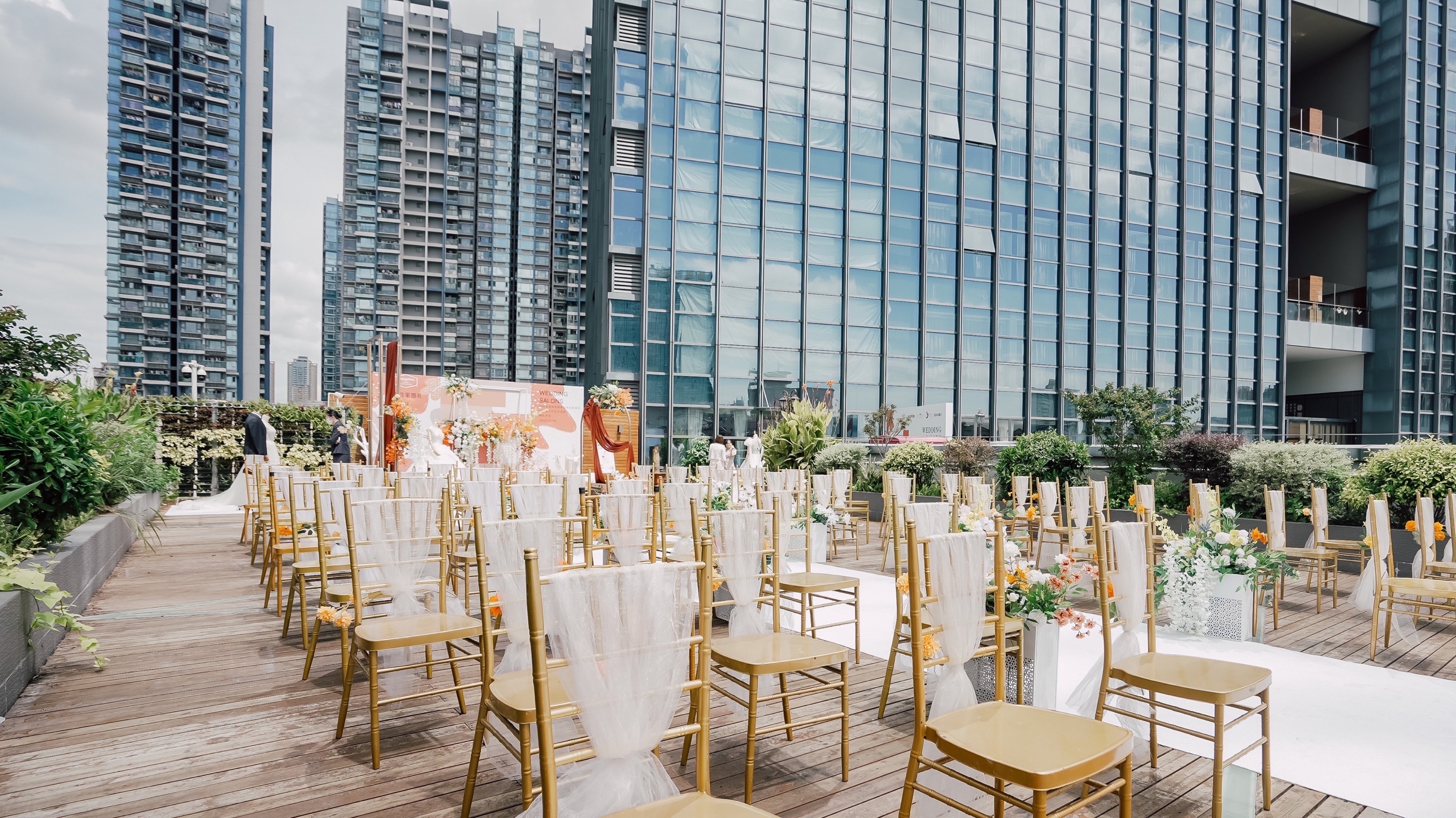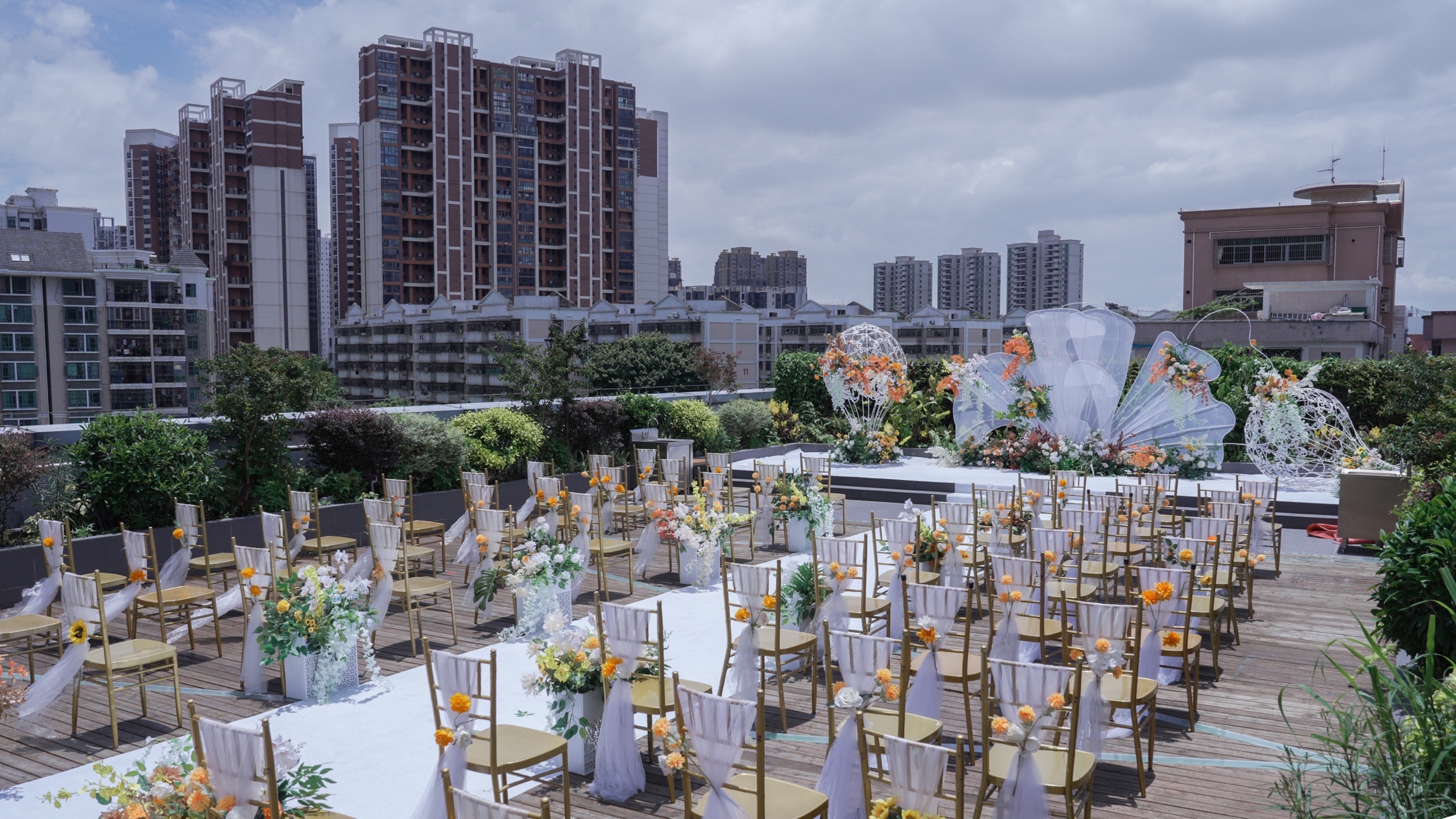 👰🏻酒店与承办方不仅把这个户外露台包装得美美哒,既纯白又灵动,还展示了婚宴所供应的餐食,感觉这家希尔顿欢朋的功能超出了我对该品牌的既定印象,酒店业这么卷,利好的真的是我们消费者😁😁😁