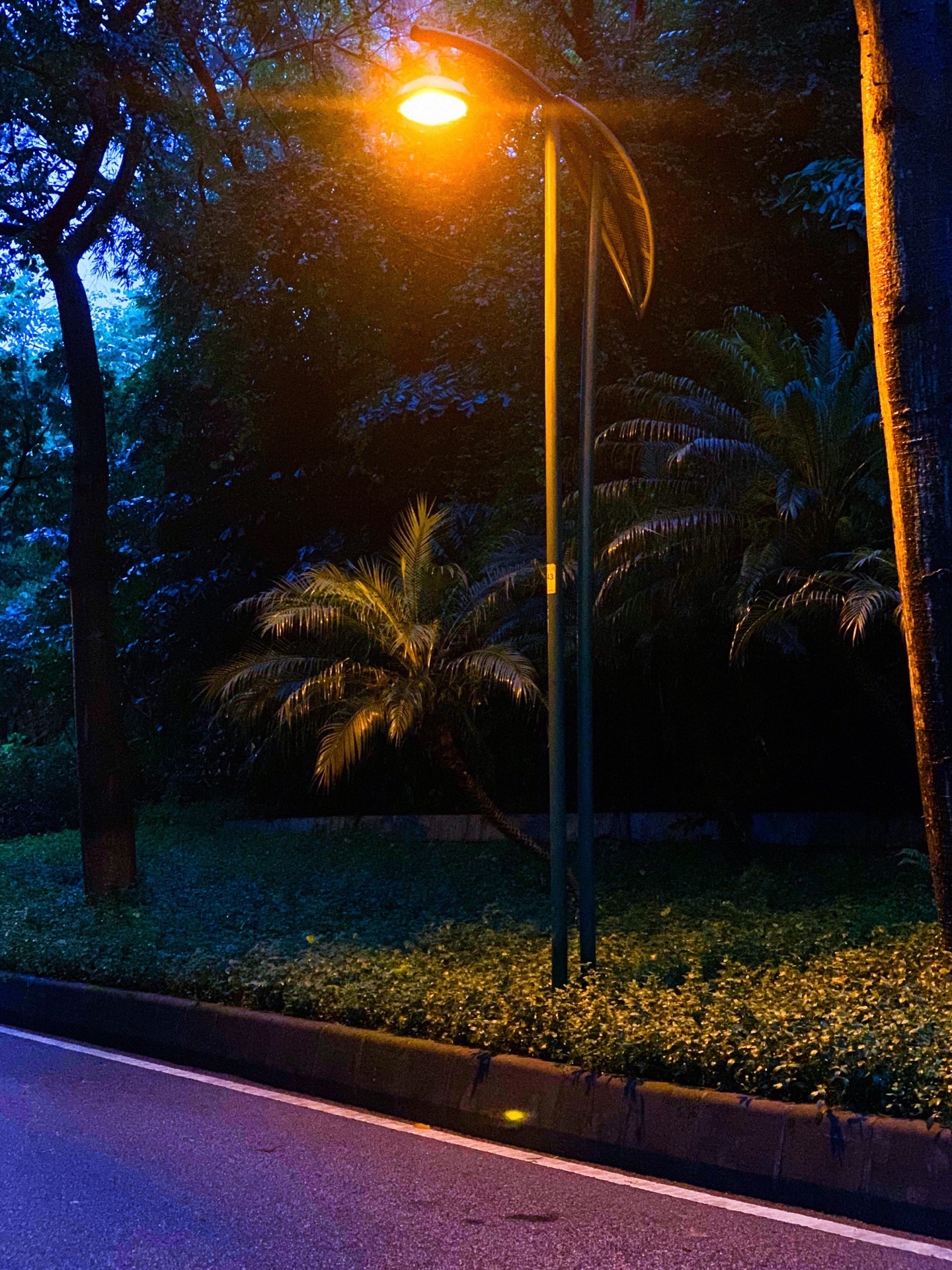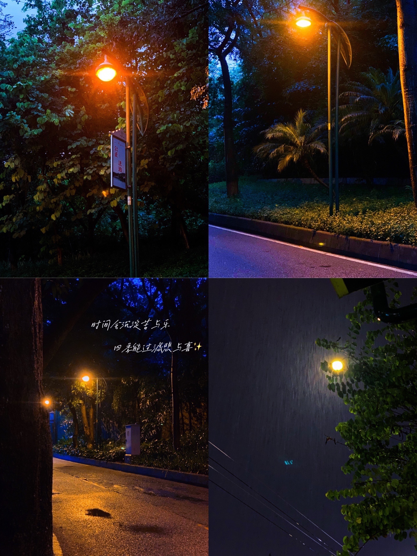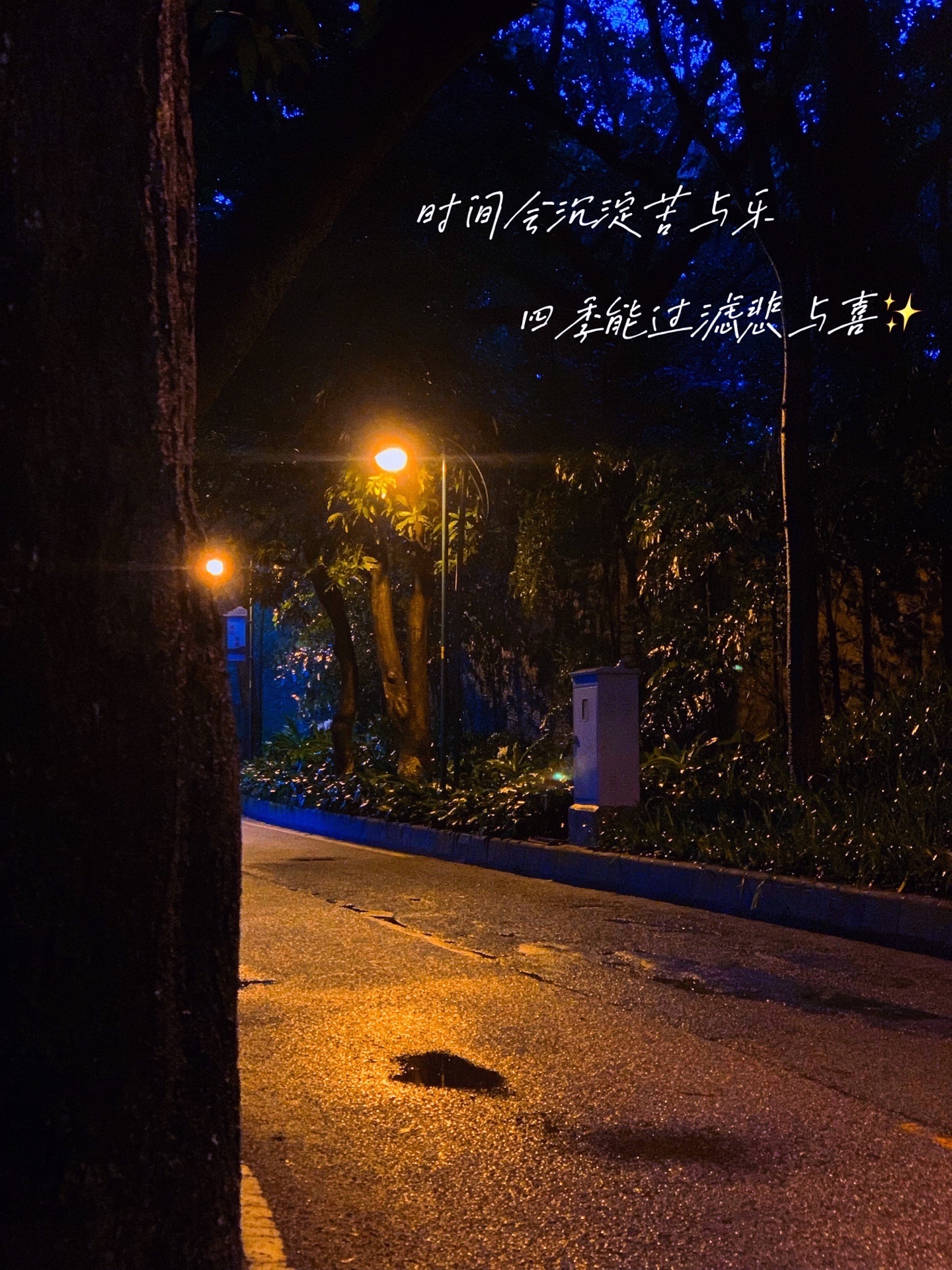 在路上遇到好看的路灯,假如手机拍出来比较亮没有氛围感可以试试把亮度调低在把对比度拉高