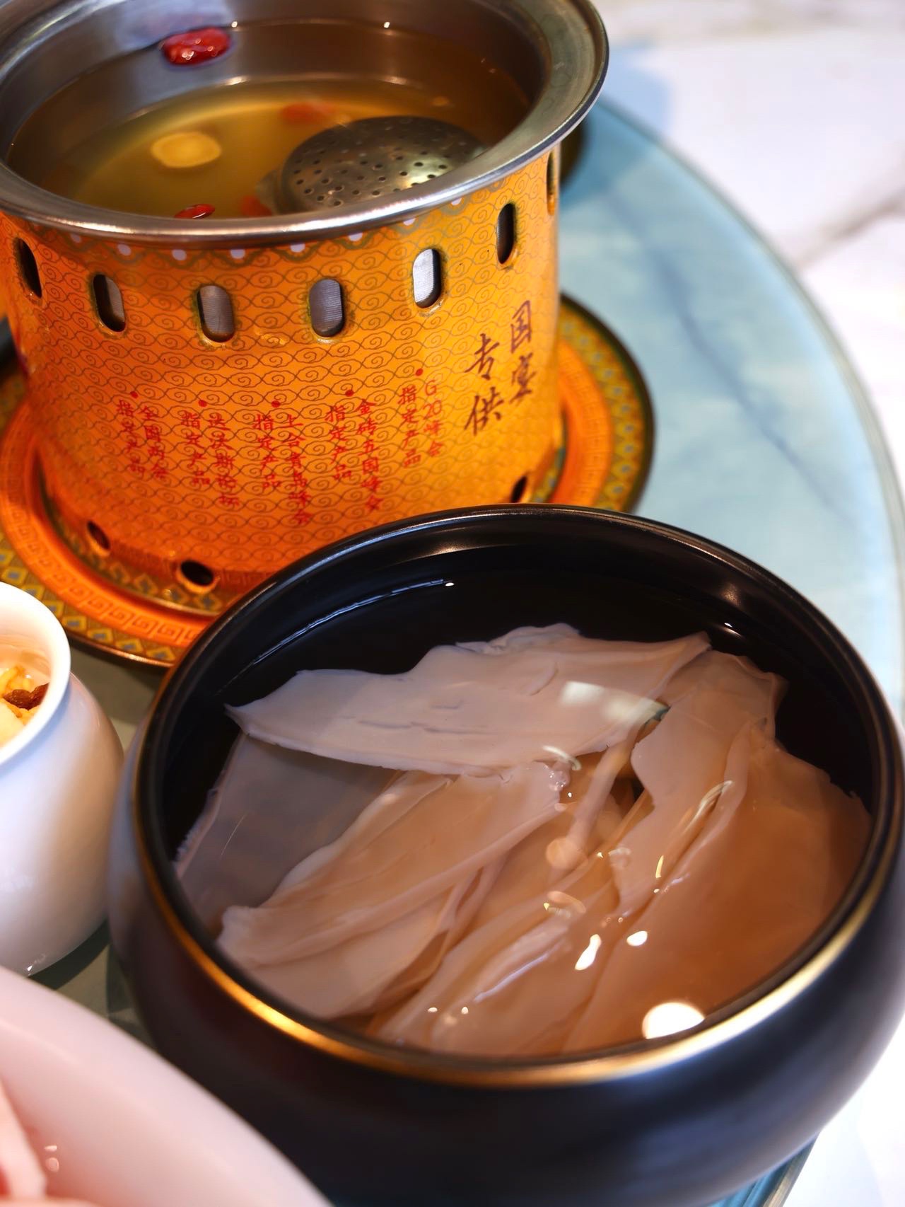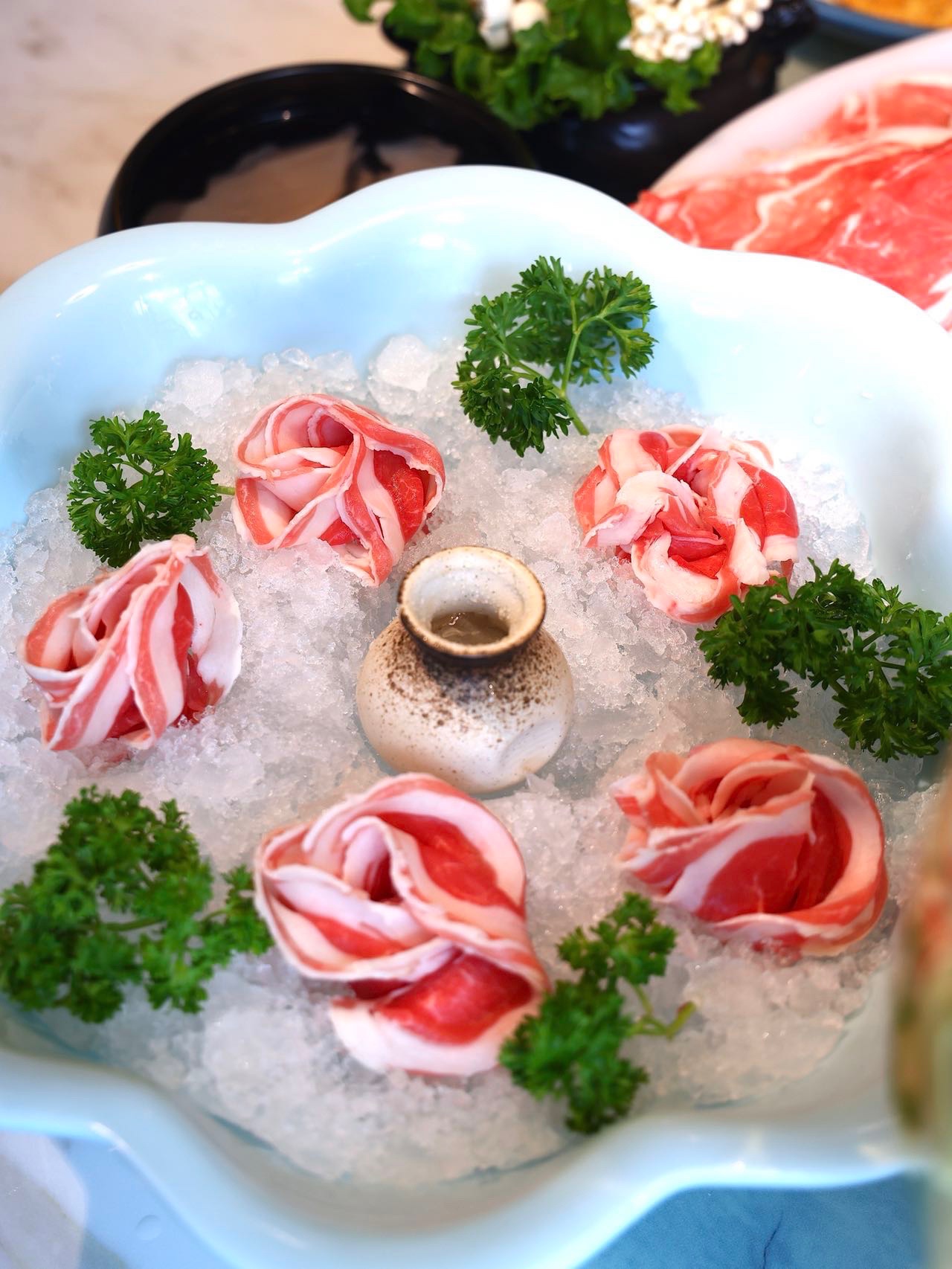 🐟山海情绝对是必点菜品,精选深海无刺鱼肉与盐池滩羊的心头肉,两者的完美融合,鲜嫩可口。只需烫涮三秒就可以吃了,一片肉,可以吃到两种口感,也太美味了!!