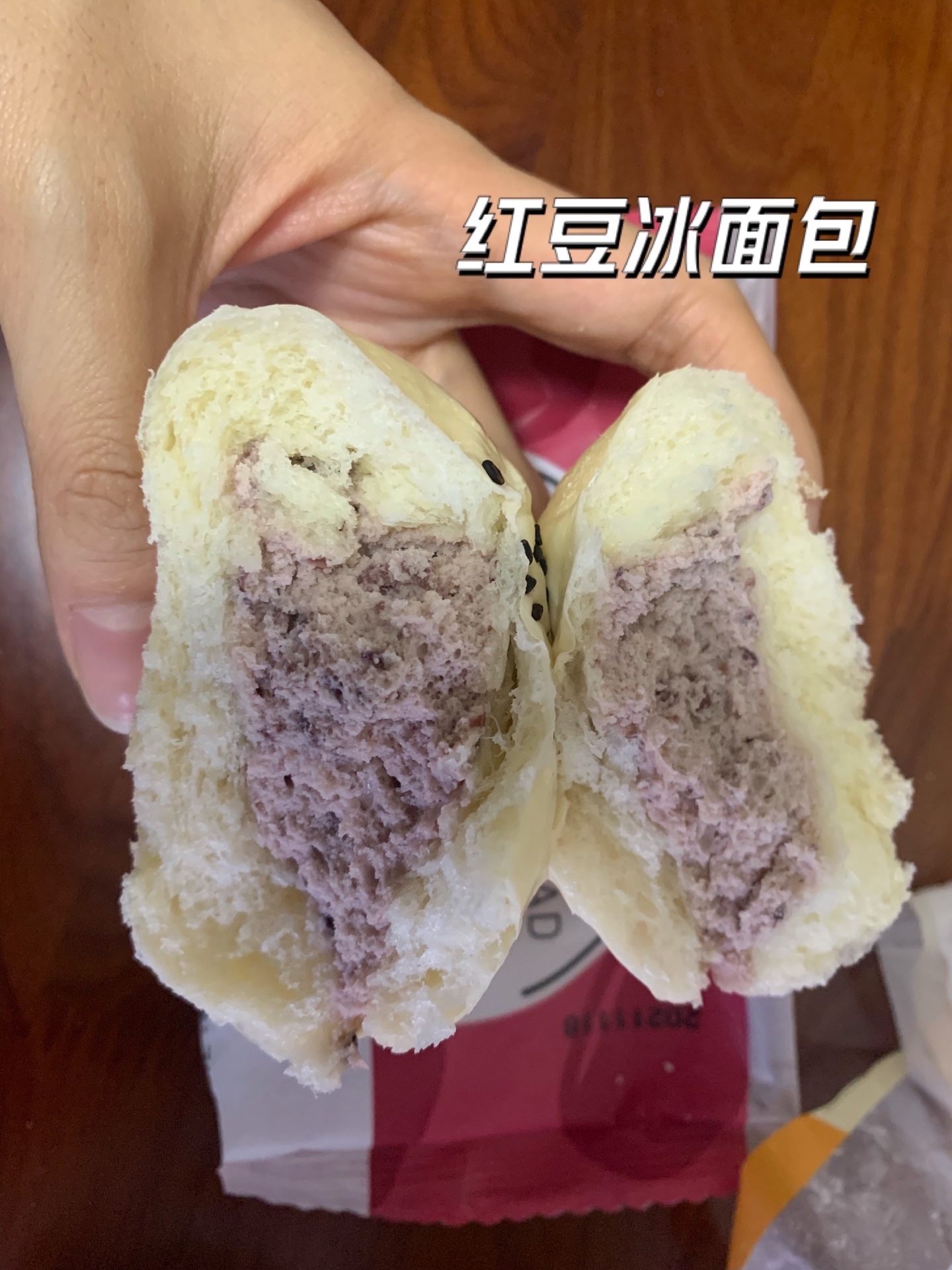 「红豆冰面包」「芒果冰面包」冰面包真的不踩雷,红豆、芒果馅料充足,甜度适中,🍞面包皮真的能做到入口即化的感觉,一点都不厚重不干噎。性价比也很高,9💰一个比便利店🏪还🉑️!早餐🥣我可以一口气吃两个!相对我更喜欢红豆~紫色好治愈哦!