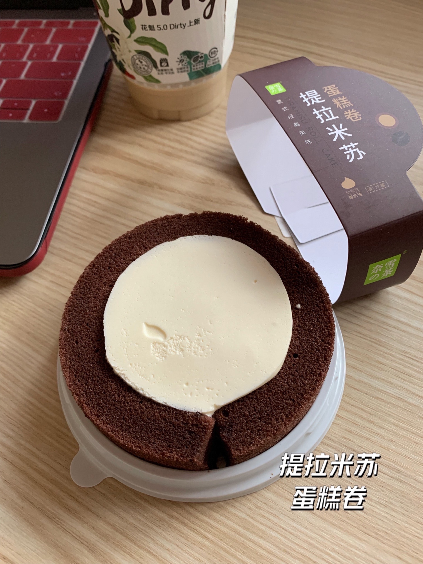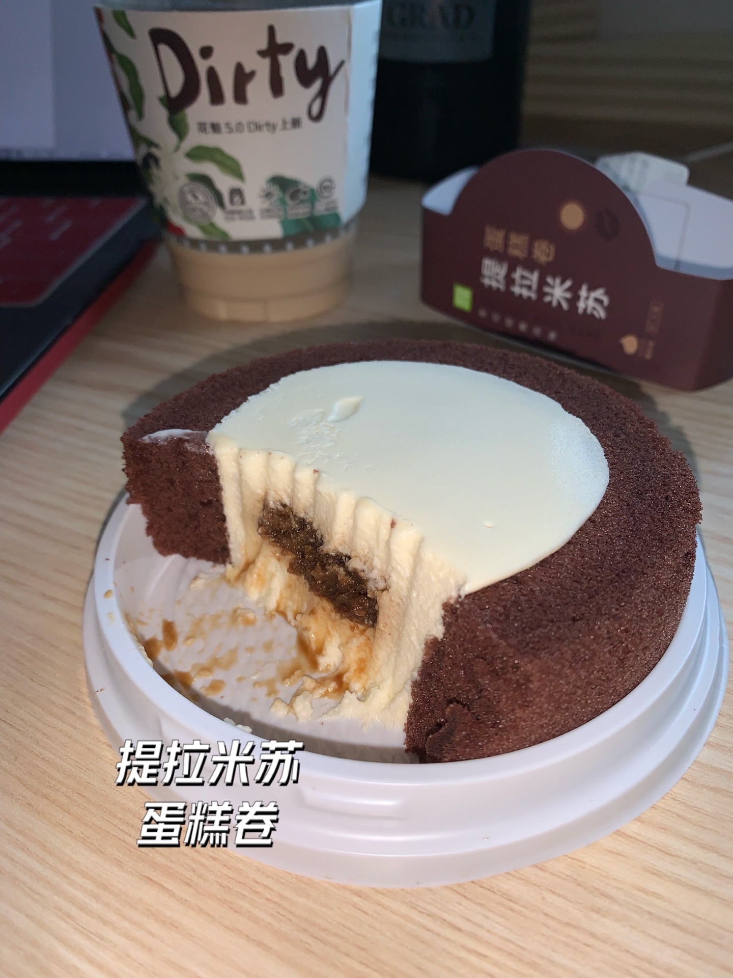 「提拉米苏蛋糕卷」蛋糕卷告辞了,外皮卷水嗒嗒的,白色的奶酪奶油口感不重但是不纯香,还是夹心的,整个吃起来就是湿乎乎的感觉的。不推荐!