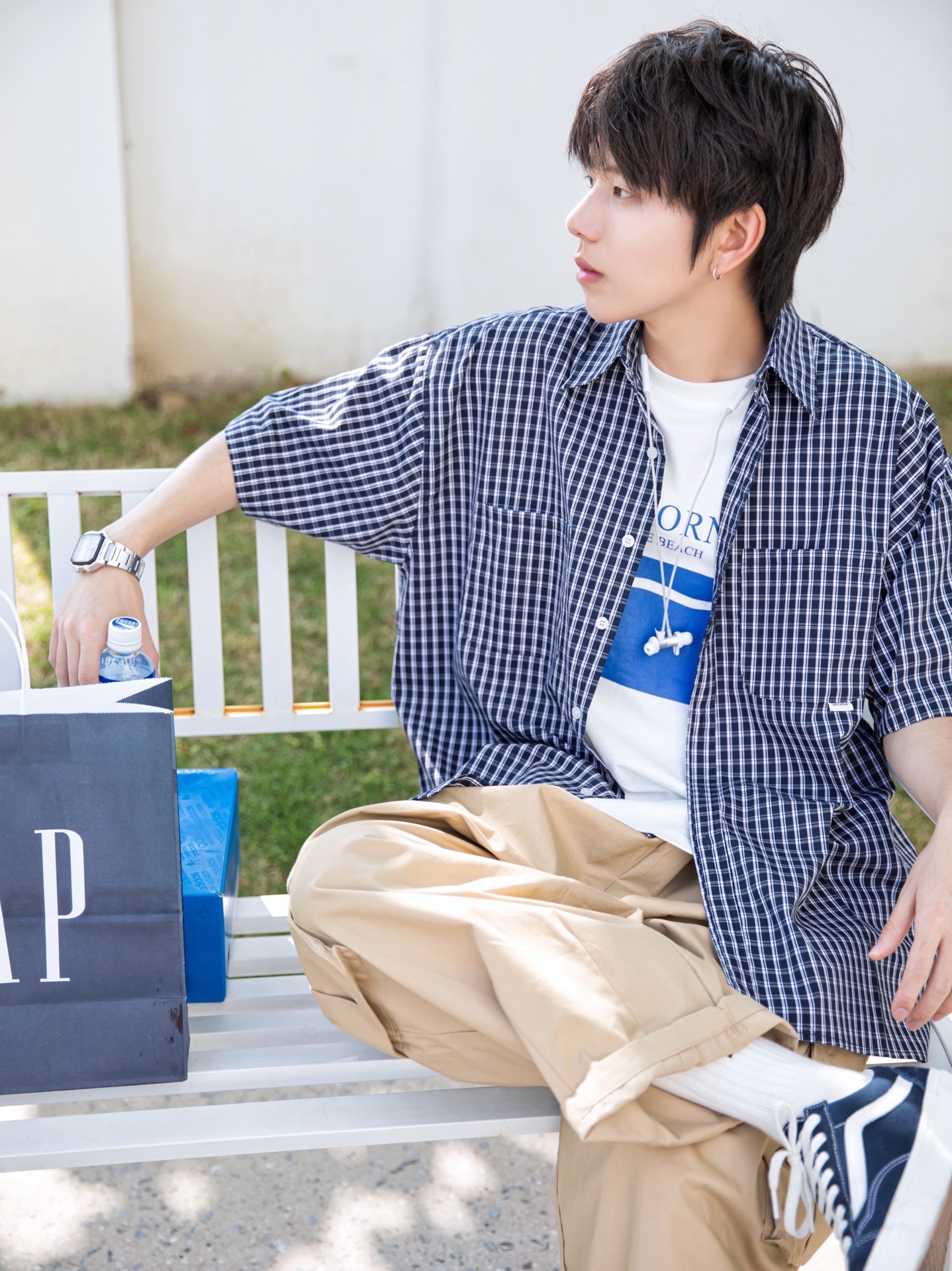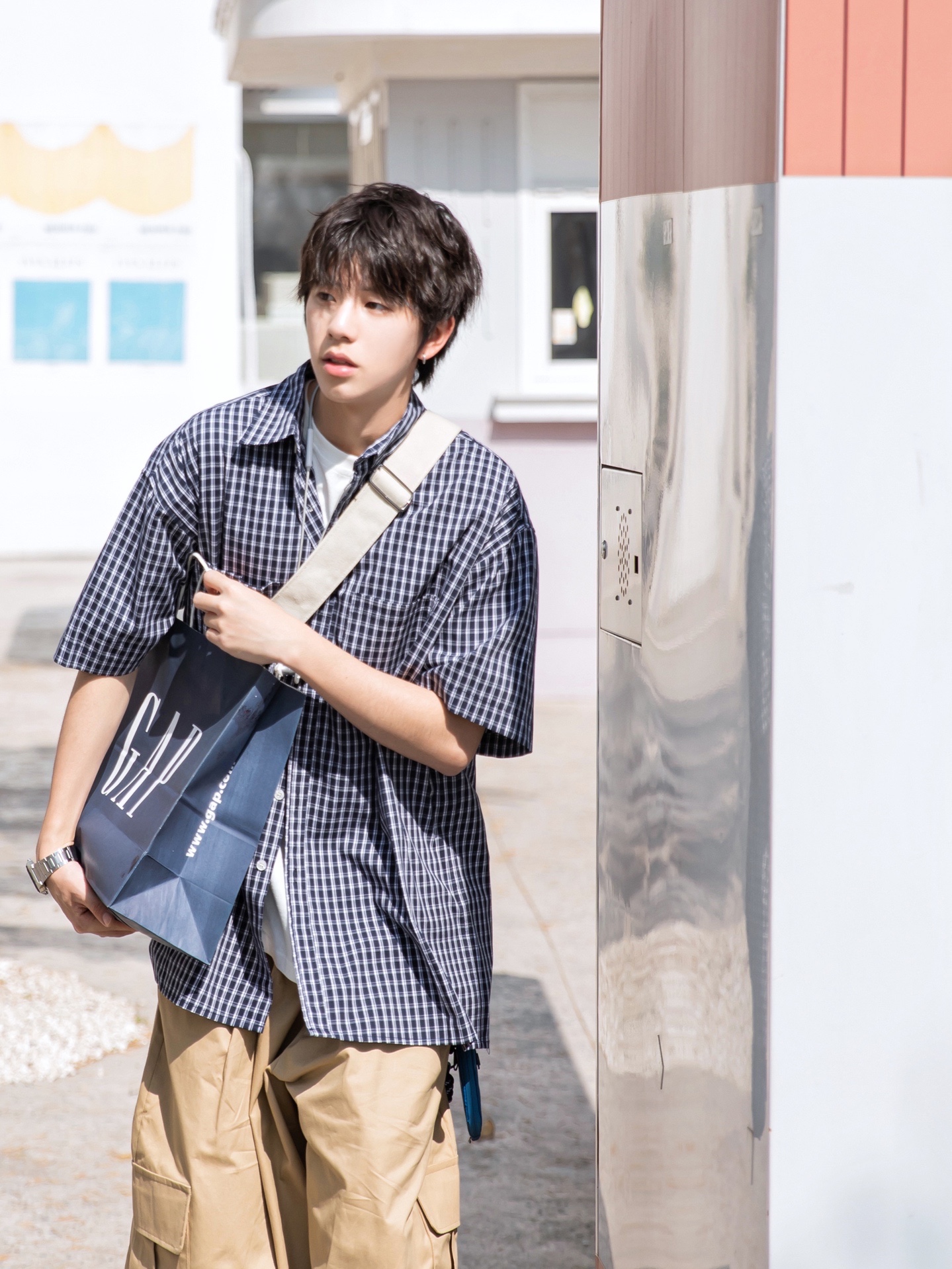 🔹夏天,对于男孩子来讲,日系少年感穿搭,真的好适合男生夏季穿搭👔✨……简单干净,宽松舒适,走在阳光下就真的就是一整个活力少年感。今天,这件短袖格子衬衫,打底一件大白T,搭配一条宽松垂感的卡其色阔腿裤,略带慵懒的氛围感,好适合下个月的七夕约会穿搭哦!
