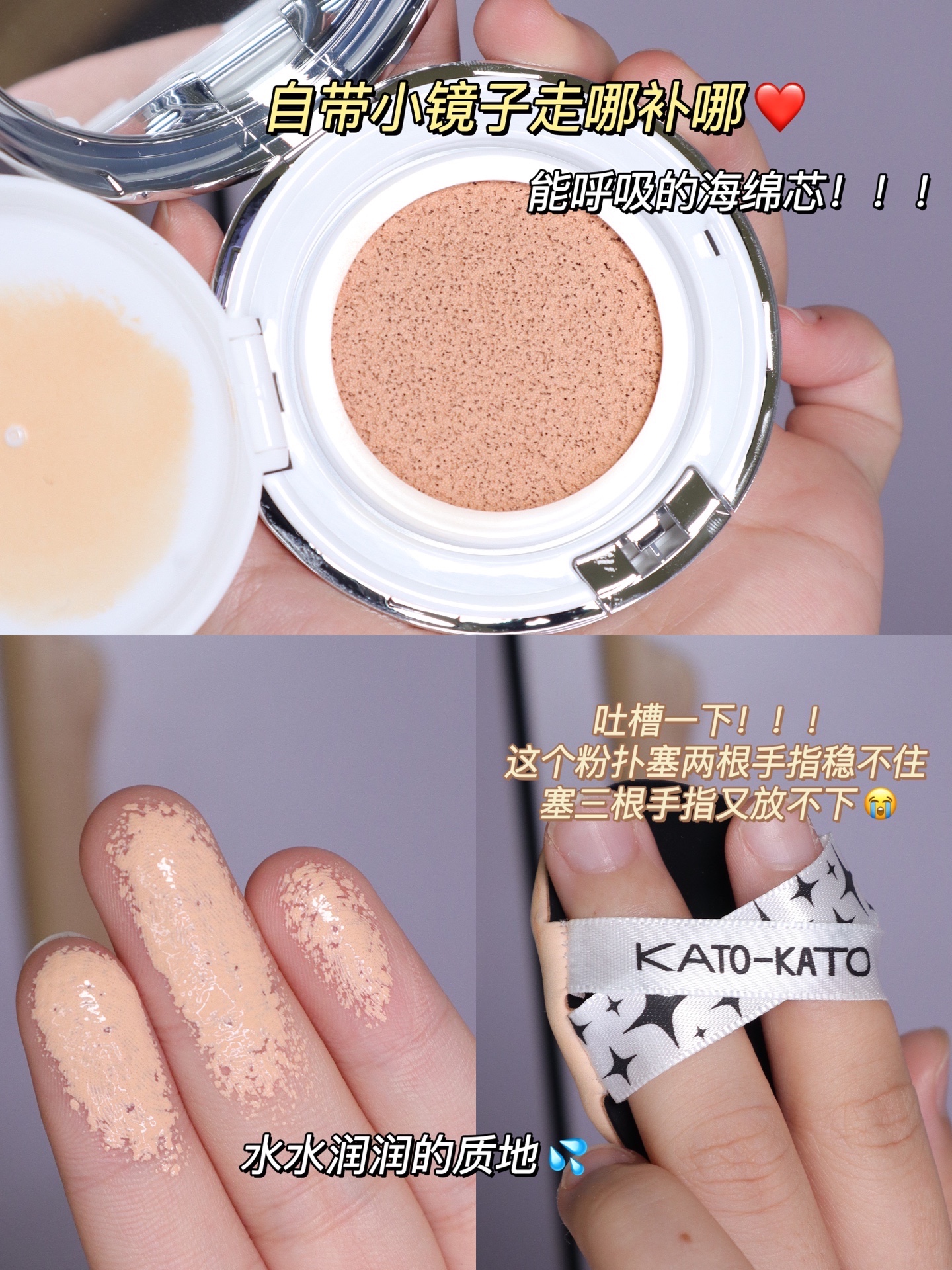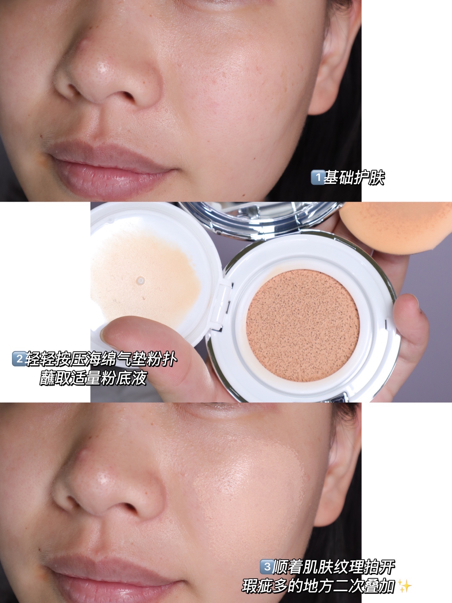 ⚠️我的使用方法:用自带的粉扑蘸取适量粉底液,顺着肌肤纹理拍开