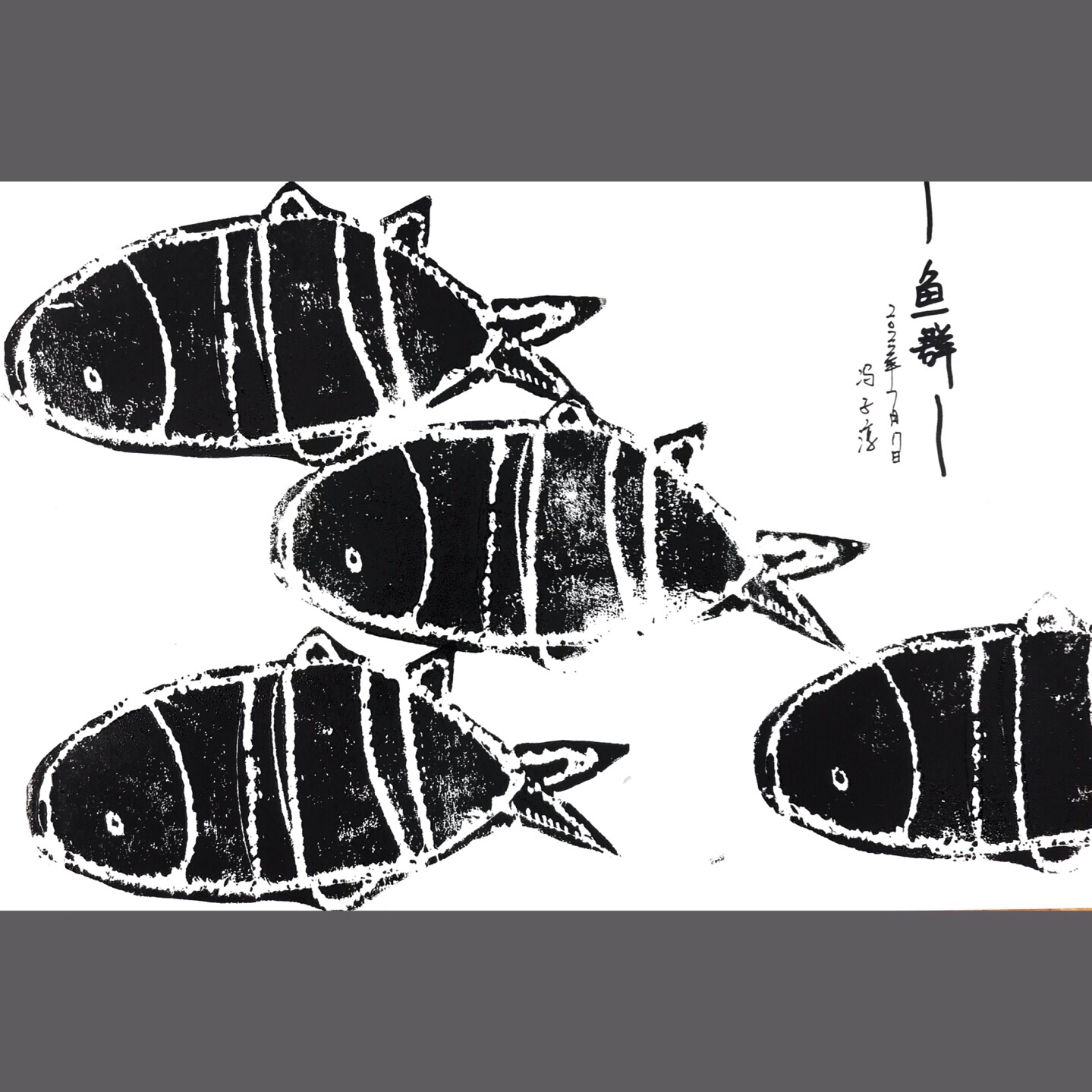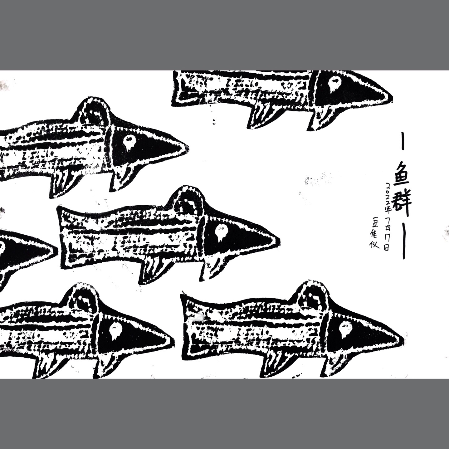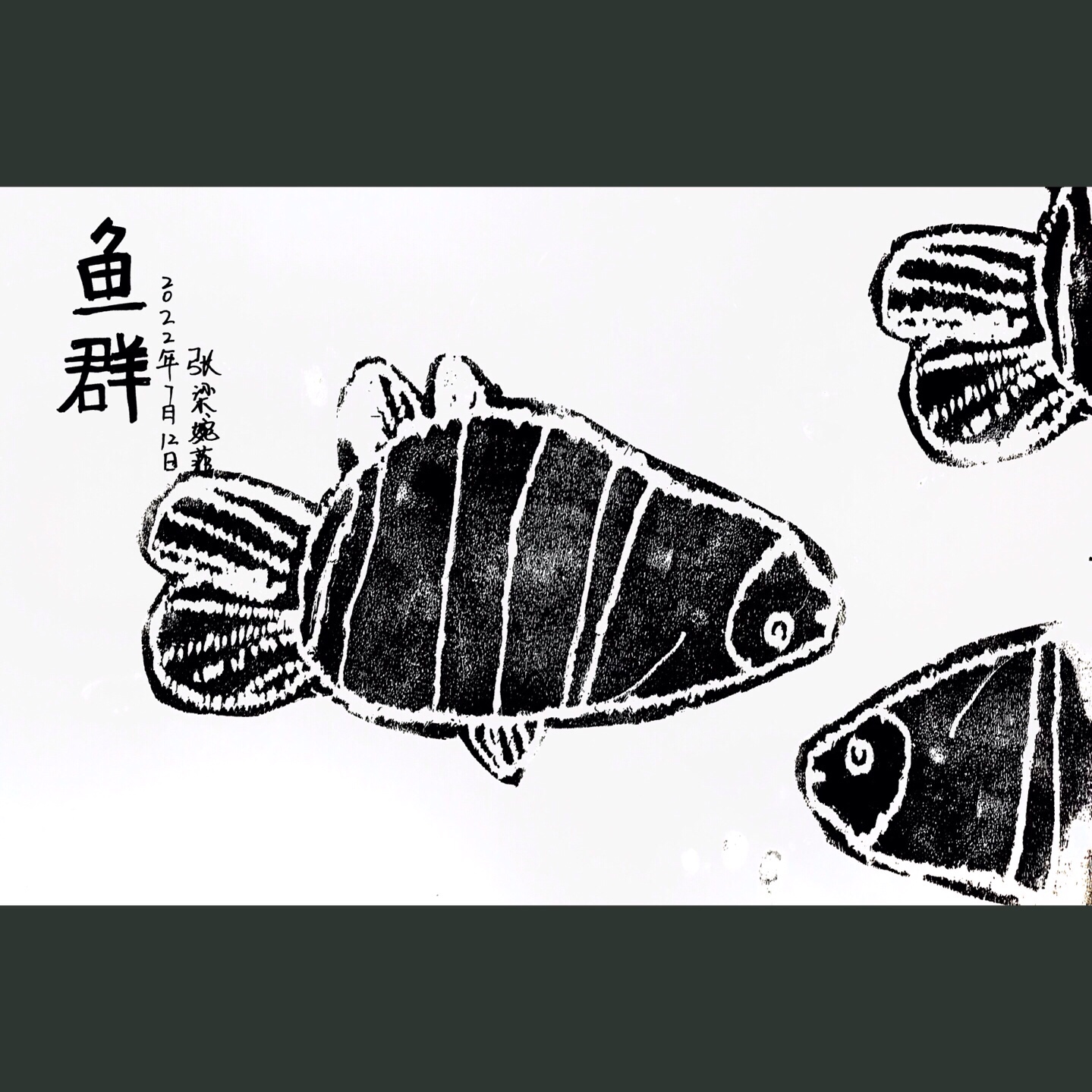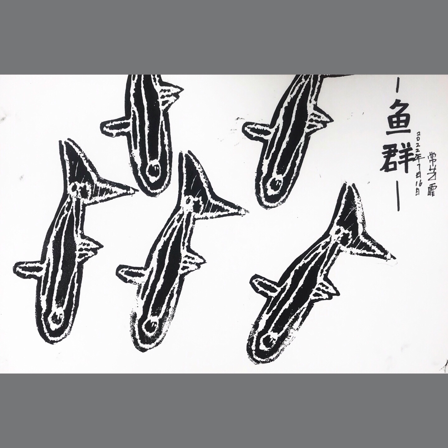 《鱼群》通过绘本《大鱼吃小鱼》让小朋友了解团队协作的重要性,并通过观察鱼群的特点了解鱼群的鱼的相似性以及鱼群多少大小的分布,让小朋友对后期画面构图有所掌握。本节课运用版画的形式来让小朋友感受不一样的创作形式。