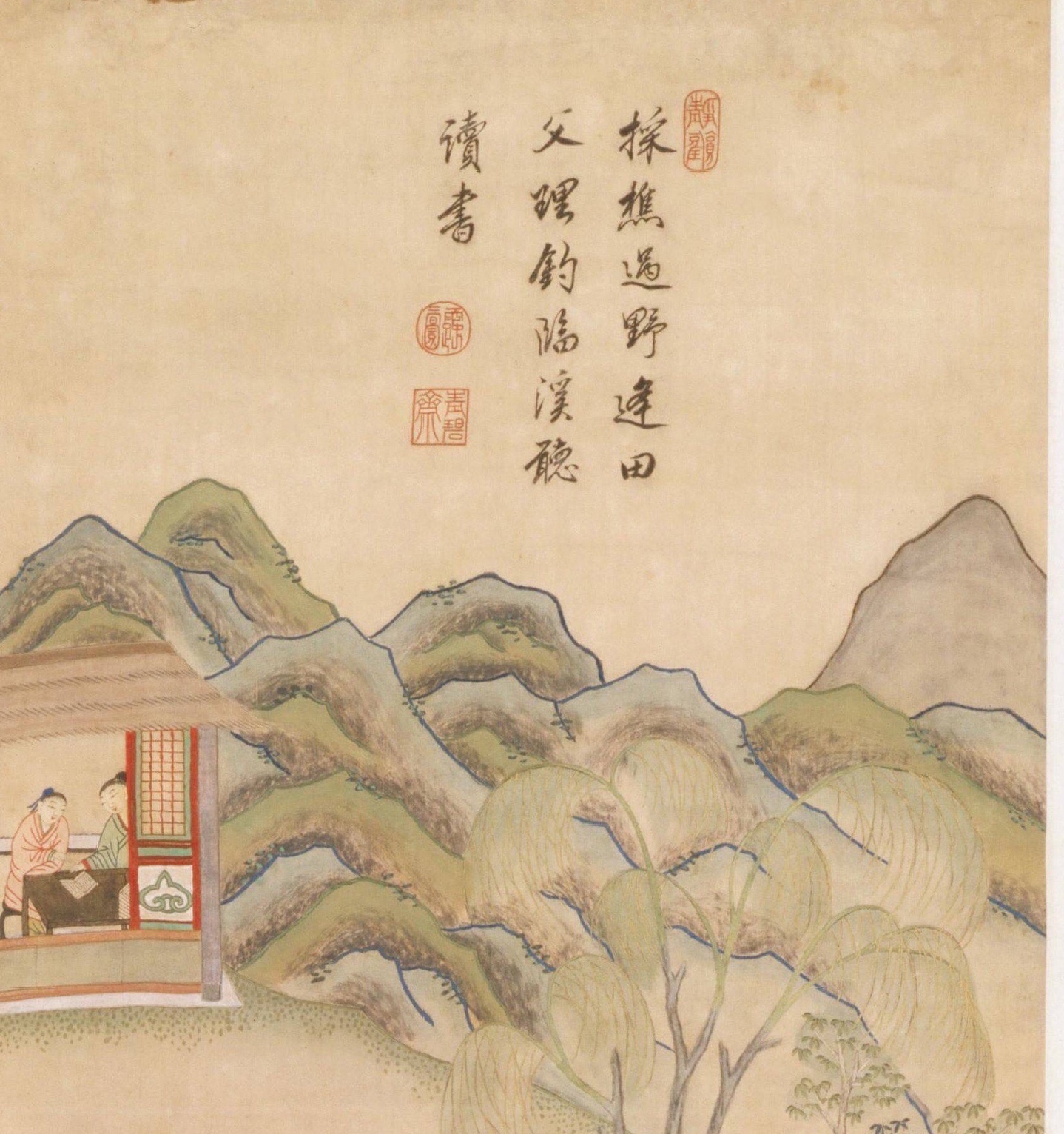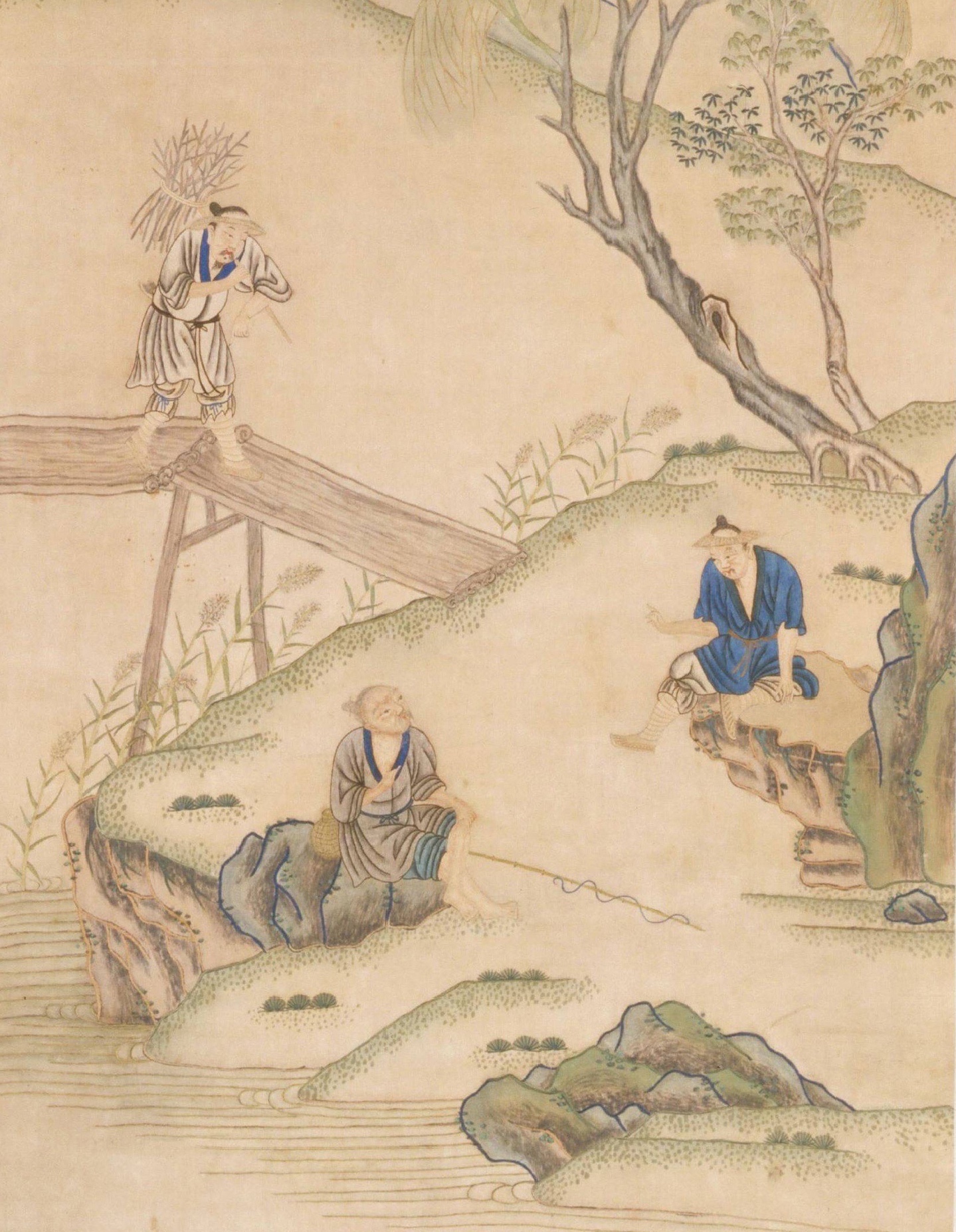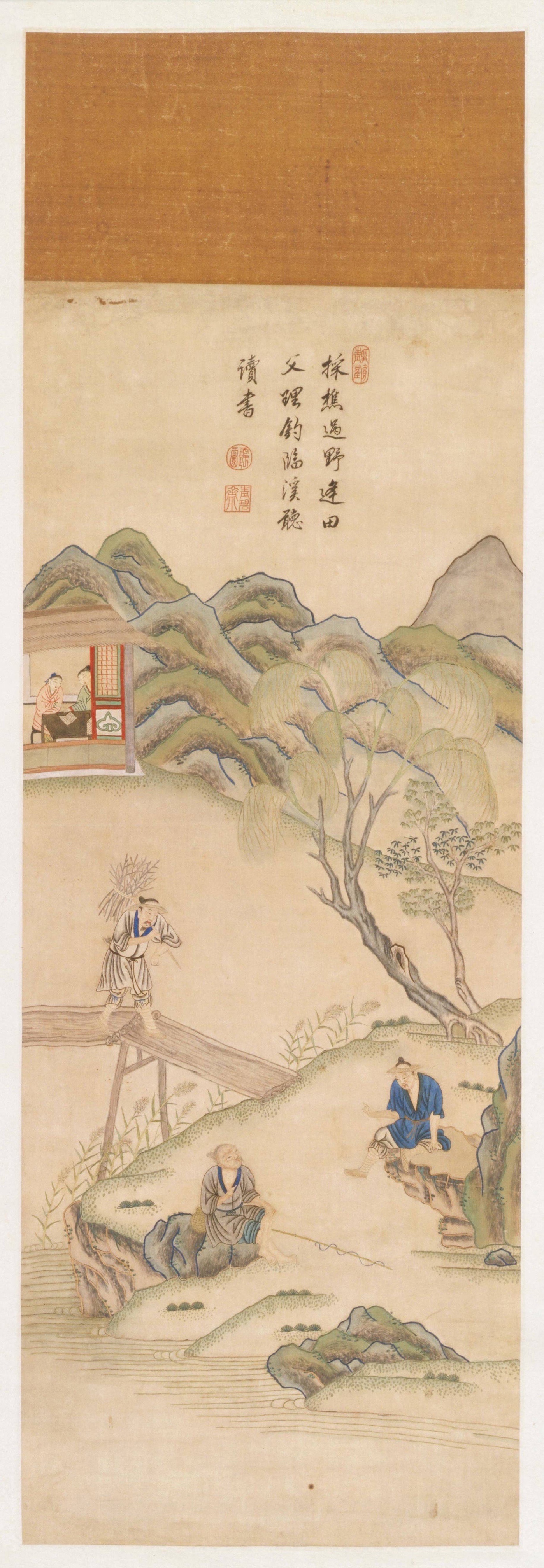 清 顾绣 | 渔樵耕读图轴赏析