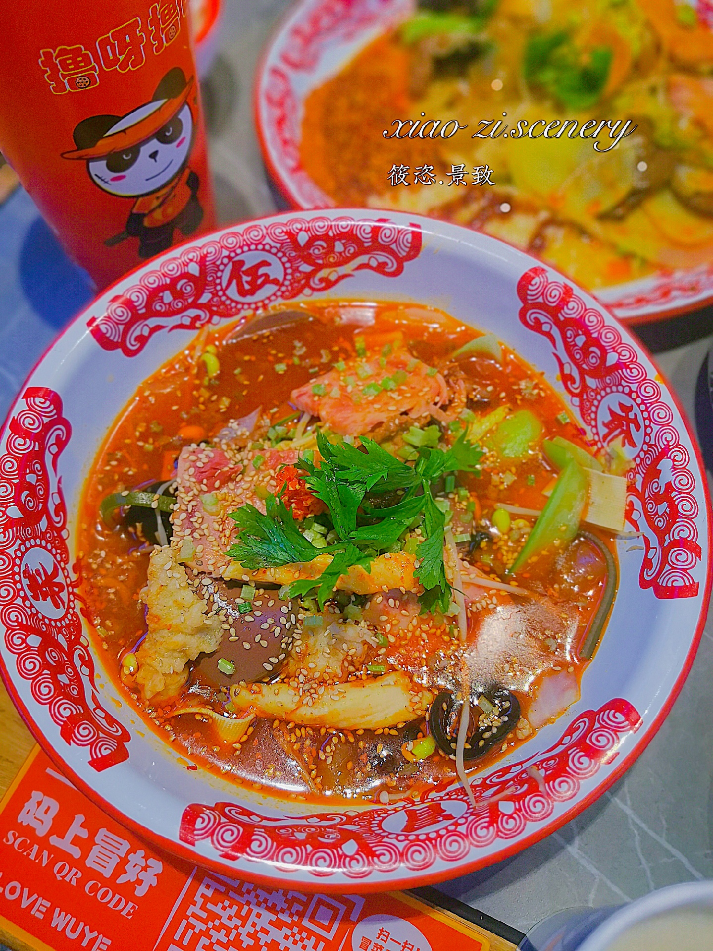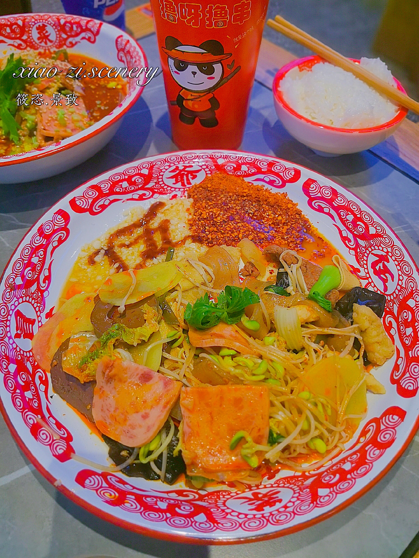 🛎【冒菜】:冒菜分为蘸冒和捞冒,蘸冒是干拌的,捞冒是汤汤水水的。喜欢吃辣🌶的朋友会更喜欢蘸冒,里边满满的干辣椒和蒜蓉,干饭🍚特别带劲~