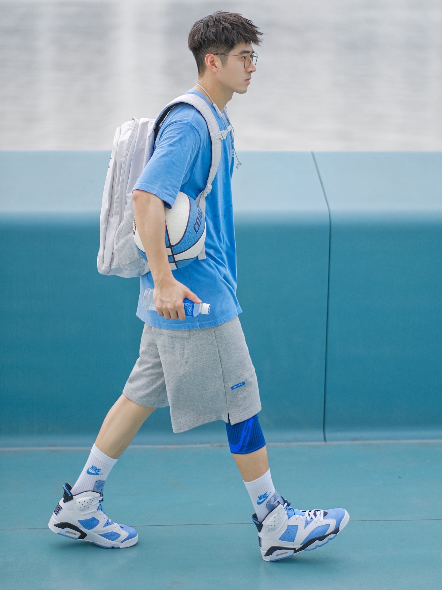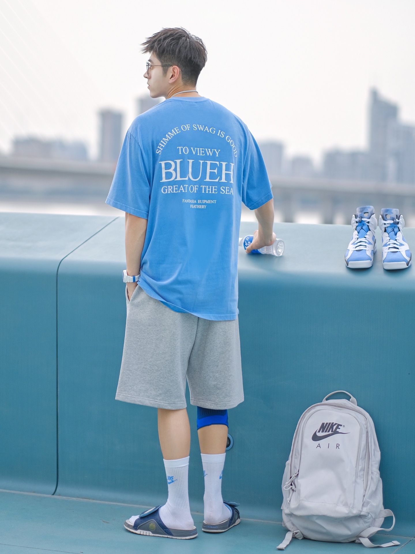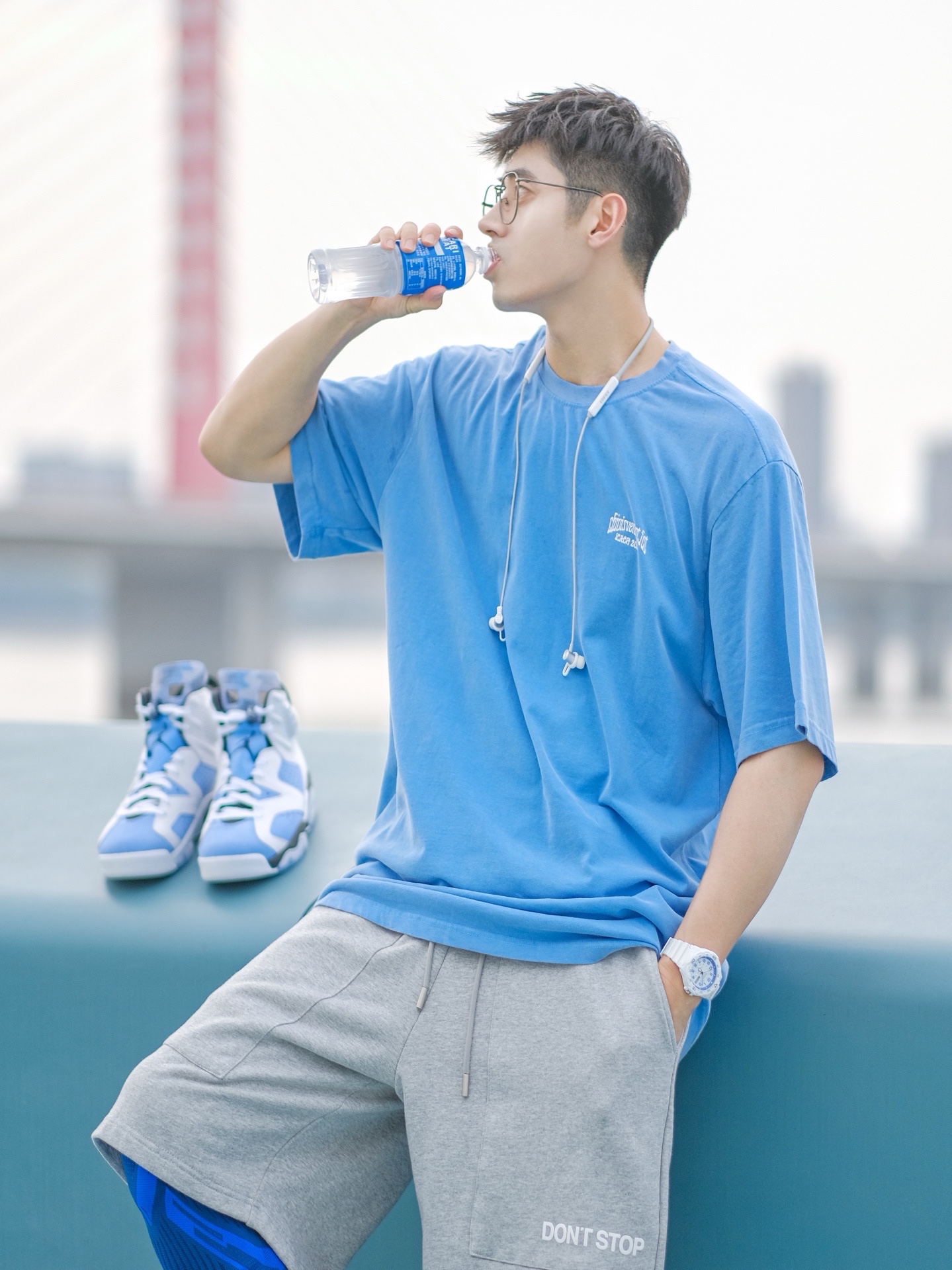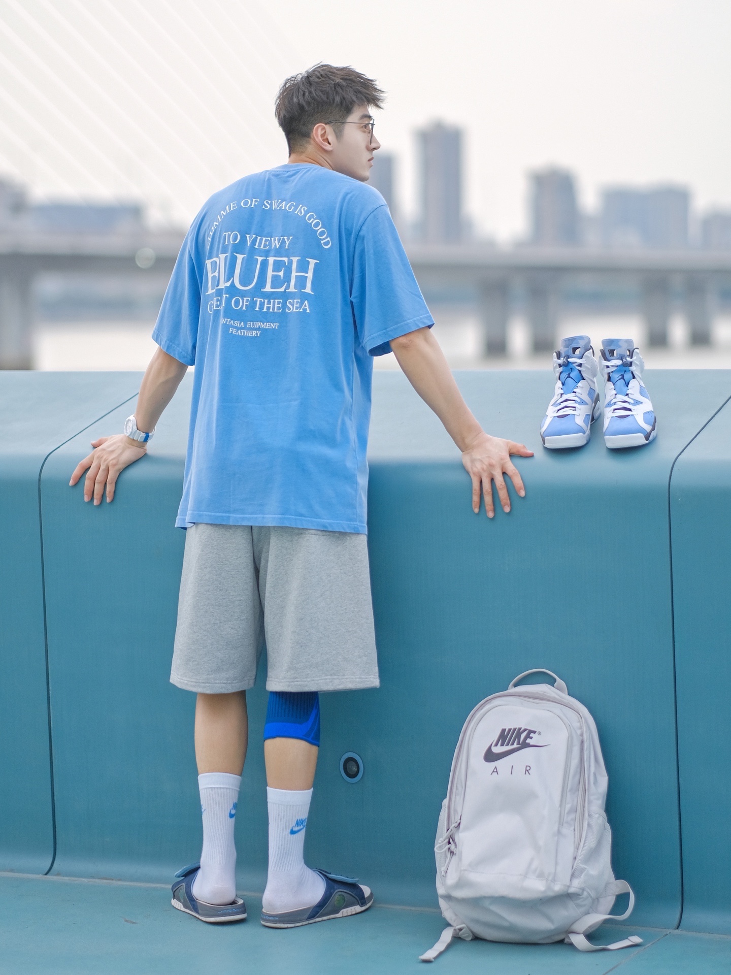 🔹太喜欢这双AJ6北卡蓝了!所以,今天搭配了一套“蓝色系”夏日穿搭,满满的体育生OOTD质感。为了这套LOOK,还选了这个蓝色背景的江边拍照,感觉还不错。拍出来自带蓝色滤镜的调调,满满的“蓝朋友”少年感穿搭!可以!