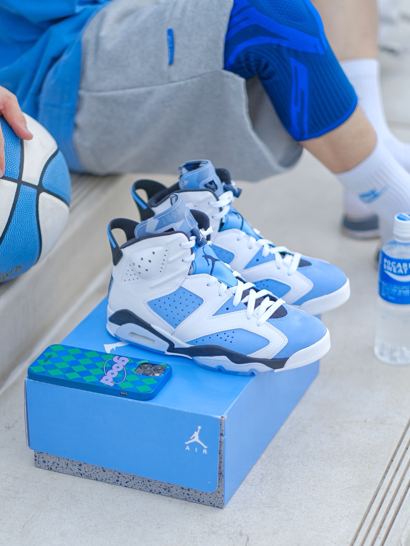 👟:AJ6;✨(真的好喜欢这双北卡蓝的颜色,蓝白配色不能不爱,脚感虽然一般般,但就这颜值,真的好适合夏天!)