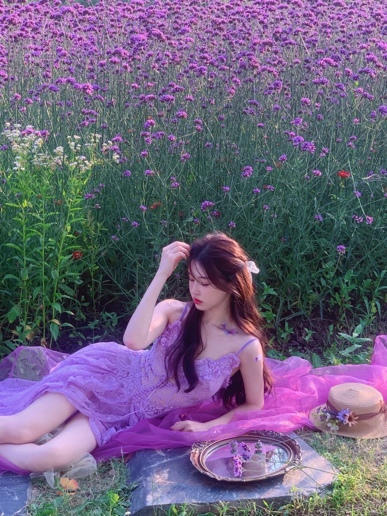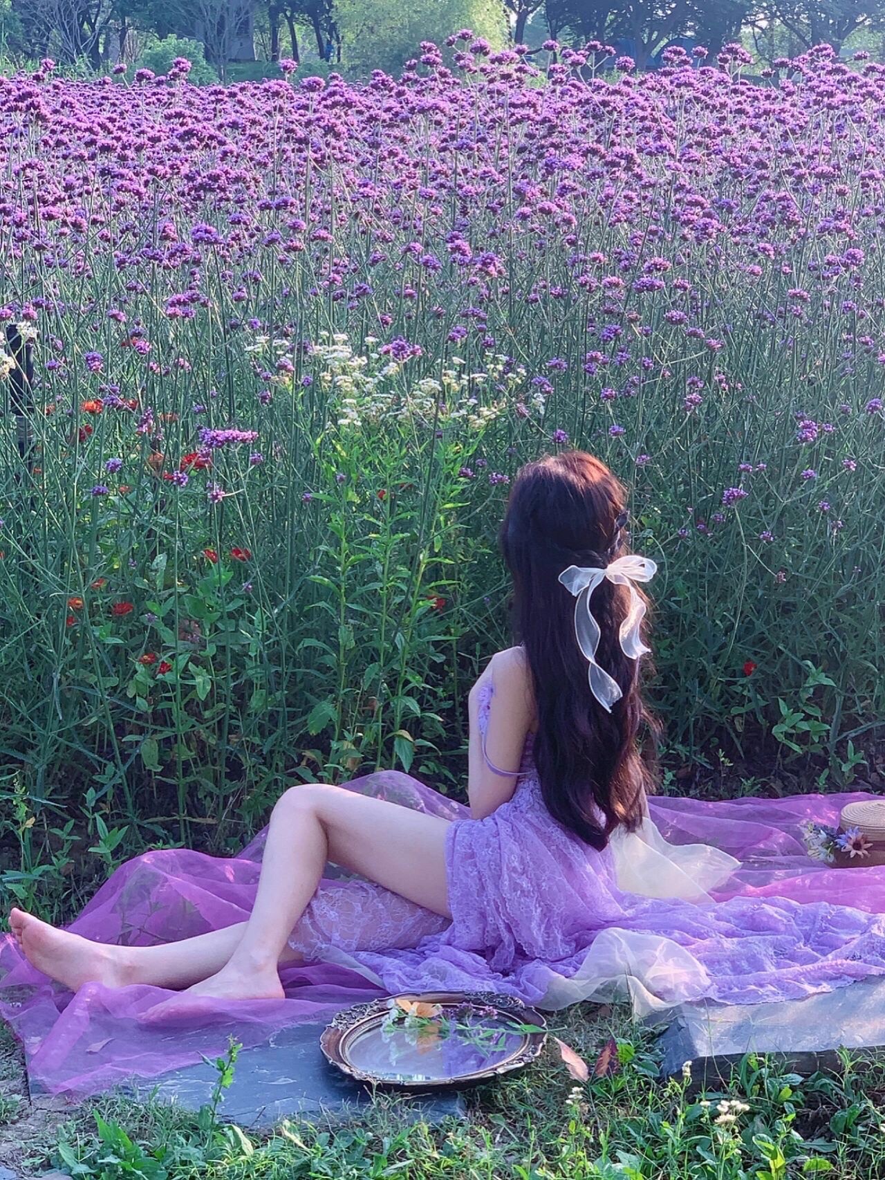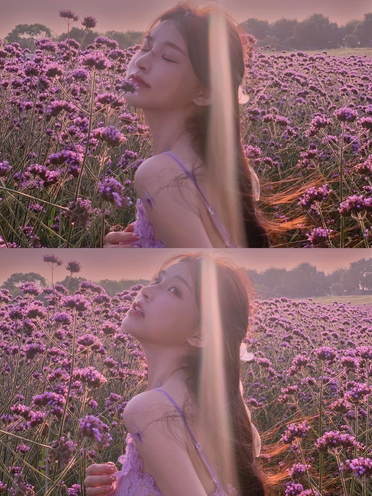 上周去了青浦寻梦源 很小众的一个地方 超级超级远但是拍完这组一天都值了 紫色非常非常仙气显白 日落的时候无敌美 氛围感拉满了