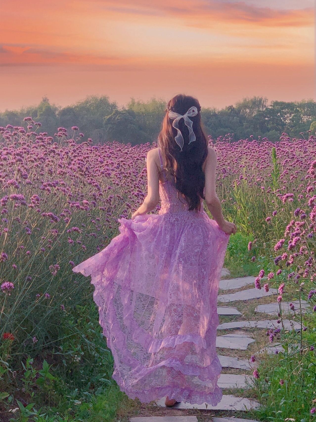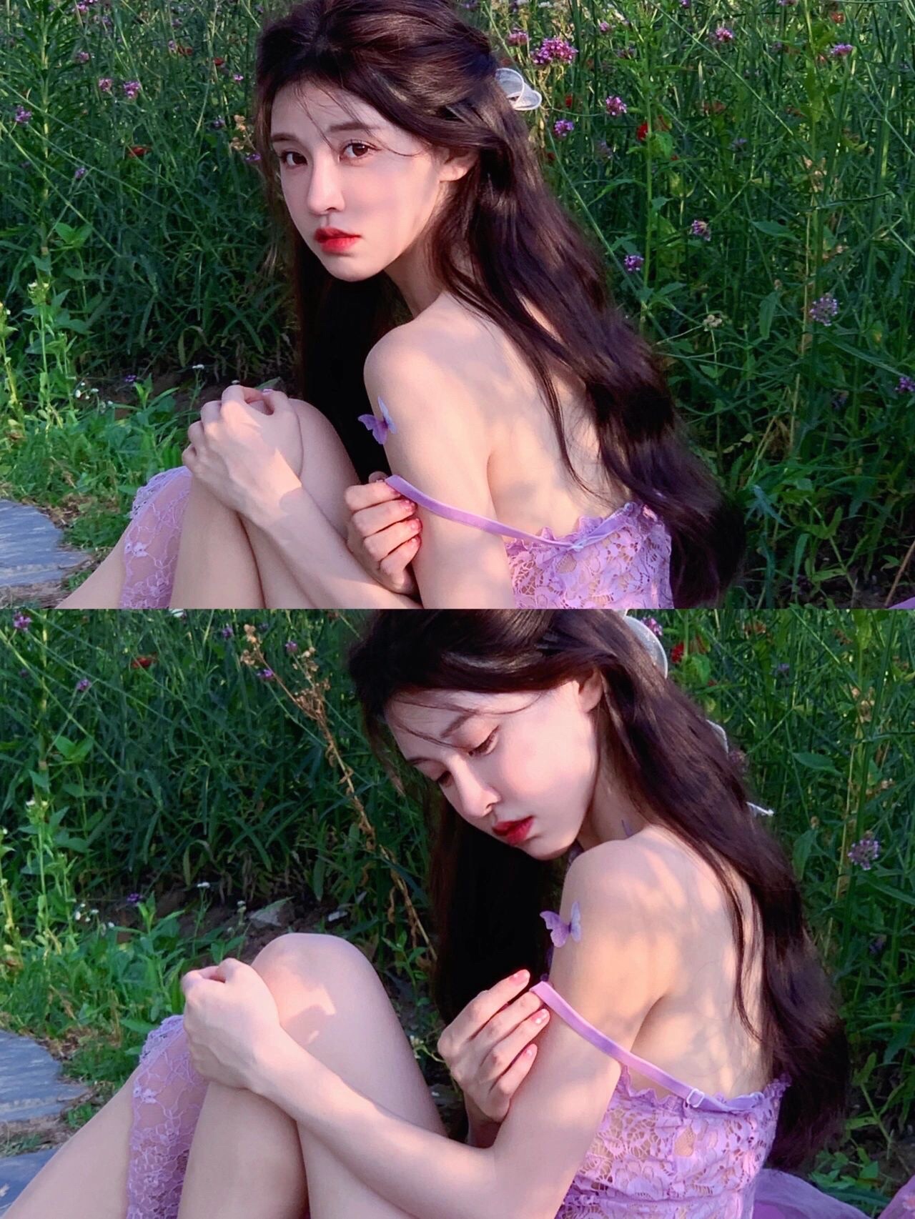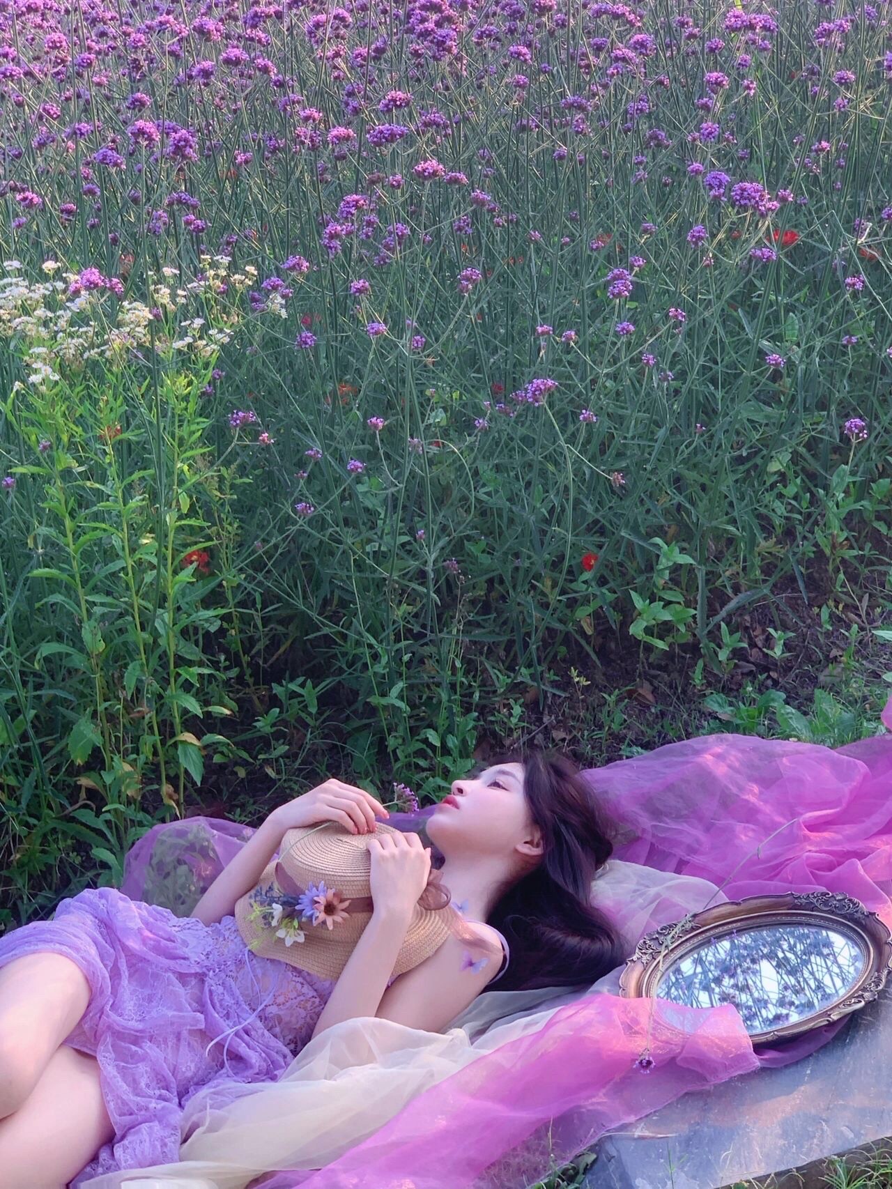 上周去了青浦寻梦源 很小众的一个地方 超级超级远但是拍完这组一天都值了 紫色非常非常仙气显白 日落的时候无敌美 氛围感拉满了
