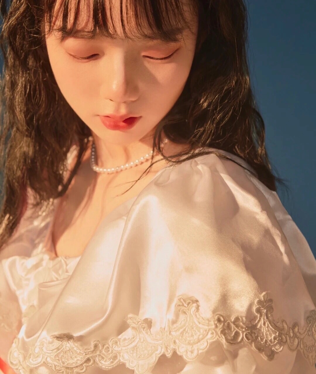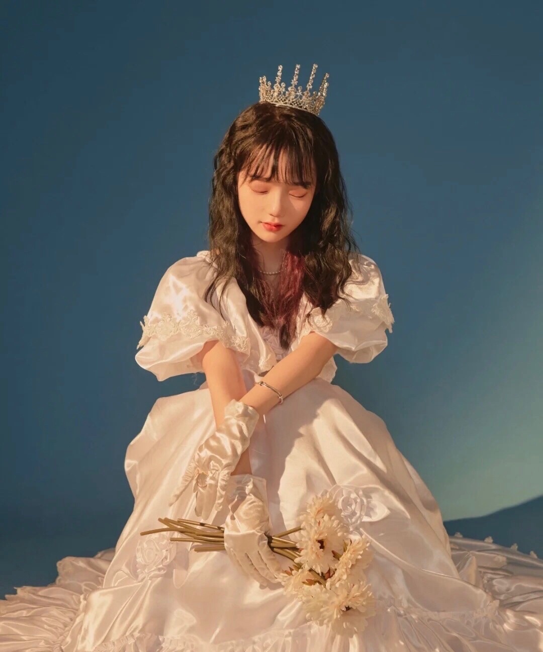 服装:复古缎面婚纱泡泡袖设计显得比例很好淑女优雅又不失俏皮.