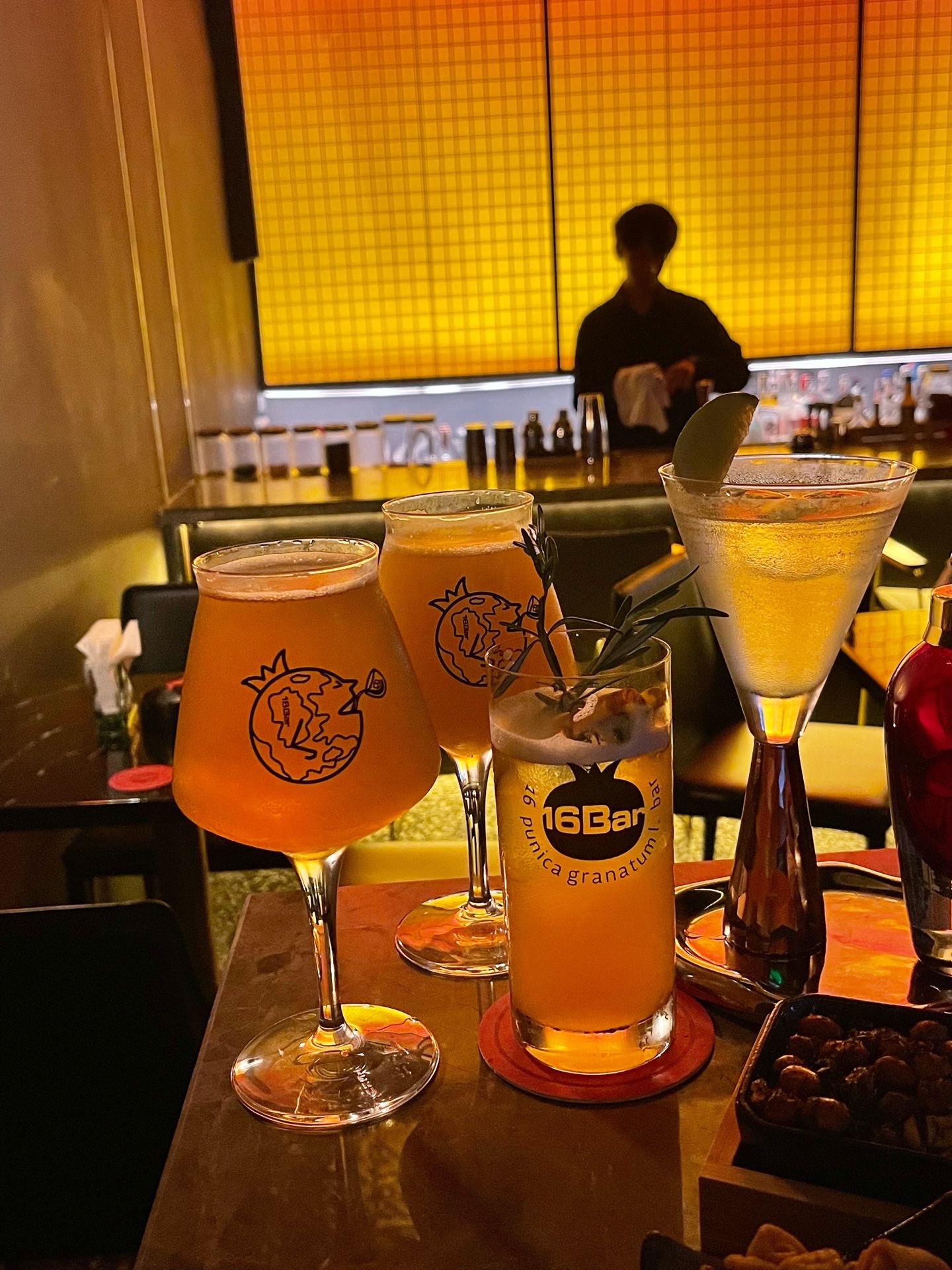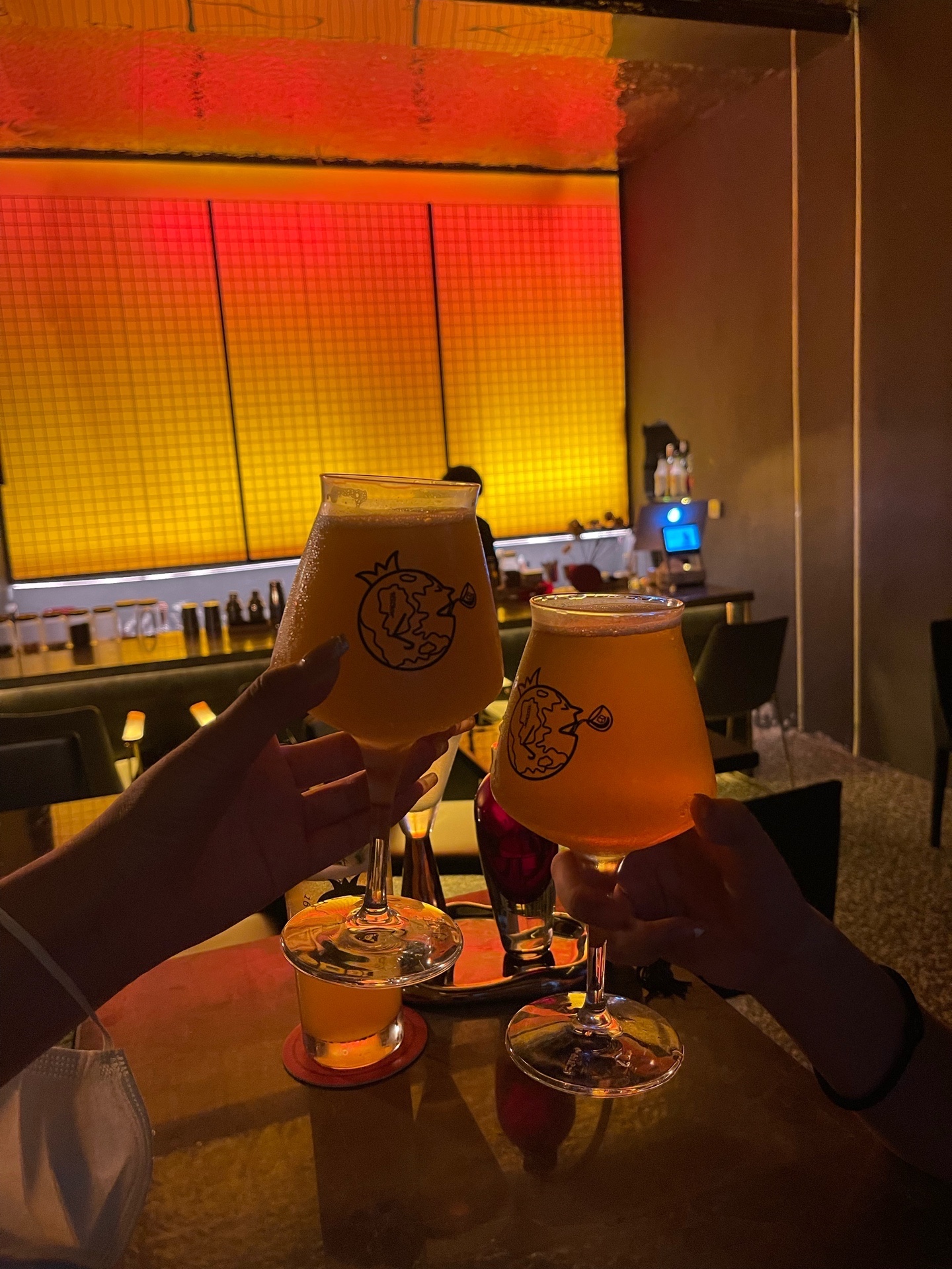 点了两杯鸡尾酒🍸和两杯精酿啤酒