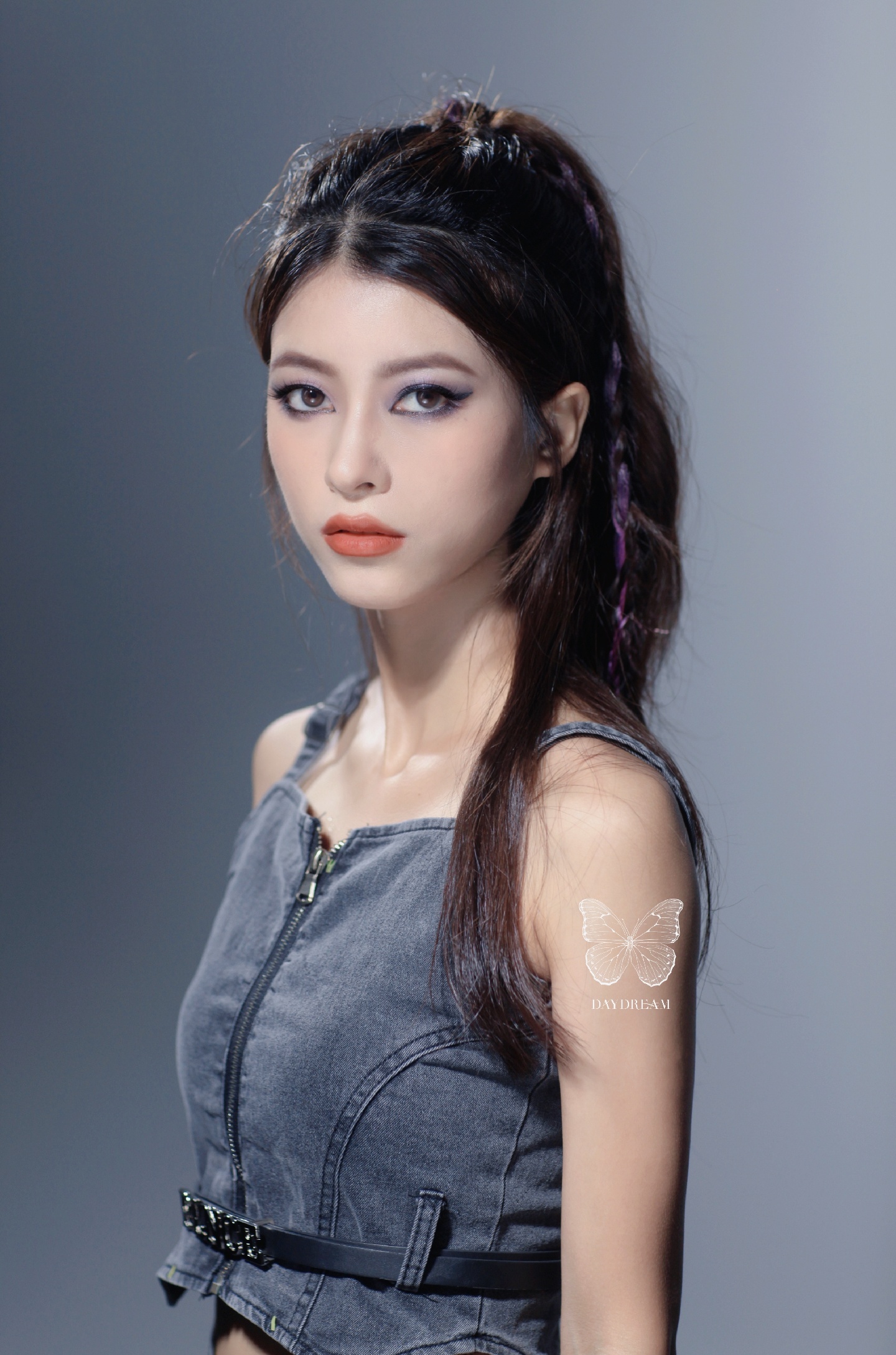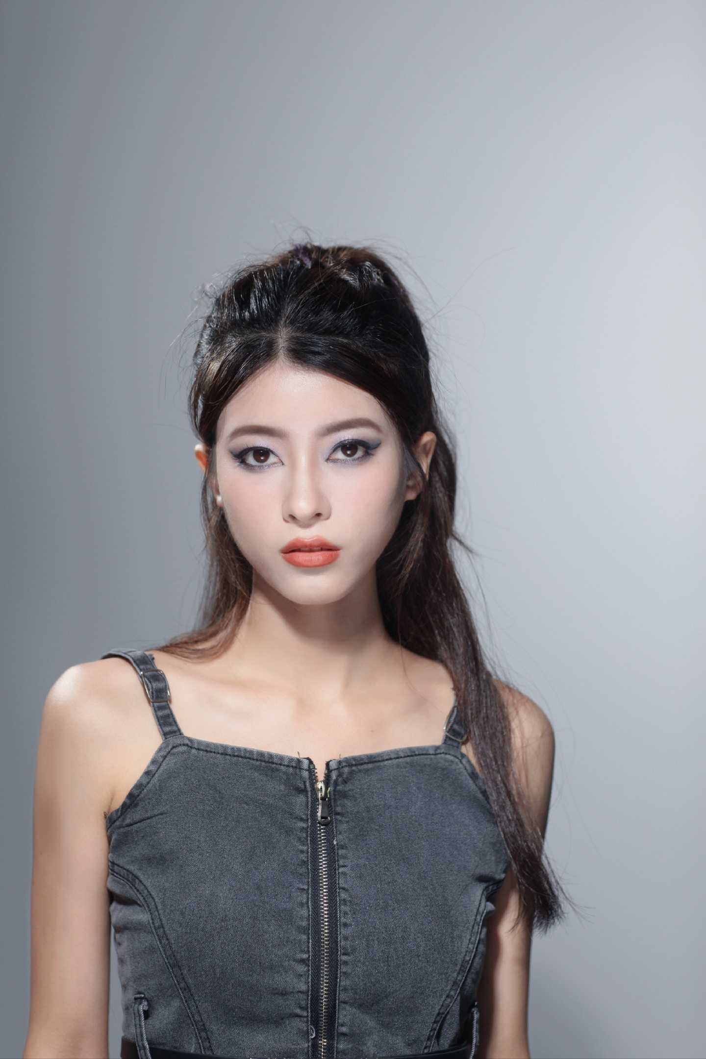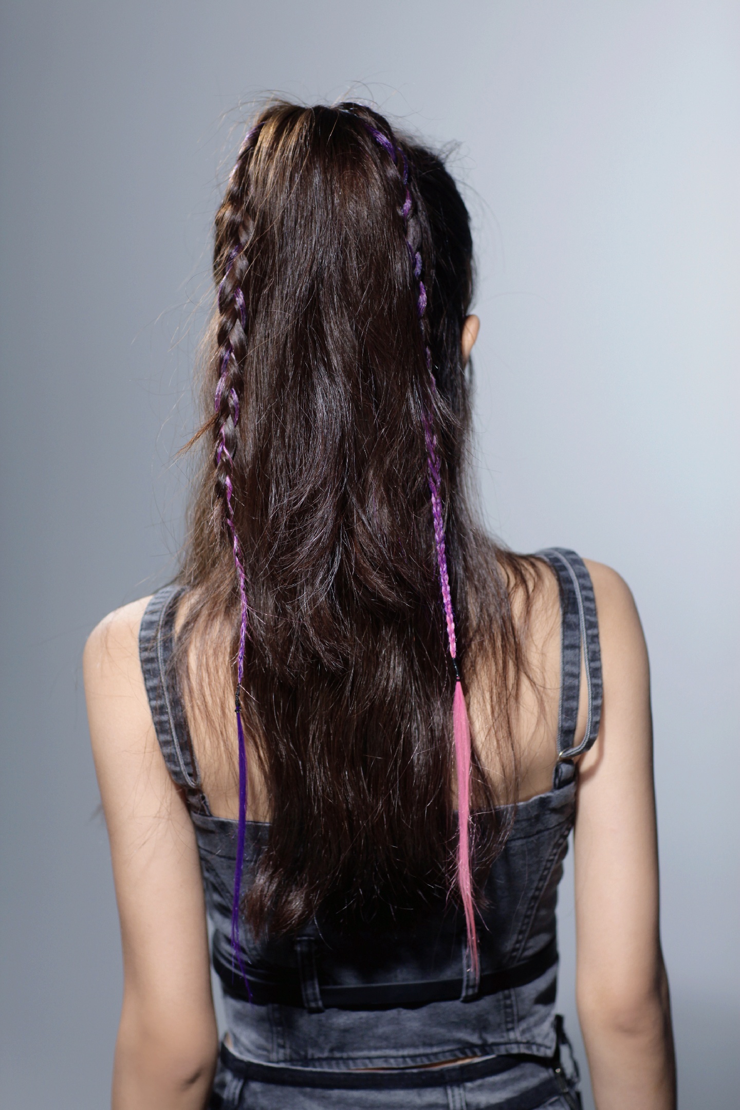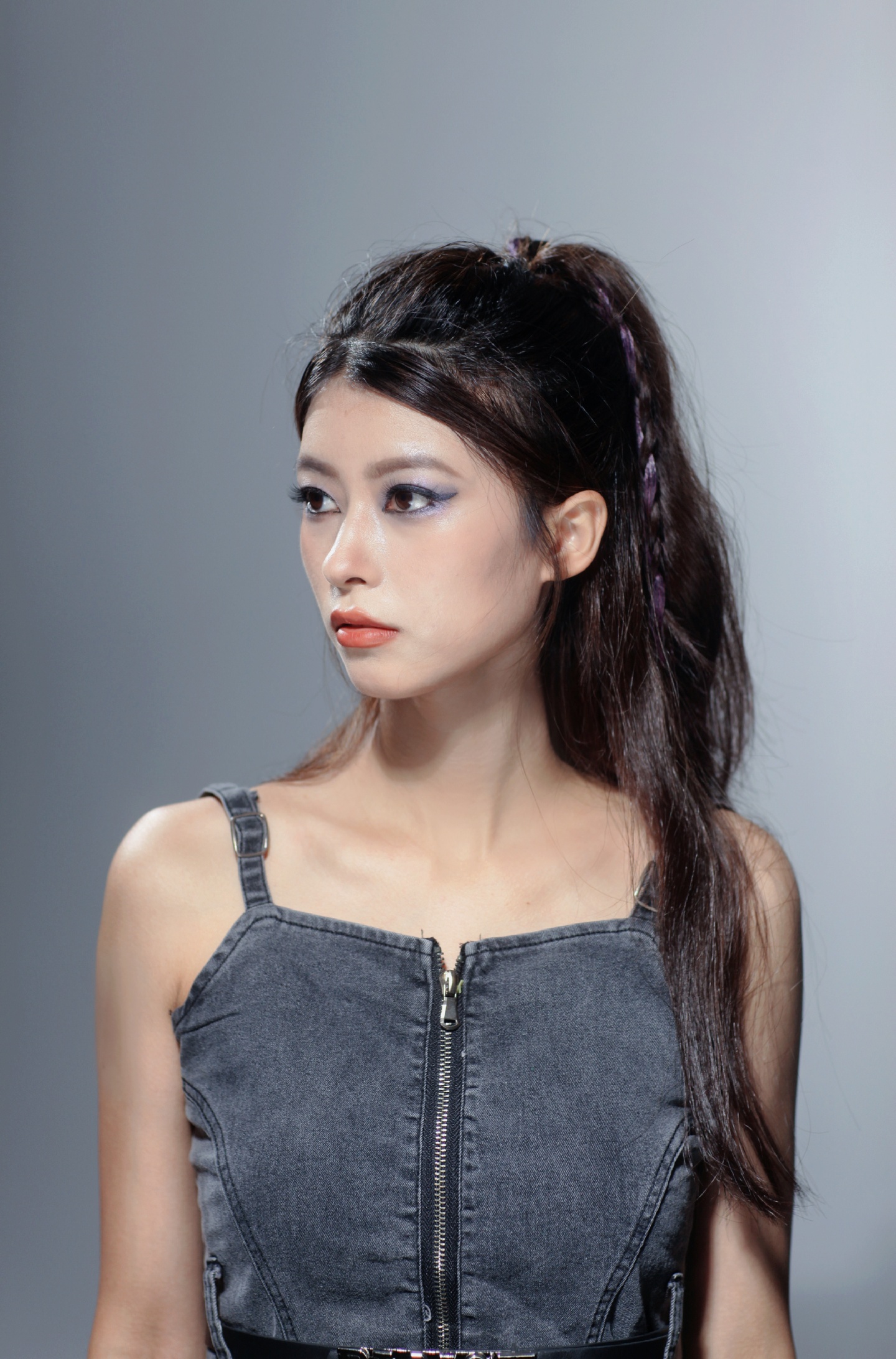 妆容:紫色烟熏妆+高马尾(紫色假麻花辫点缀)