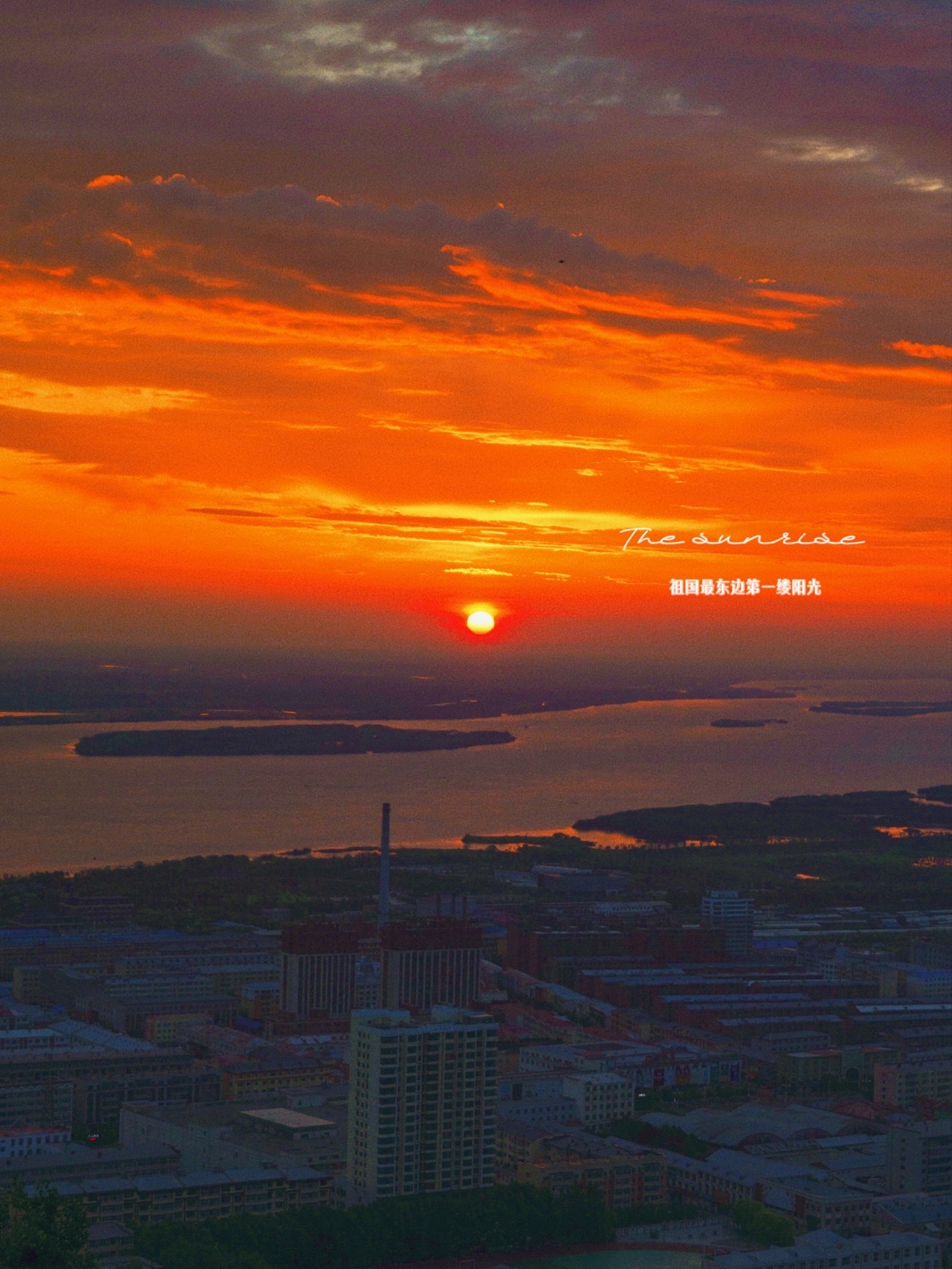 东极阁观日出,迎接祖国东方第一缕阳光,人间浪漫,尽在眼前。海拔266.5米的东极阁是抚远市的最高点。登阁即享日出红霞之下城、江、河、林、田的绝色风光。
