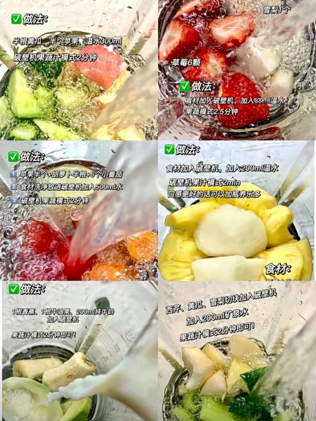 做法:将黄瓜🥒、雪梨🍐、西芹放入破壁机中,加入温水果蔬模式即可
