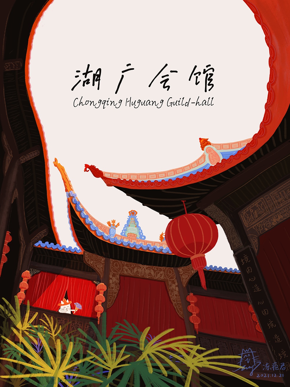 重庆湖广会馆戏台~冻疮君手绘重庆