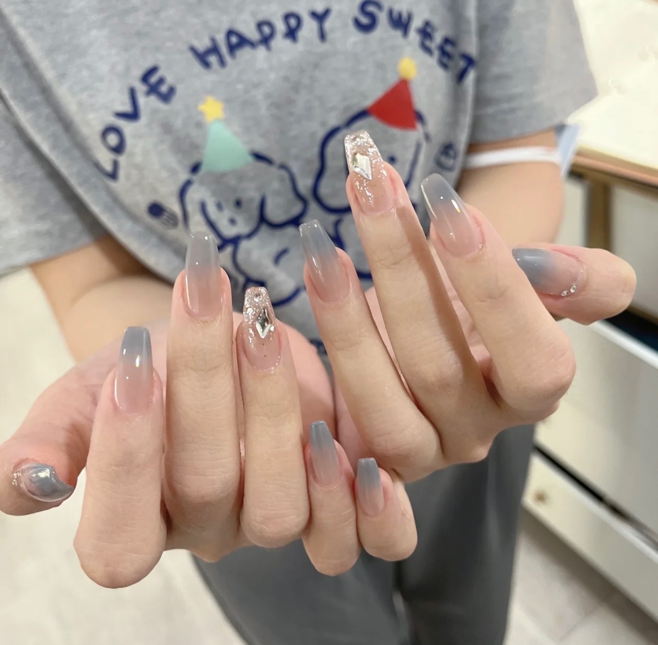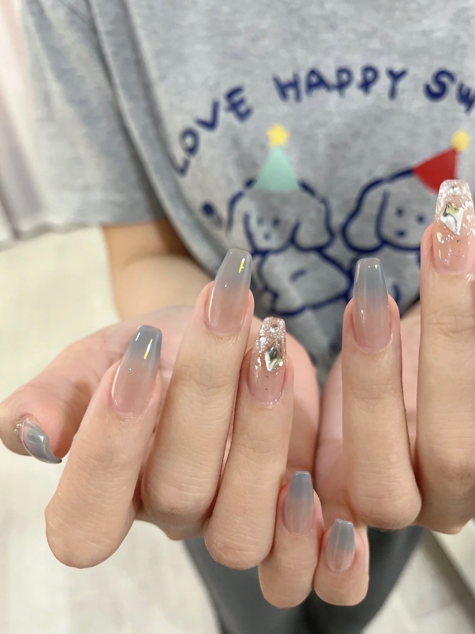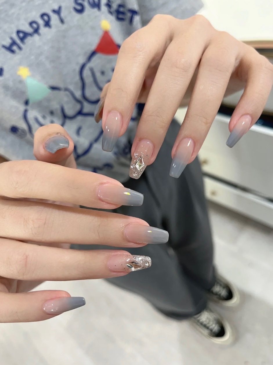 雾霾灰蓝色美甲 超显白