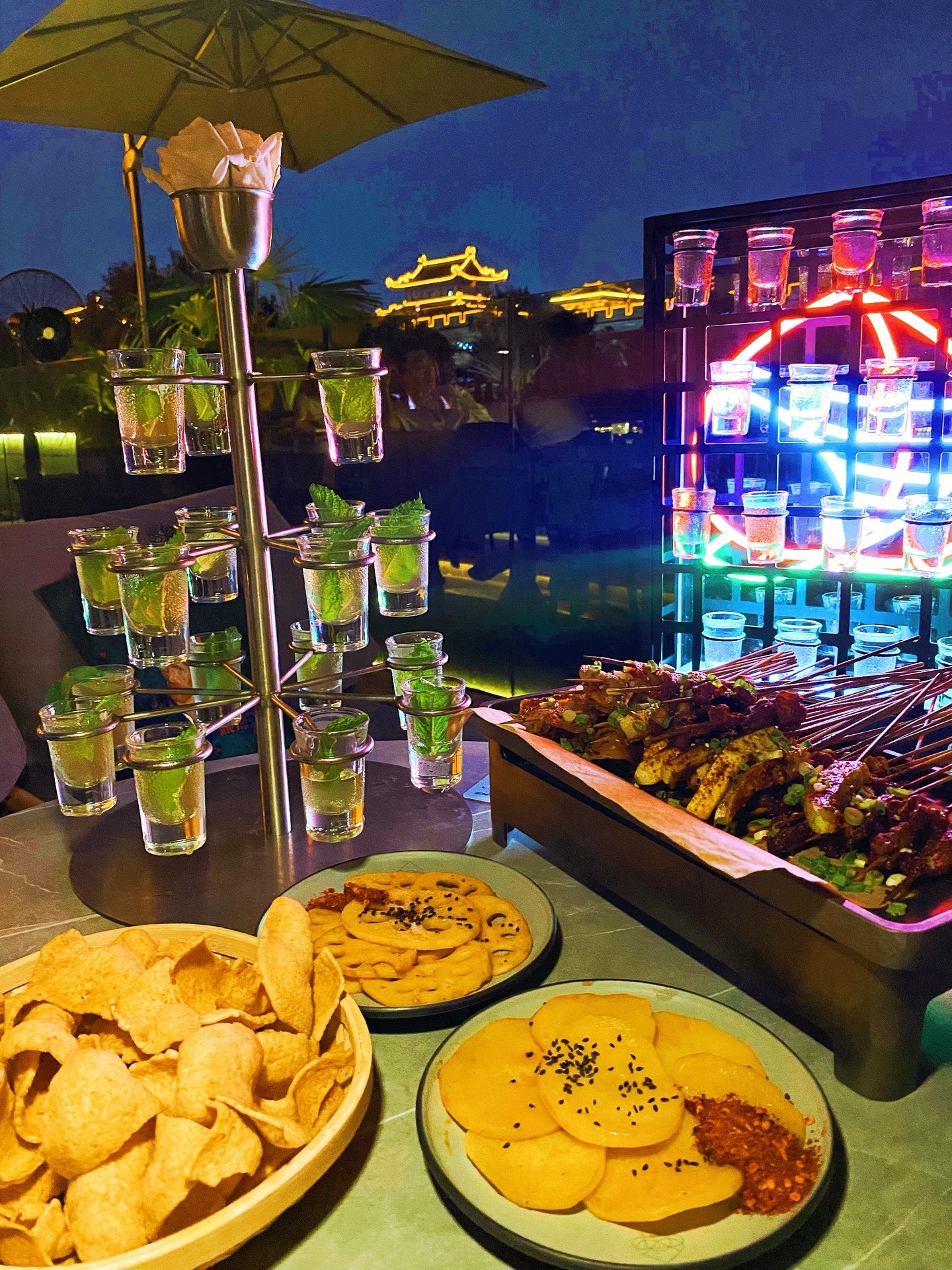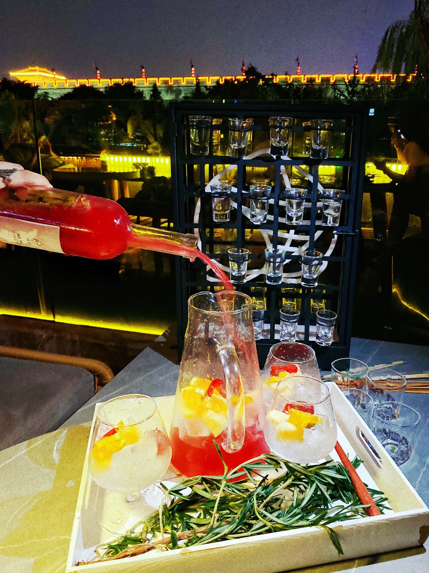 边喝边看着美丽的夜景,