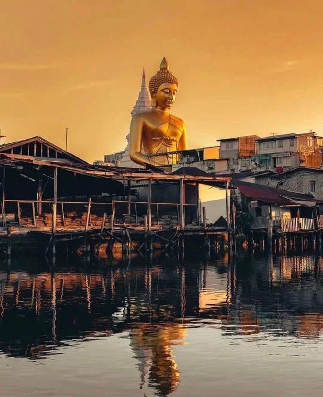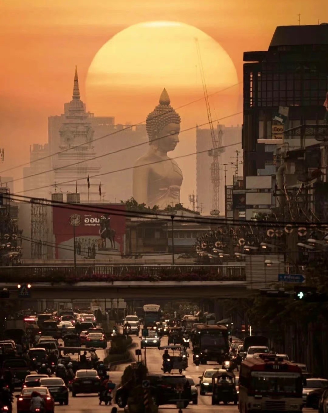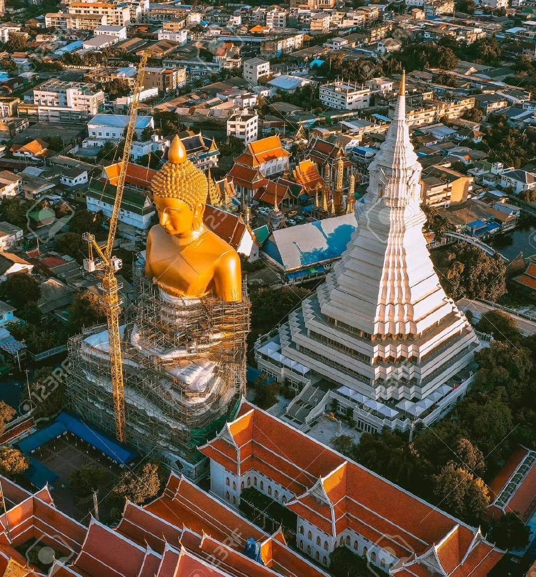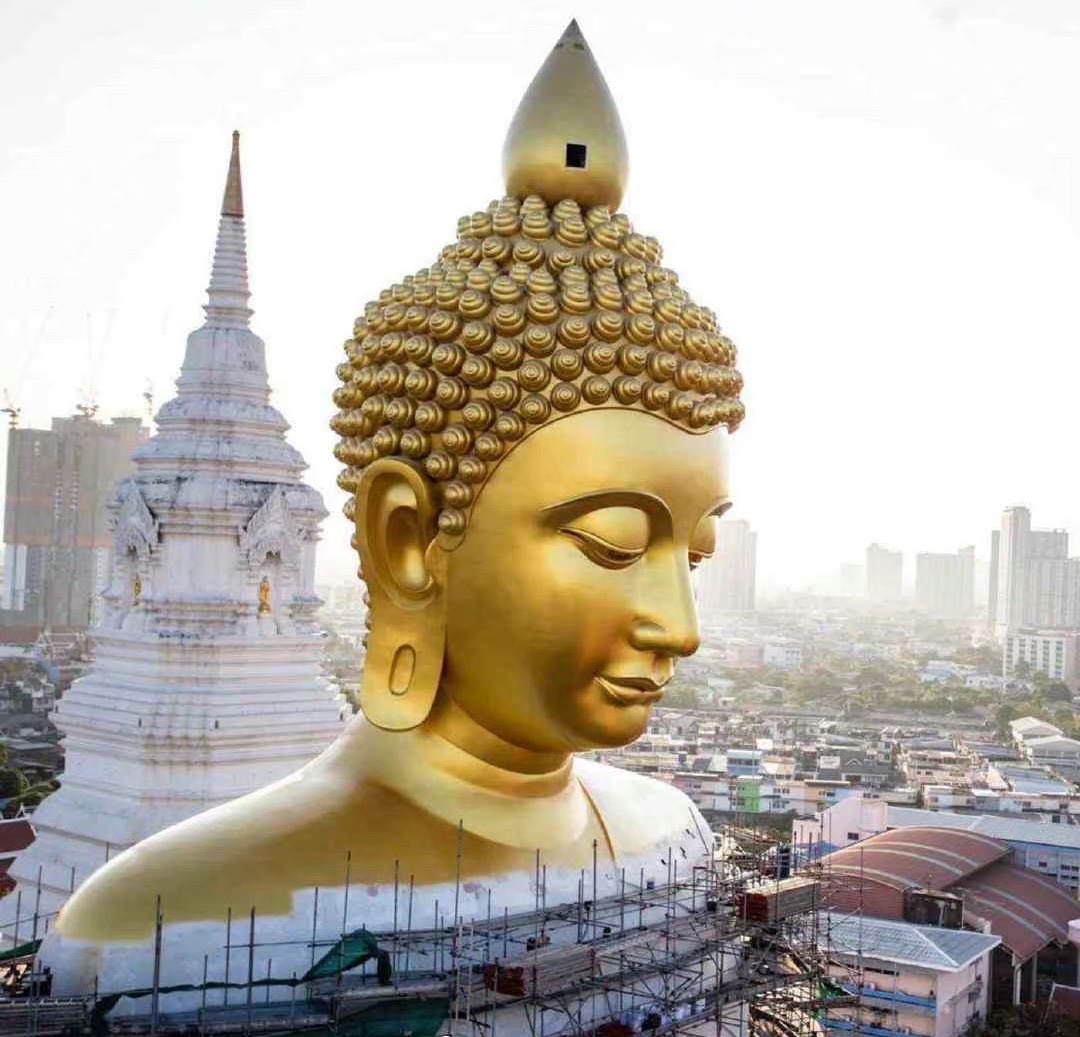 泰国 Bangkok 皇家寺庙 Wat Paknam 的大佛像 自建成起就成为了曼谷的新地标 相近20层楼高的佛像 屹立于城市之中 走在路上抬头就能看到 其庄严且慈爱俯瞰众生的美 令人心生敬畏