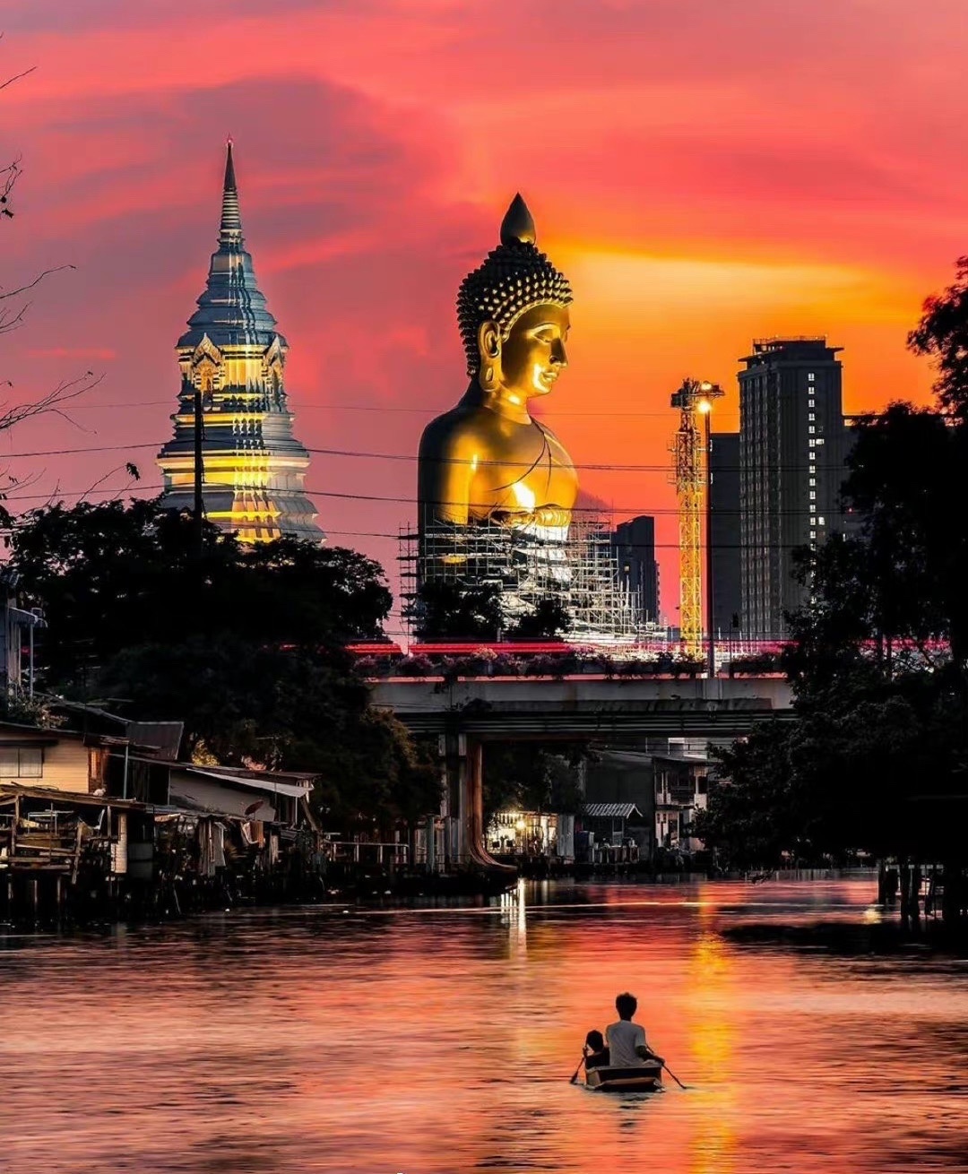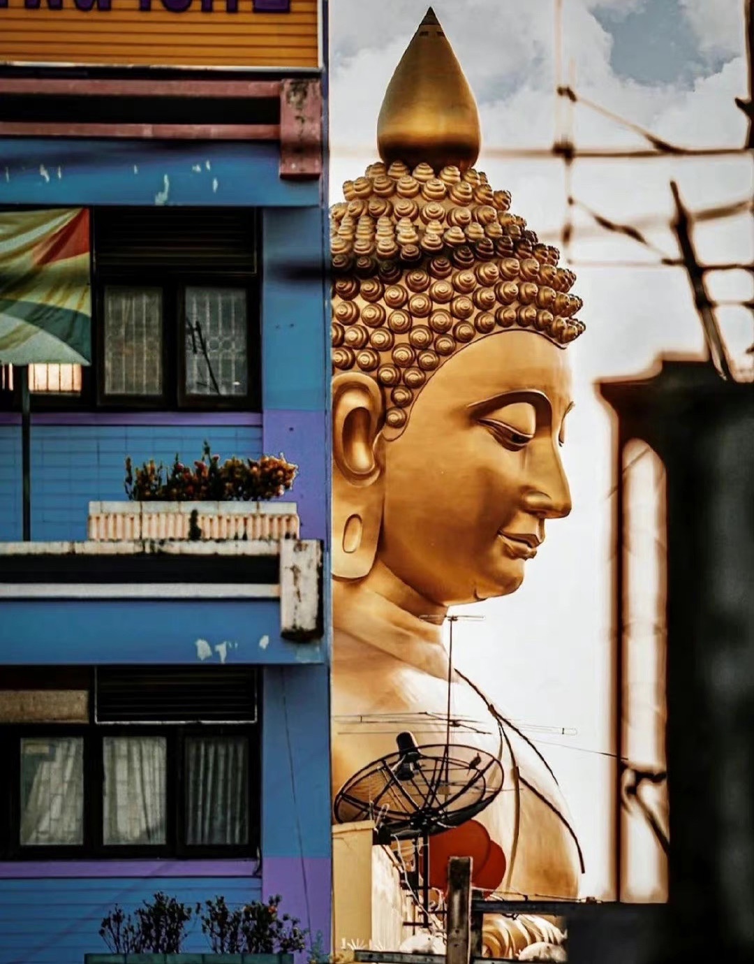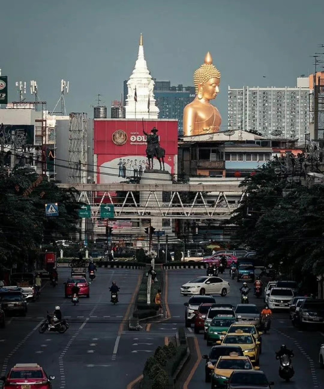 泰国 Bangkok 皇家寺庙 Wat Paknam 的大佛像 自建成起就成为了曼谷的新地标 相近20层楼高的佛像 屹立于城市之中 走在路上抬头就能看到 其庄严且慈爱俯瞰众生的美 令人心生敬畏
