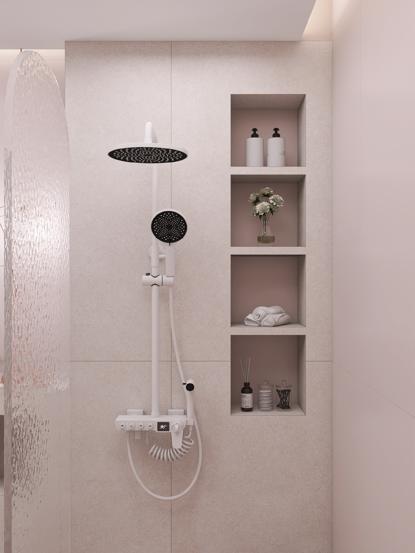 恒温花洒🚿拥有超大星空顶喷,出水绵密覆盖面大,出水量大清洗零负担,有智能记忆功能,能时刻保持最合适的水温。