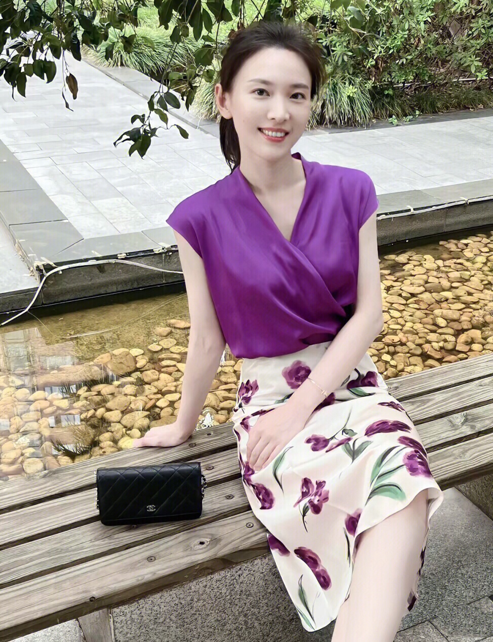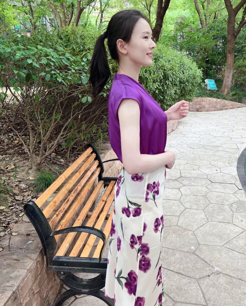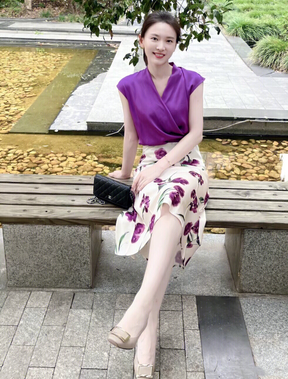 这套小紫色上衣搭配印花半身裙,温柔优雅,漂亮大气上档次。