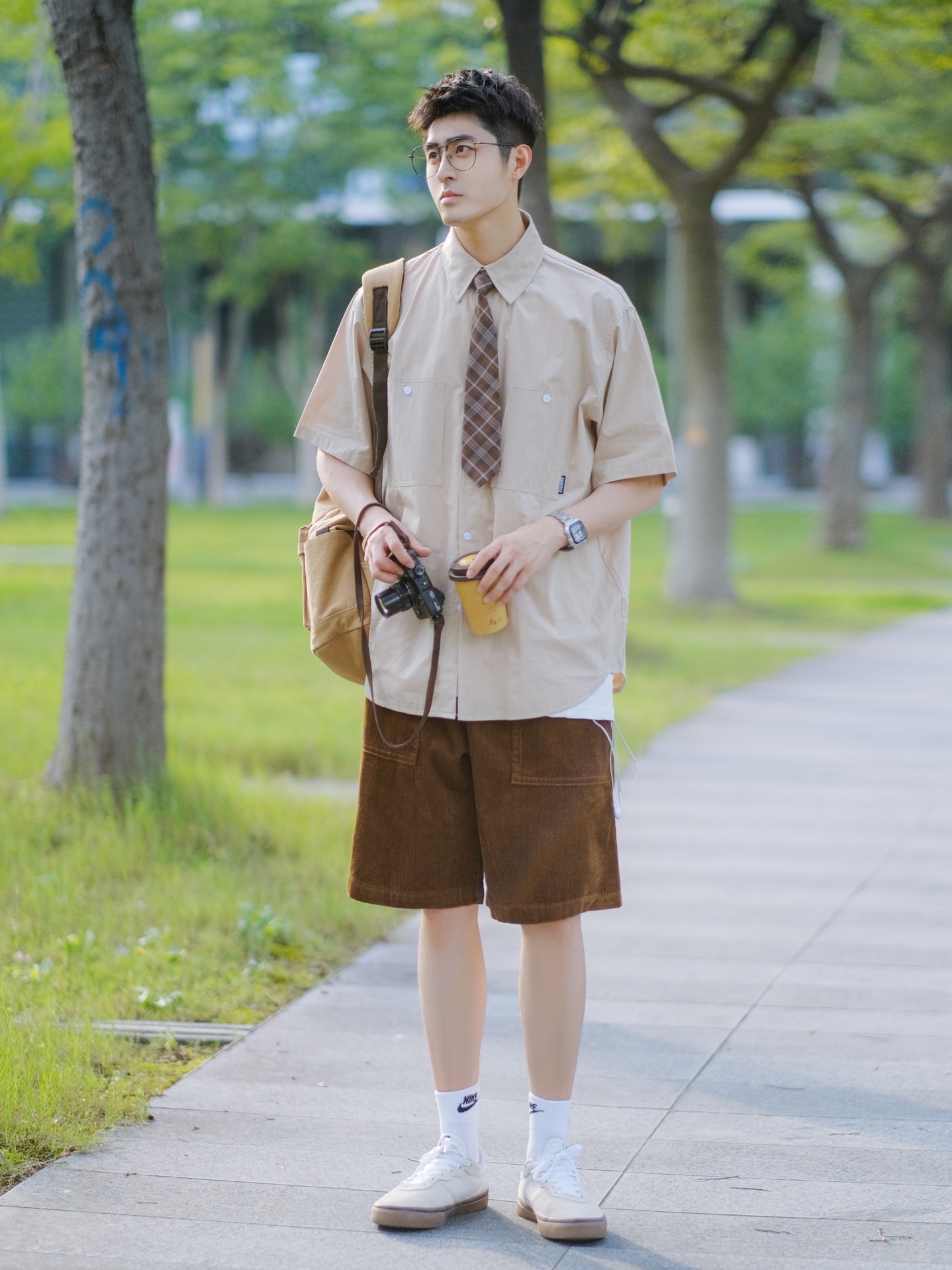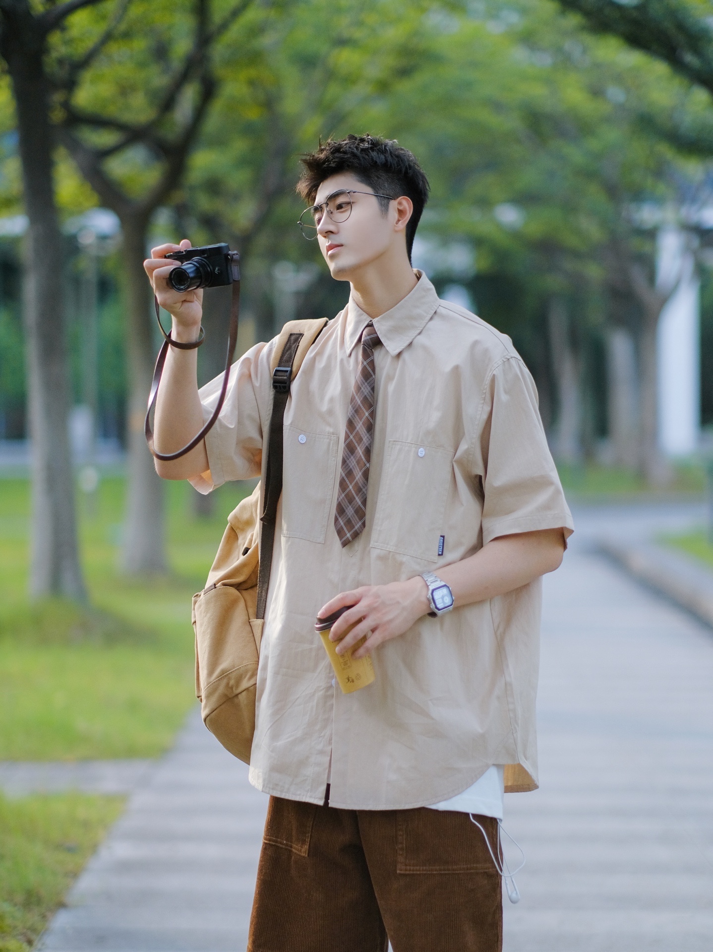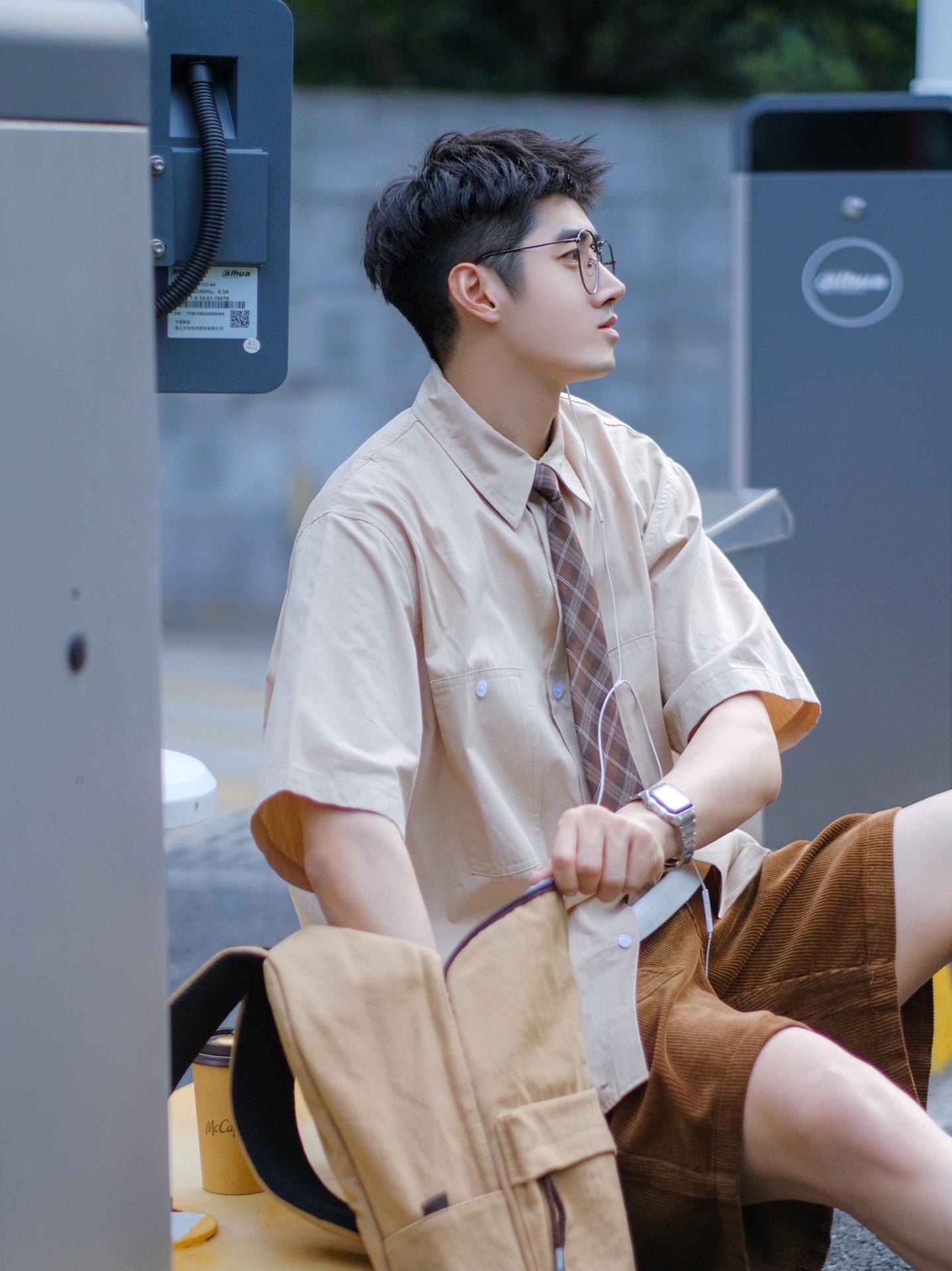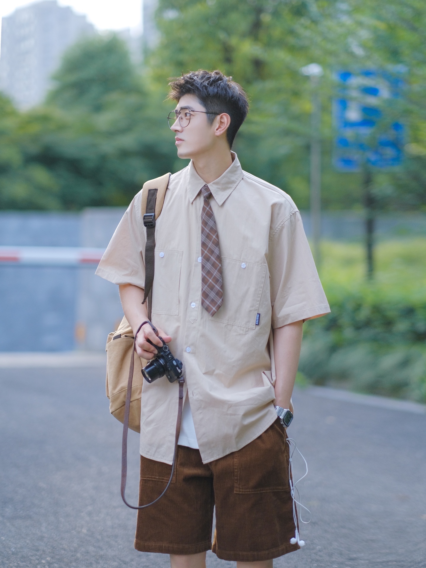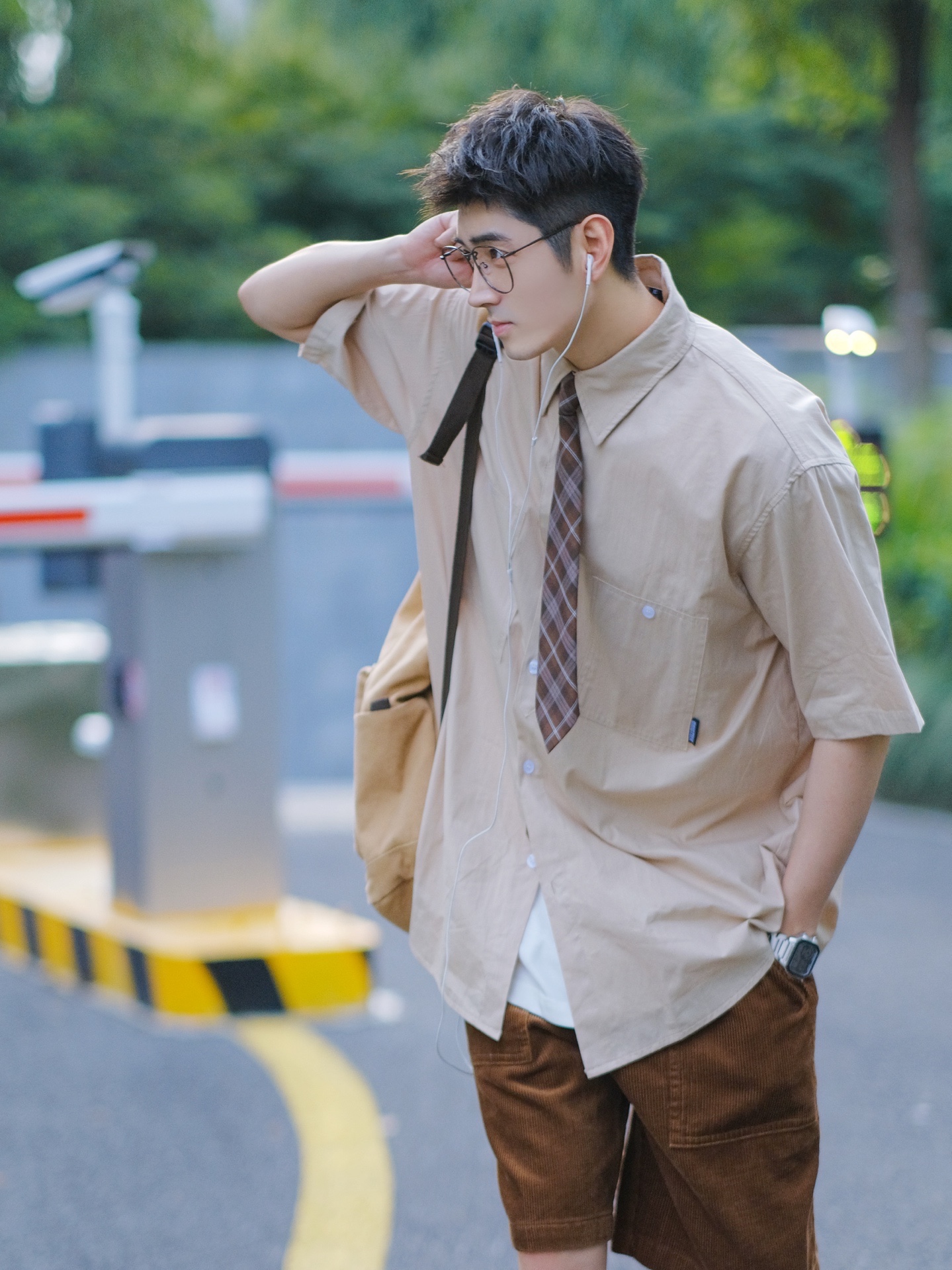 🔹关于男生夏季穿搭,当然还是要来一件短袖纯色衬衫。今天这套-美图社区-美图秀秀