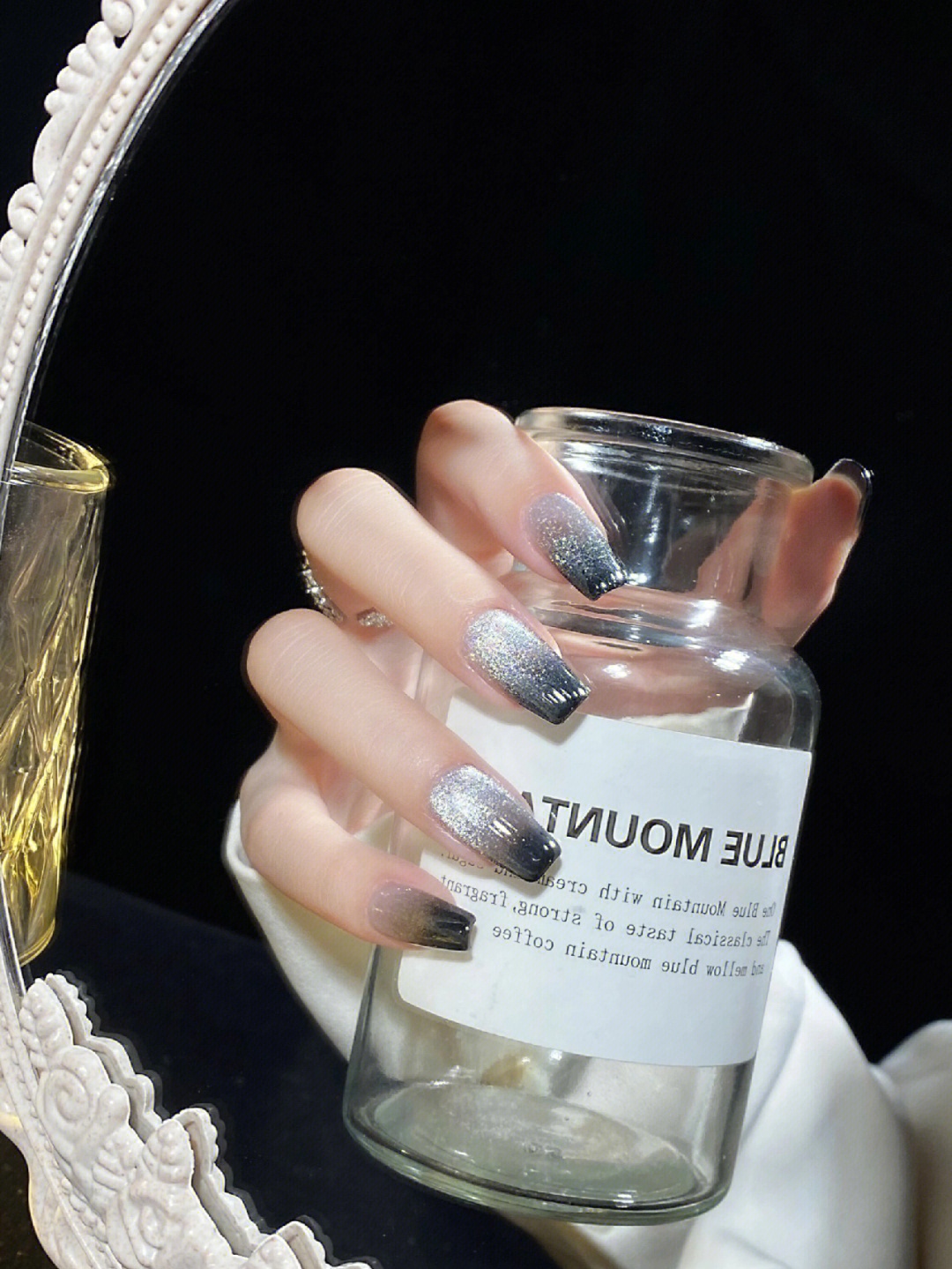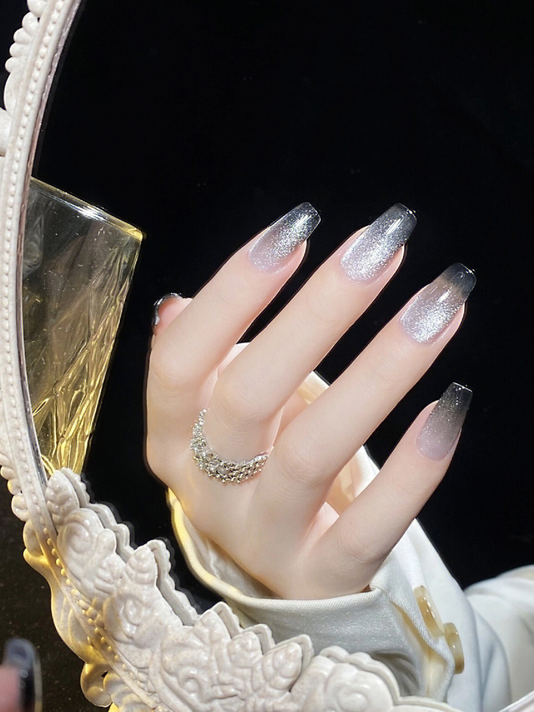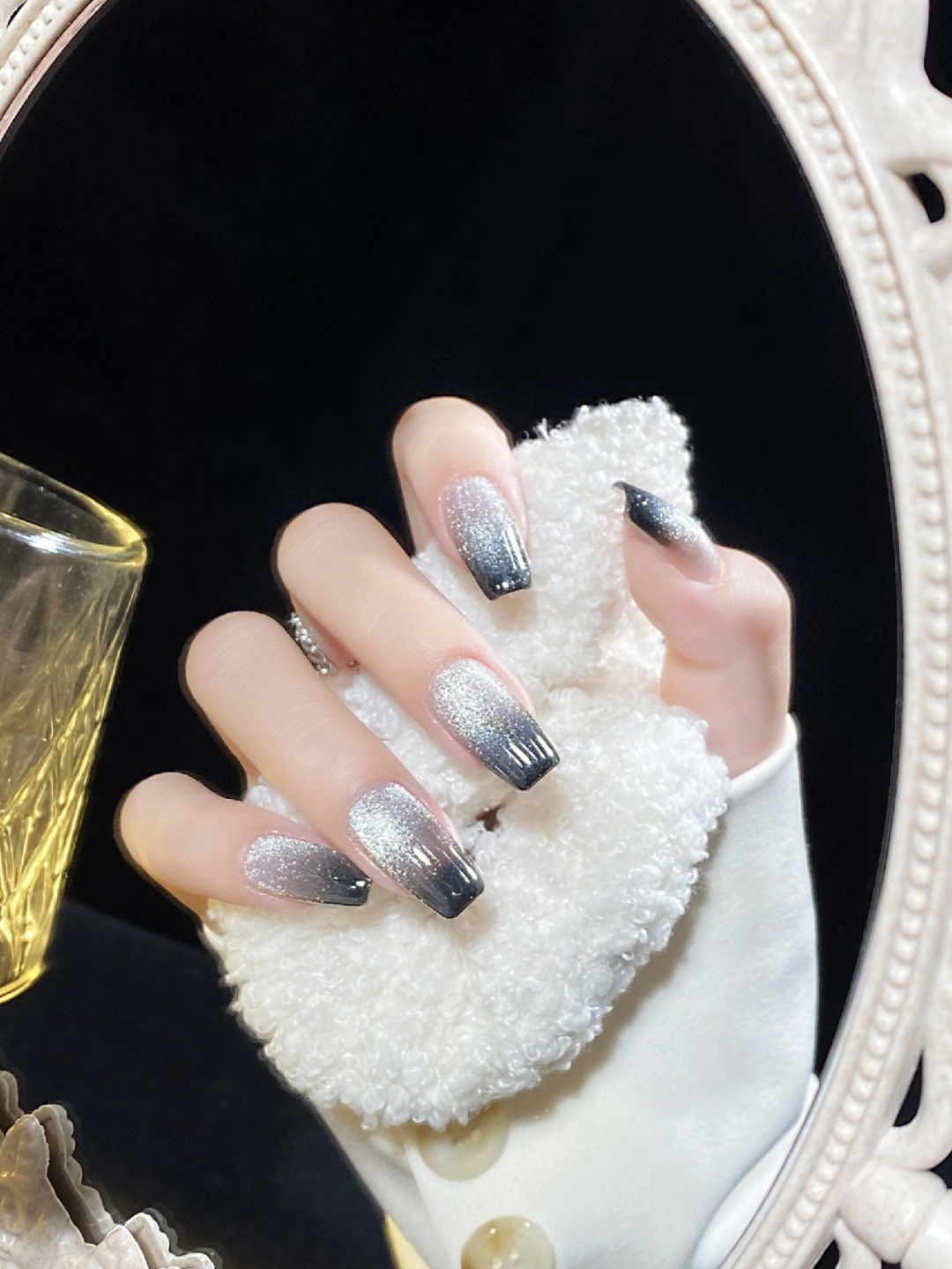 夏天就是要闪✨黑灰渐变猫眼美甲!