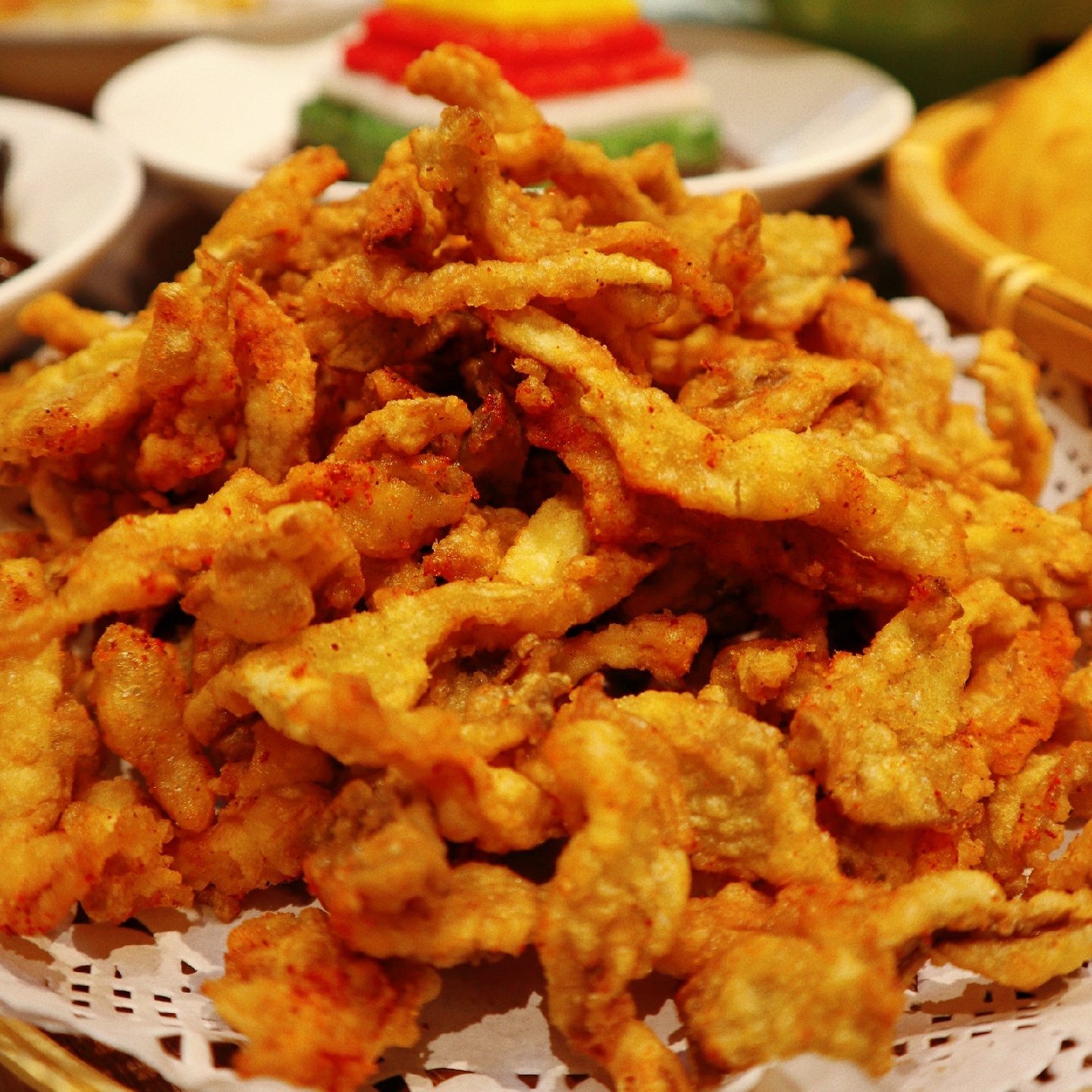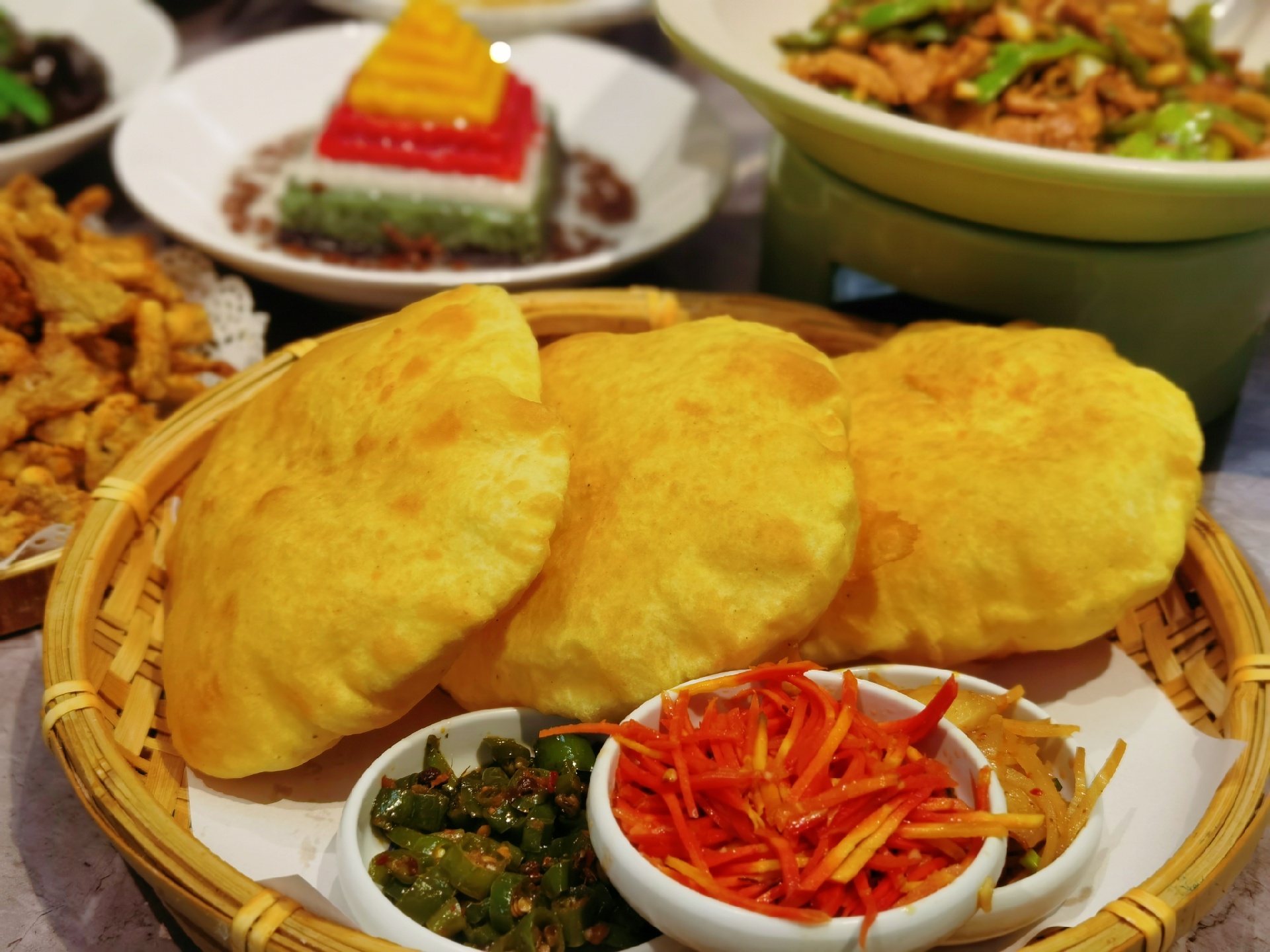 |酵面油饼^陕菜必点top1,炸的酥脆的油饼,夹上辣椒简直绝了[调皮]