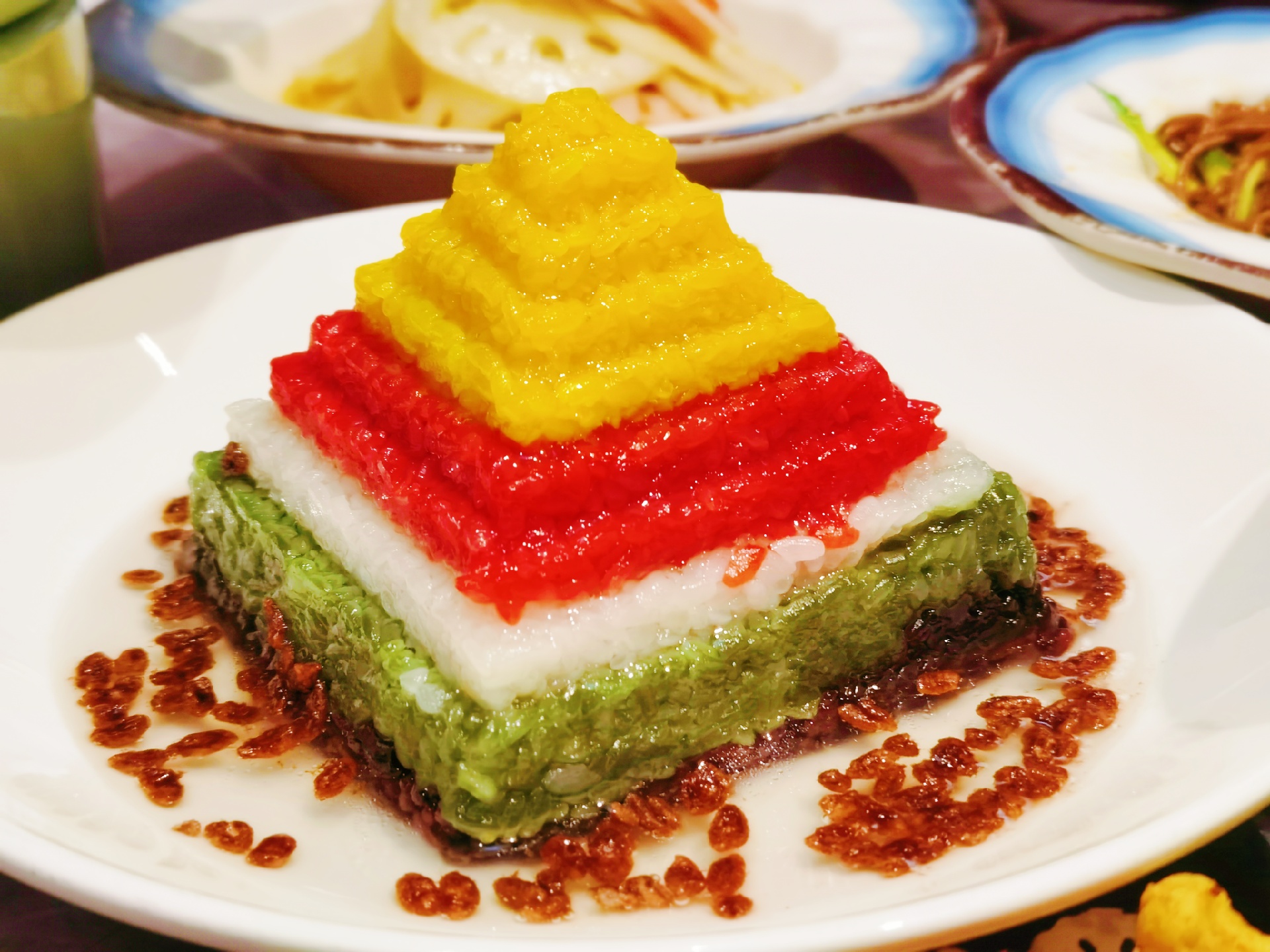 |玲珑宝塔糕^我一直以为这是钟楼😂结果是宝塔😂 其实是甜饭,最底层有豆沙夹心。