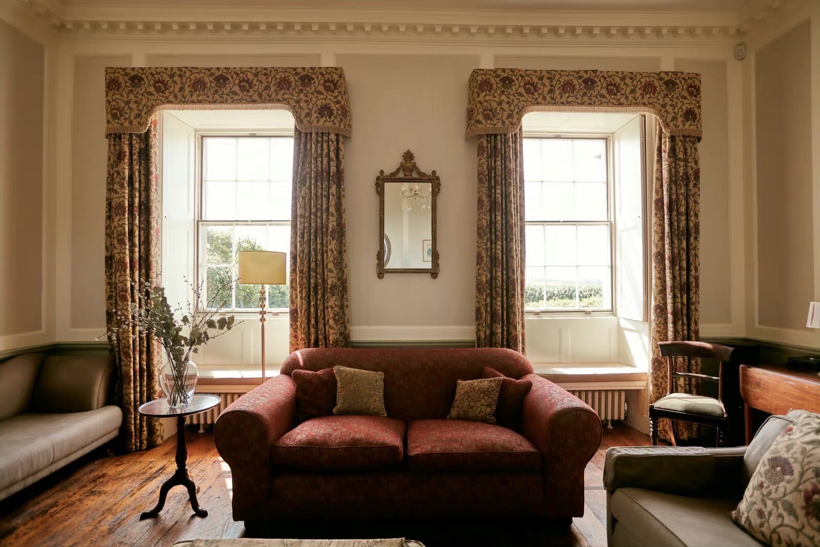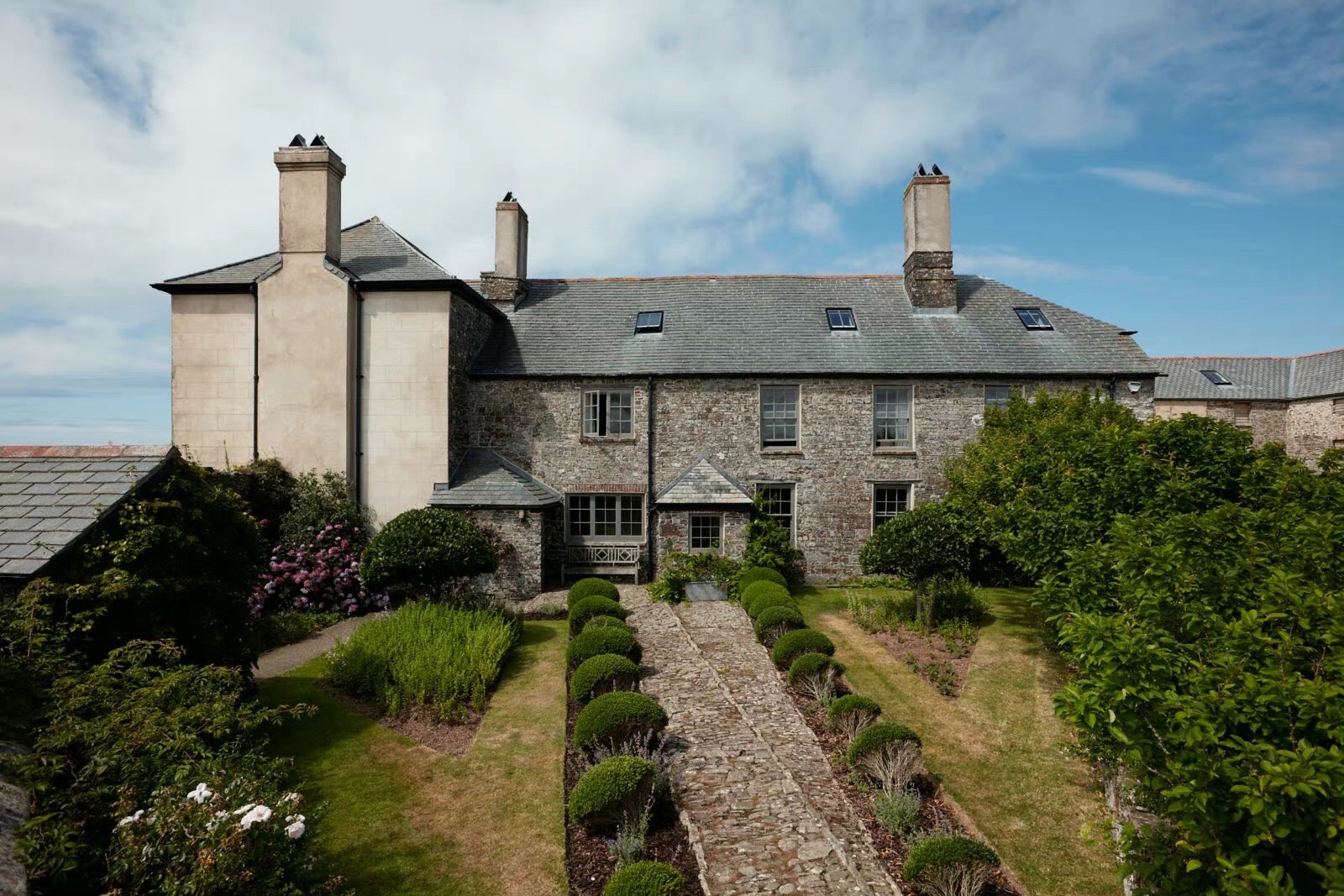 一座坐落在德文郡海岸线上的乔治亚风格乡村别墅 房子周围是广阔的私人花园 从花园可以看到远处的乡村和大海 步行即可到达下方的海滩