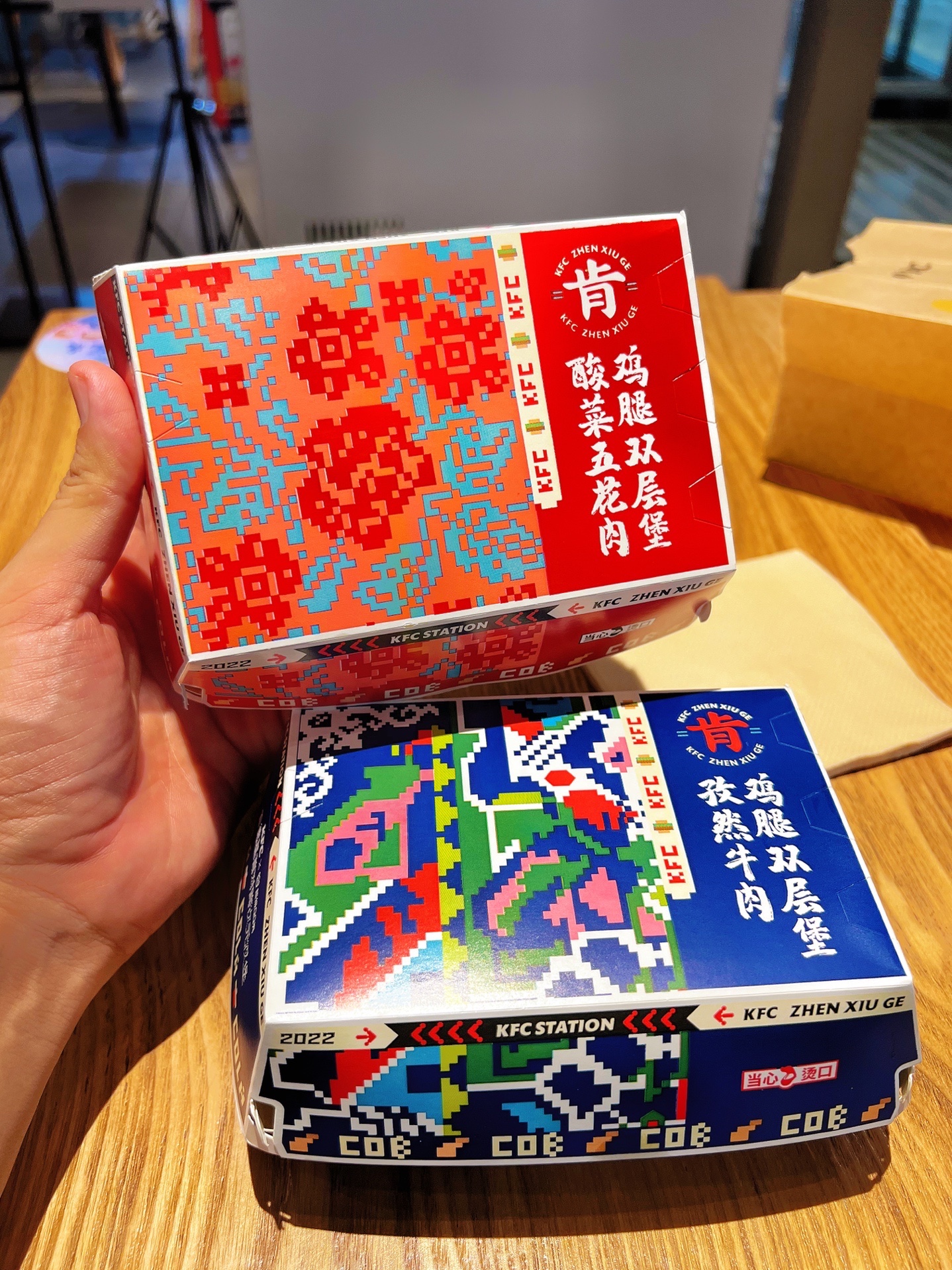 乐高风包装好看,纸盒里面的汉堡是包裹的很严实的,打包走用微波炉加热也不干瘪这点真心不错;