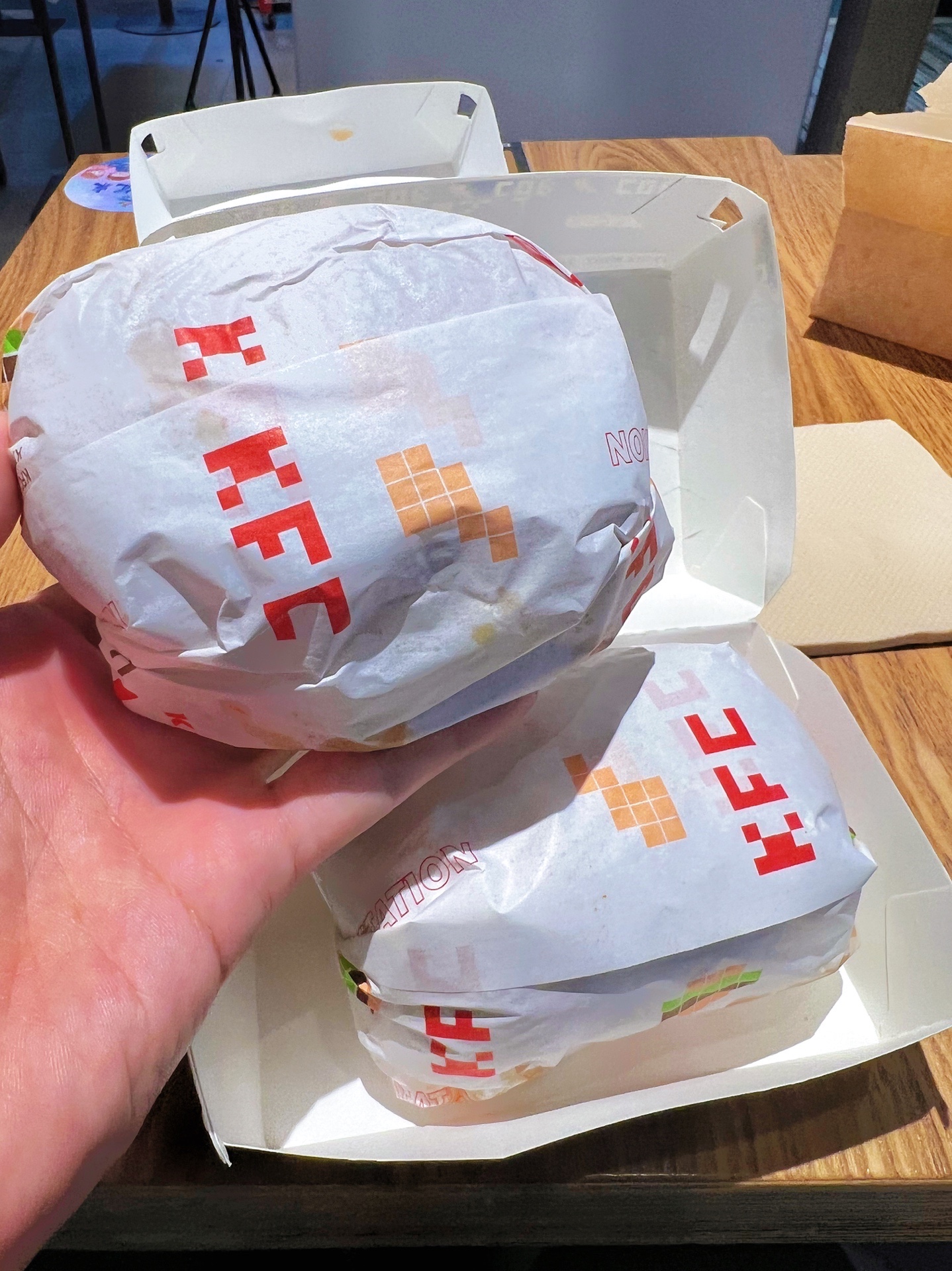 总结下两个都不辣,28元两个的价格真心不错,午餐两个汉堡吃的太满足了。
