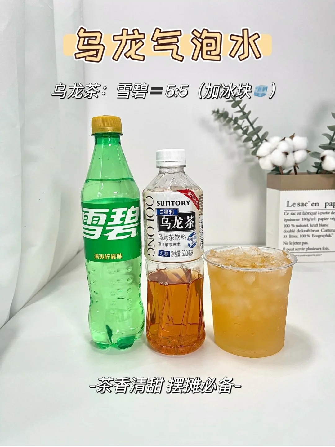 乌龙茶:雪碧=5:5+冰块🧊