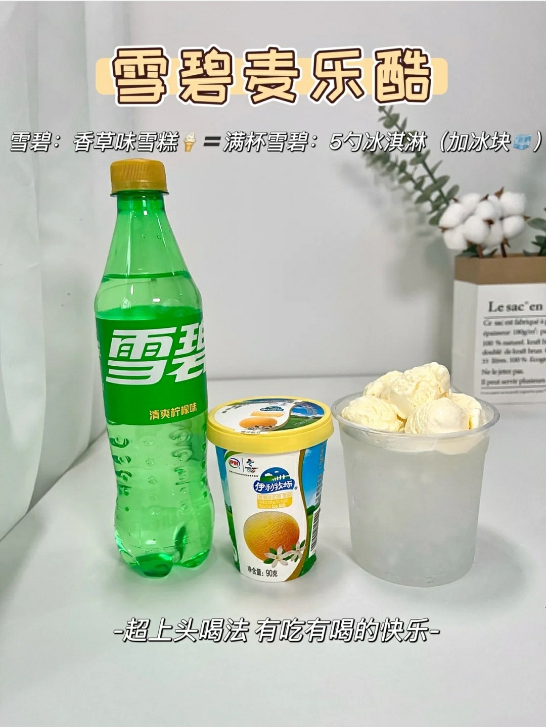 雪碧:香草味雪糕🍦=满杯雪碧:5勺冰淇淋:冰块🧊